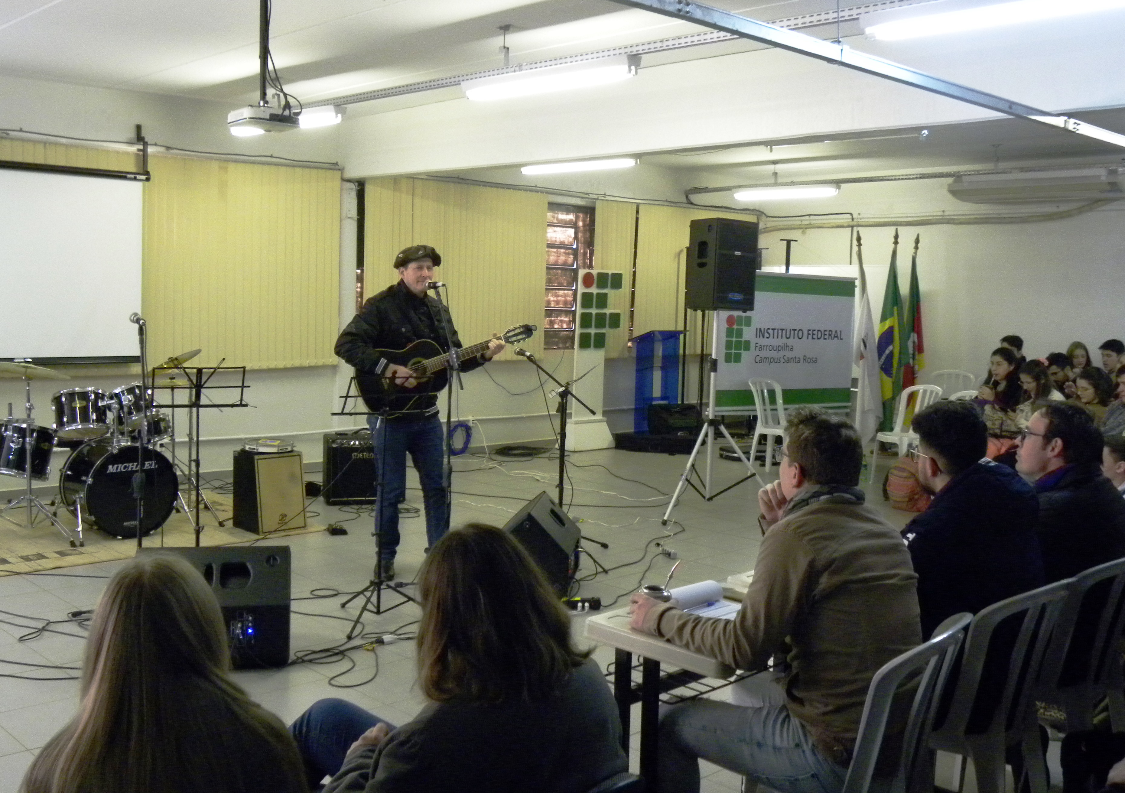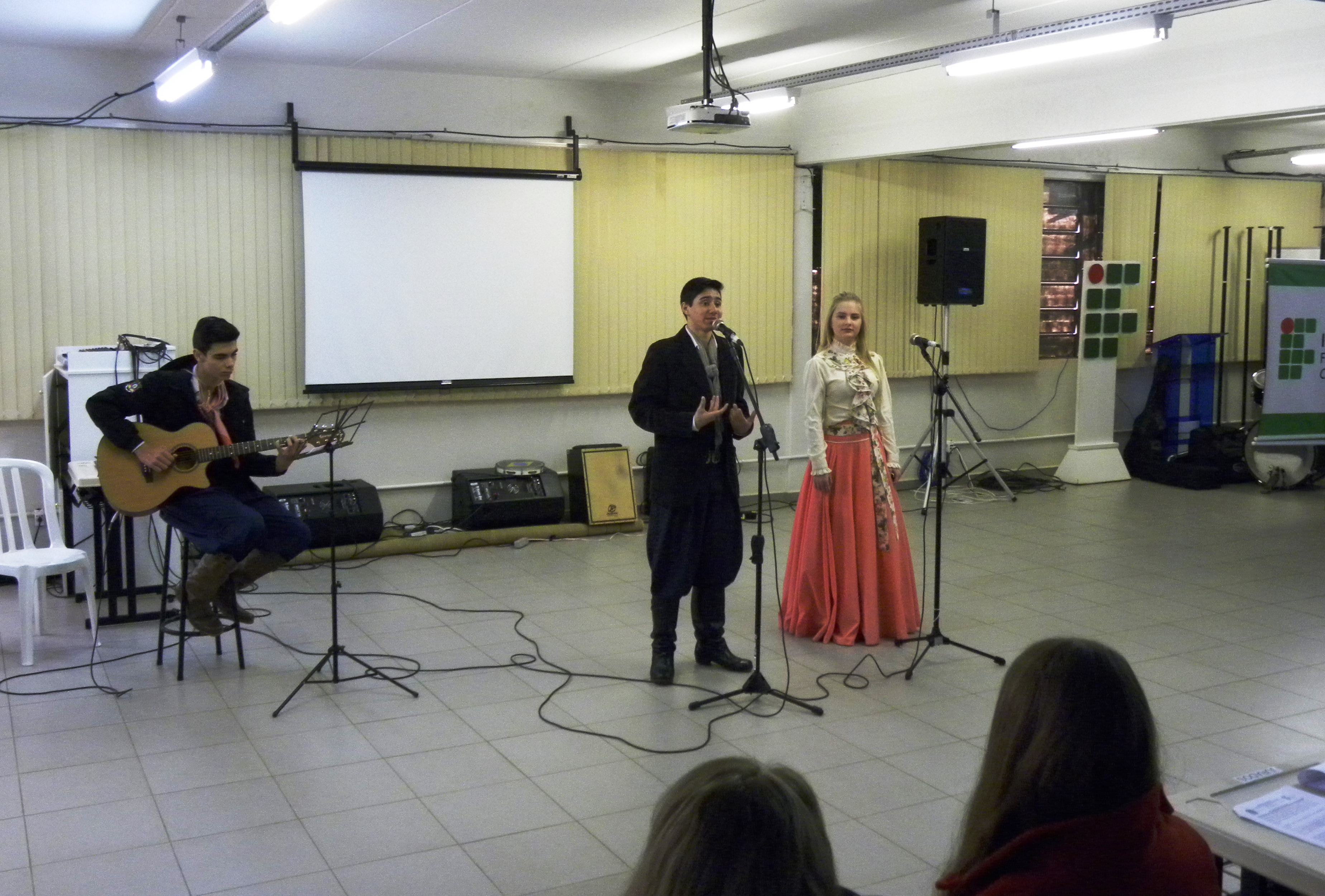 A Mostra Cultural teve o apoio do Núcleo de Arte e Cultura do Campus (NAC), do Projeto de Ensino Bandas do IFFar e dos bolsistas Gustavo Silva e Lucas Martins.