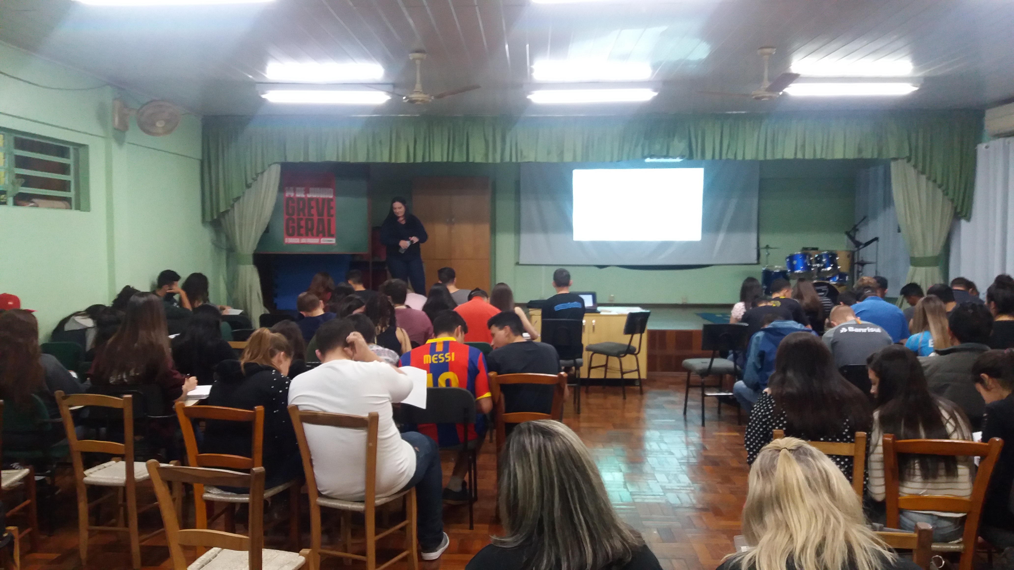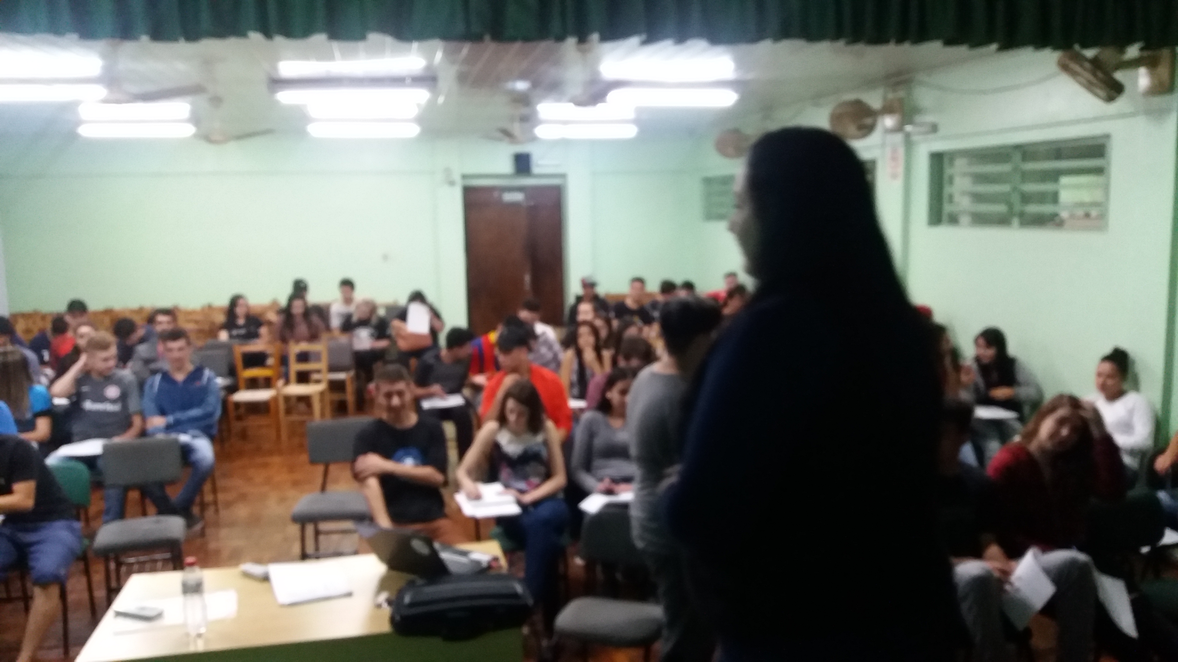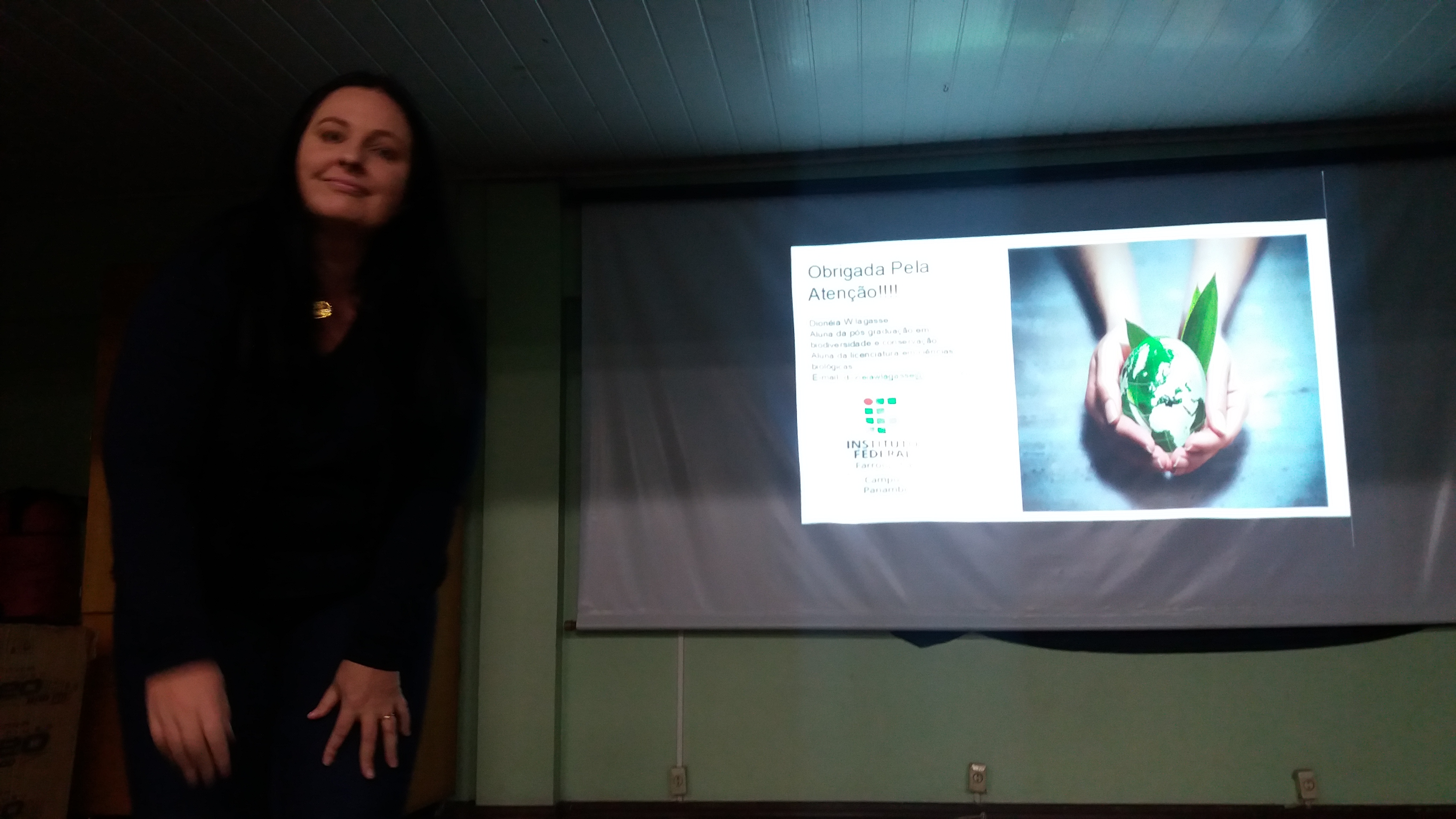 Na noite de 13 de junho, a aluna do curso de Pós-Graduação em Biodiversidade e Conservação, Dioneia Lagasse, esteve na Escola Estadual Pindorama desenvolvendo uma atividade com a comunidade escolar de turmas noturnas.