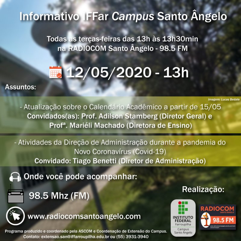 Nesta edição, o Informativo IFFar Campus Santo Ângelo foi gravado à distância, devido a pandemia de Covid-19.