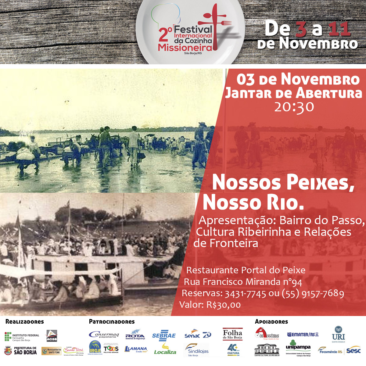 De 03 a 11 de novembro, o Instituto Federal Farroupilha – Campus São Borja, Prefeitura Municipal de São Borja, Associação Comercial e Industrial de São Borja (ACISB) e Municipalidade de Santo Tomé /Argentina - Secretaria de Cultura y Turismo promovem a segunda edição do Festival Internacional da Cozinha Missioneira.