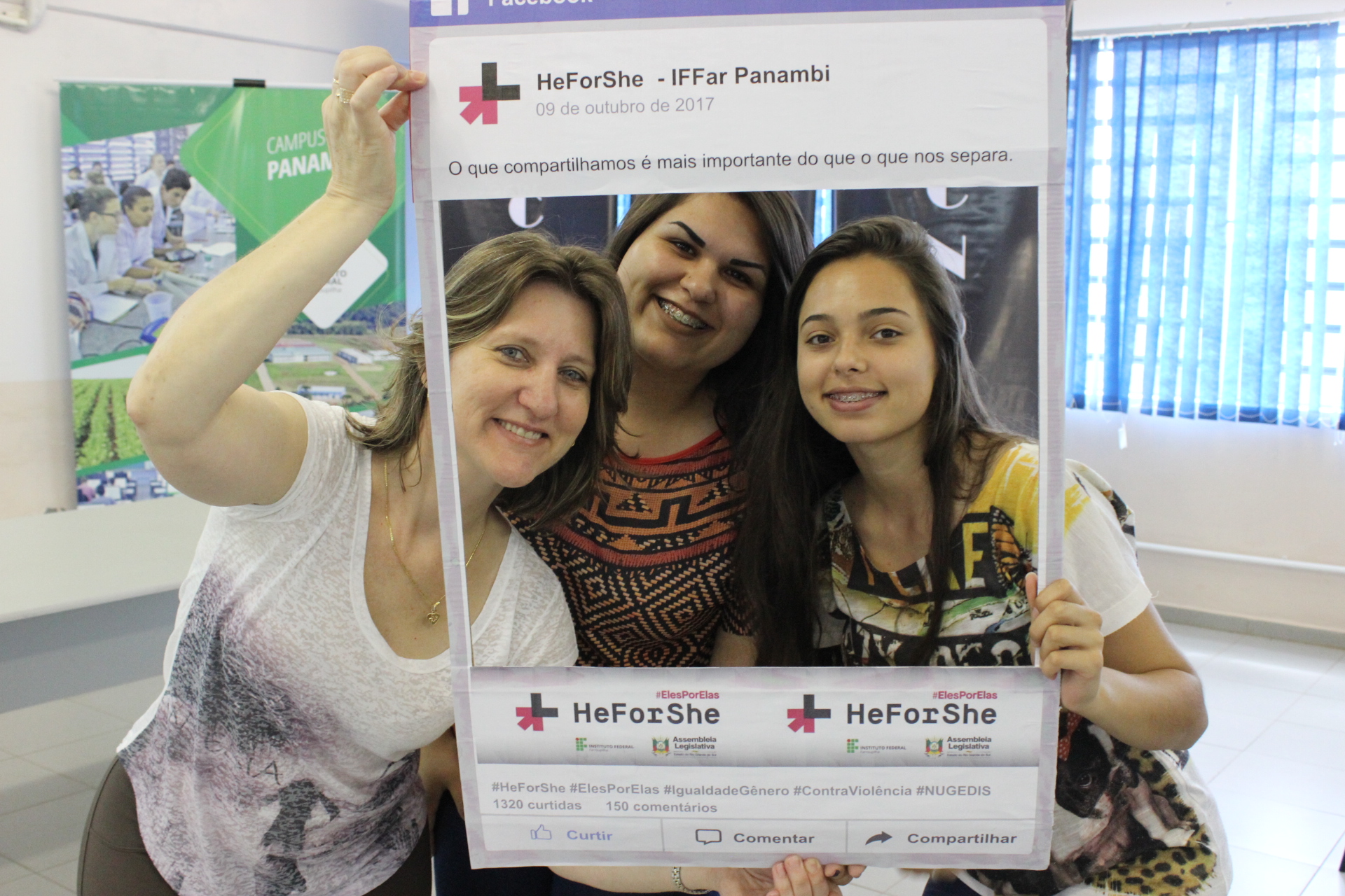 Foi uma manhã contagiante de reflexões em que todos puderam contribuir da sua forma. Ao longo do dia, os alunos e servidores também foram convidados a aderirem ao movimento através de fotografias com cartazes reflexivos sobre sororidade, empoderamento feminino e o Movimento He For She (Eles por Elas). A atividade foi proposta com o intuito de refletir esse lugar, o lugar da mulher e desconstruir a cultura da rivalidade e do machismo, buscando a empatia e a sororidade nas relações femininas.