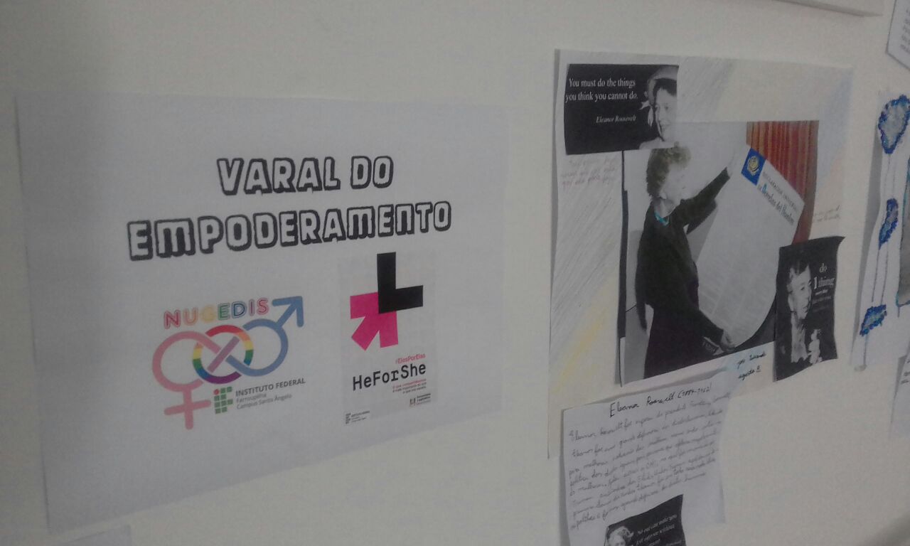 Além das discussões realizadas em sala de aula sobre a temática, foi organizado o Varal do Empoderamento, com camisetas que traziam frases que enfatizavam o empoderamento feminino, bem como a exposição de fotos "O que me empodera?" realizada em 2017 no Curso Técnico em Estética (PROEJA) na disciplina de artes. Também realizada na disciplina de artes, em 2018, nos primeiros anos dos cursos integrados, foi exposta no Campus a exposição "Elas inspiram", com nomes femininos que marcaram a história em diferentes campos, como a ciência, as artes, a literatura e a política.