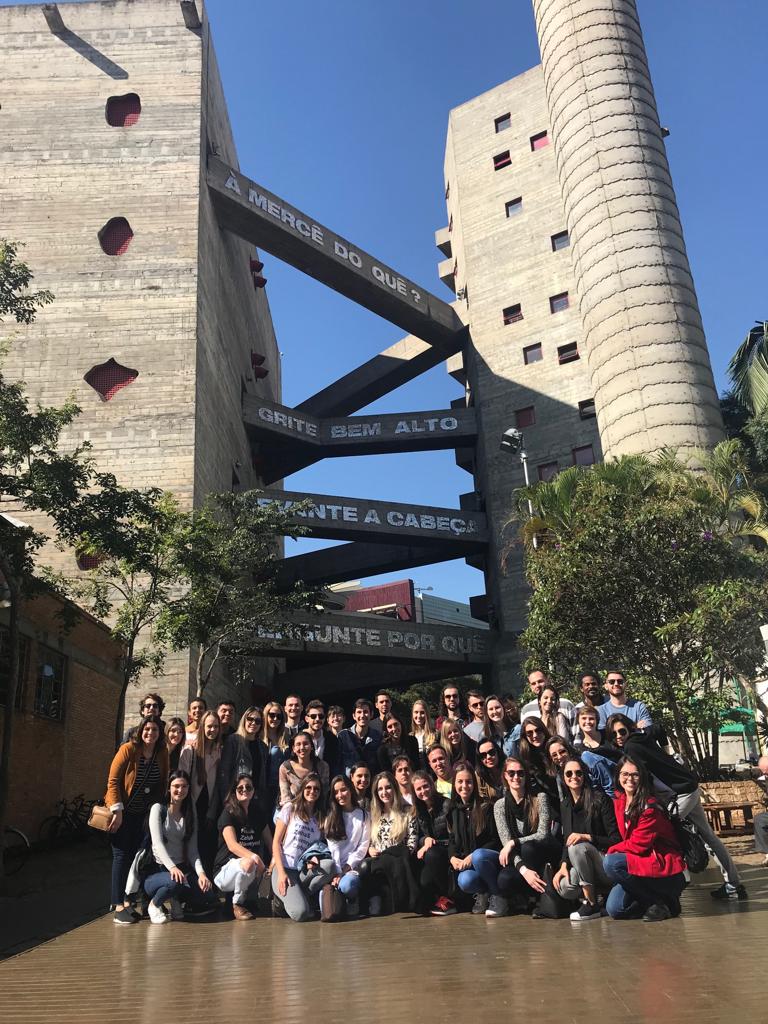 O curso de Bacharelado em Arquitetura e Urbanismo do Instituto Federal Farroupilha – Campus Santa Rosa realizou, entre os dias 11 e 17 de julho, viagem de estudos para a cidade de São Paulo. Cerca de 40 alunos, de diferentes semestres do curso, participaram da atividade, coordenada pelas professoras Fernanda Conrad Rigo e Manuela Ilha Silva. O roteiro envolveu uma série de atividades em importantes espaços e edificações da capital paulista. O grupo realizou visitas técnicas nas instalações das unidades do Serviço Social do Comércio (SESC) Pompeia e 24 de Maio, conhecendo em detalhes edificações de autoria de importantes nomes da arquitetura nacional: Lina Bo Bardi e Paulo Mendes da Rocha, respectivamente.