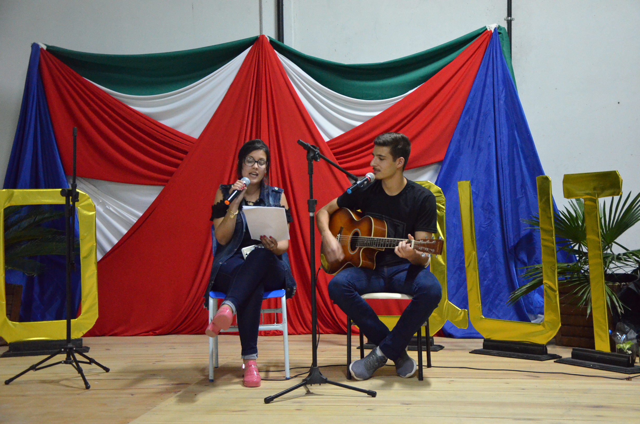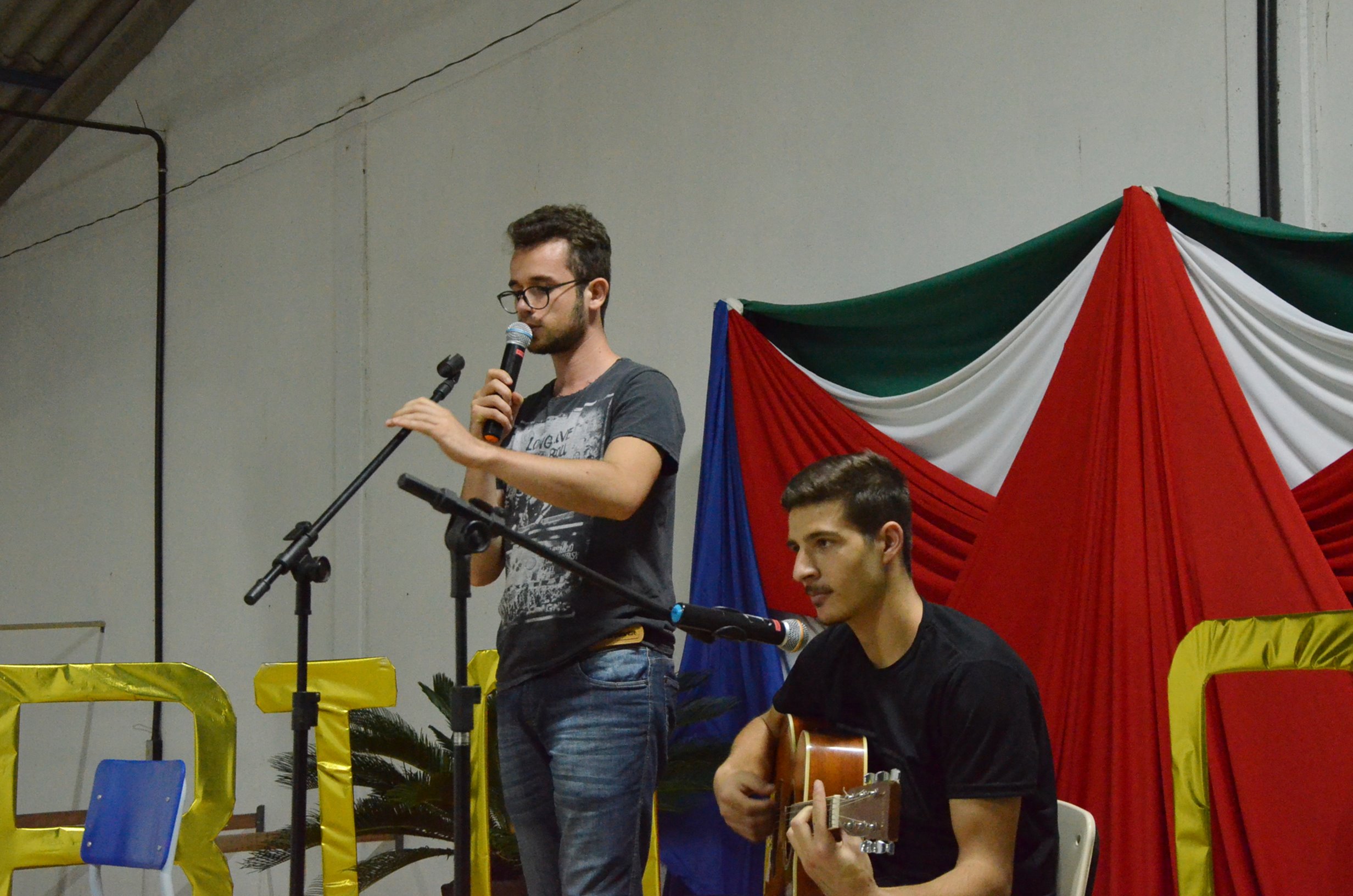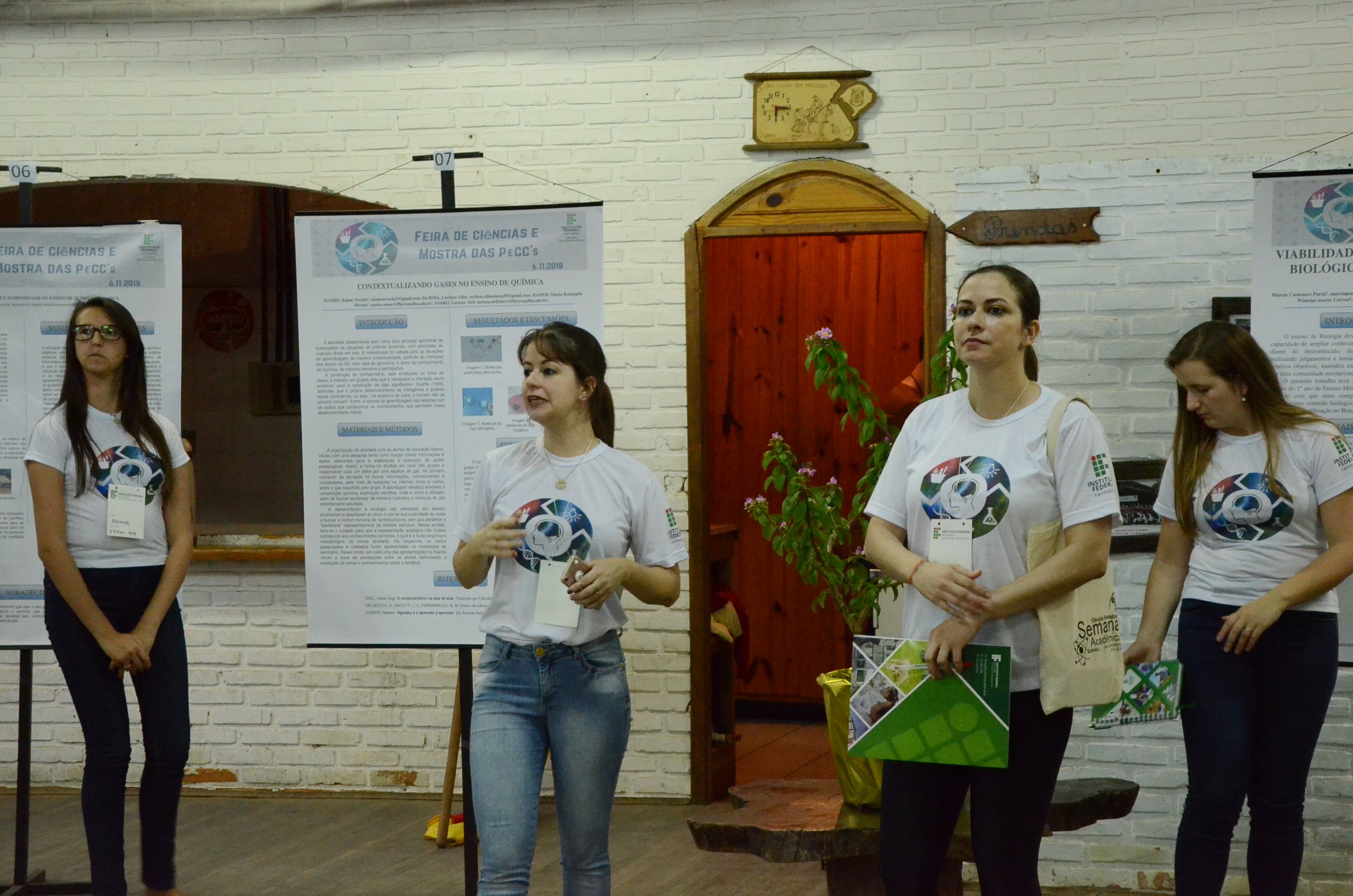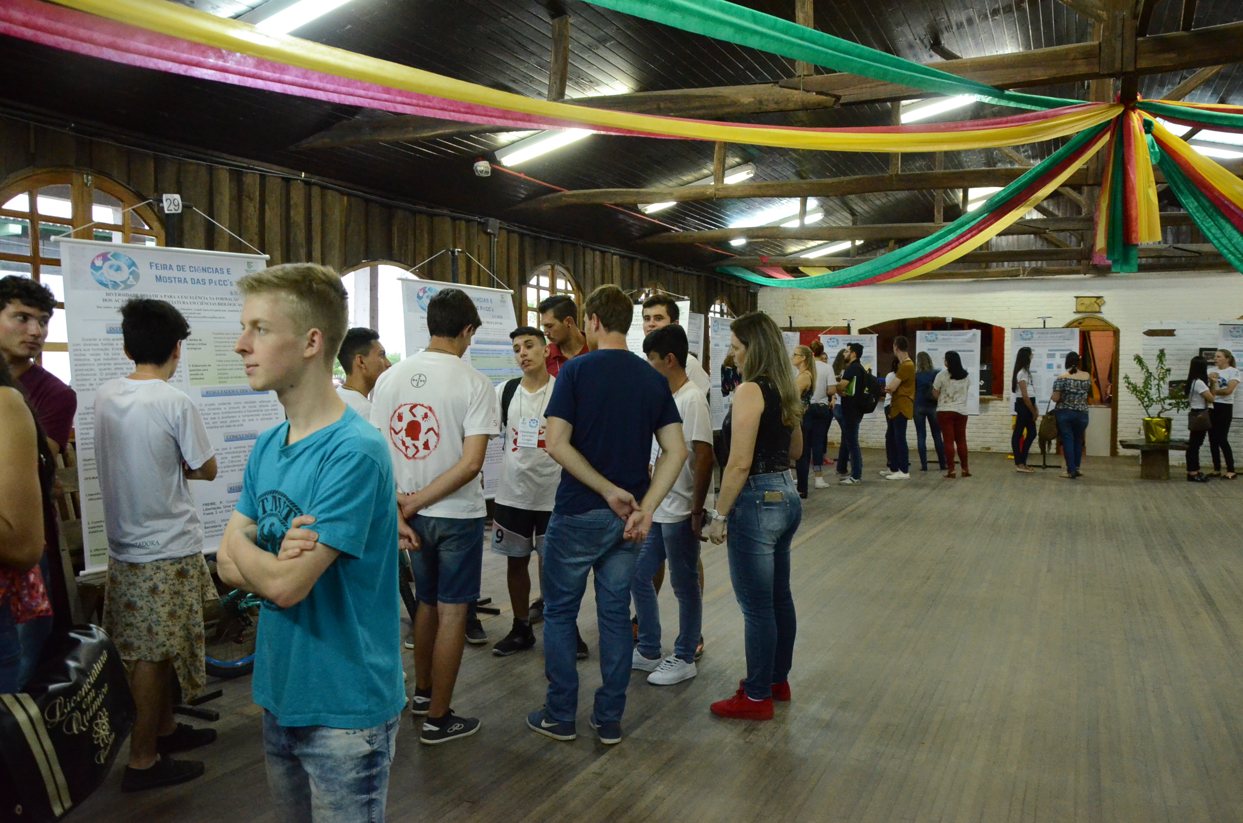 À noite, aconteceu a I Mostra das PeCCs, reunindo 29 trabalhos de acadêmicos(as) das licenciaturas do campus que apresentavam os resultados das práticas pedagógicas que eles(as) desenvolvem em tais cursos. Essas práticas geralmente são trabalhadas dentro das disciplinas e aplicadas em escolas da região, bem como em turmas do ensino integrado do IFFar-SVS.