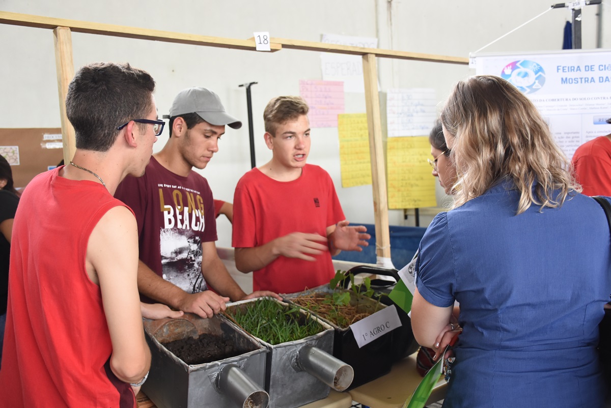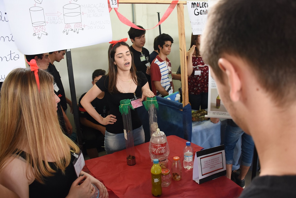 Na última quarta-feira, dia 22 de novembro, a comunidade escolar pode conferir a Feira de Ciências do Instituto Federal Farroupilha - Campus São Vicente do Sul. A atividade teve um caráter interdisciplinar e reuniu projetos científicos realizados pelas turmas dos 2º anos do Ensino Médio, com o suporte didático dos acadêmicos dos cursos de Licenciatura matriculados na disciplina de Prática Pedagógica.
