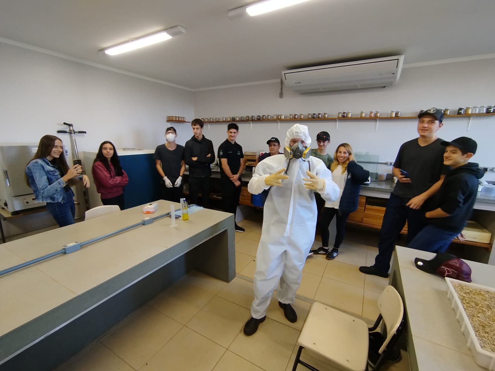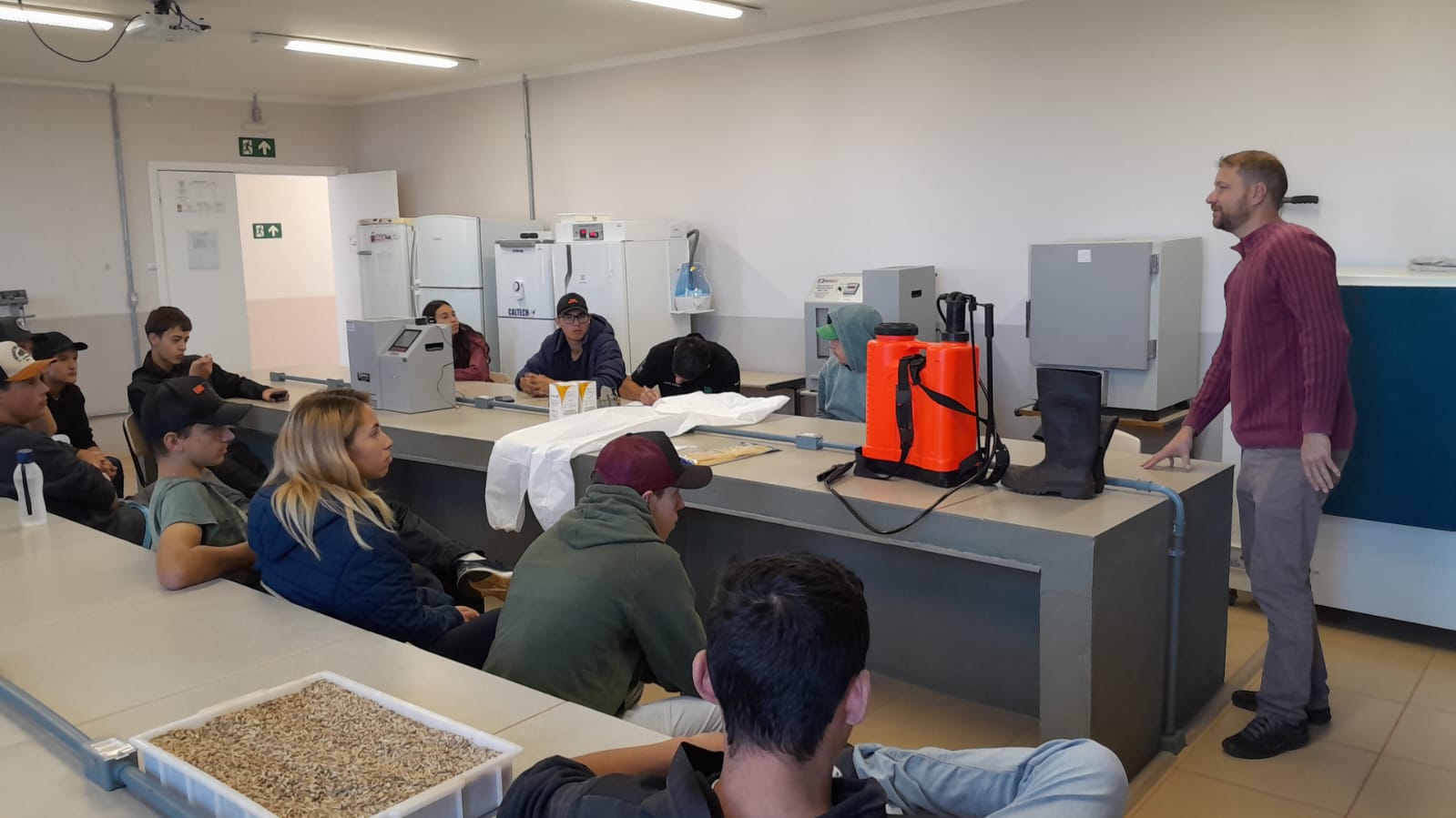 Na data de 27/11/19, os alunos da primeira turma do curso Técnico em Agricultura, acompanhados pelos professores Carina R. Pivetta e Lucas A. da Silva Girio e pelo técnico agropecuário Leandro Dalbianco, visitaram o Laboratório de Análise de Solos do IFFar campus São Vicente do Sul que é vinculado a Rede Oficial de Laboratórios de Análise de Solos e de Tecido Vegetal dos Estados do RS e SC. O objetivo da atividade foi conhecer e aprender sobre a rotina de trabalho do Laboratório de Solos no âmbito da realização das análises química e física dos solos agrícolas e que se destinam a atender a demanda dos agricultores do Vale do Jaguari.