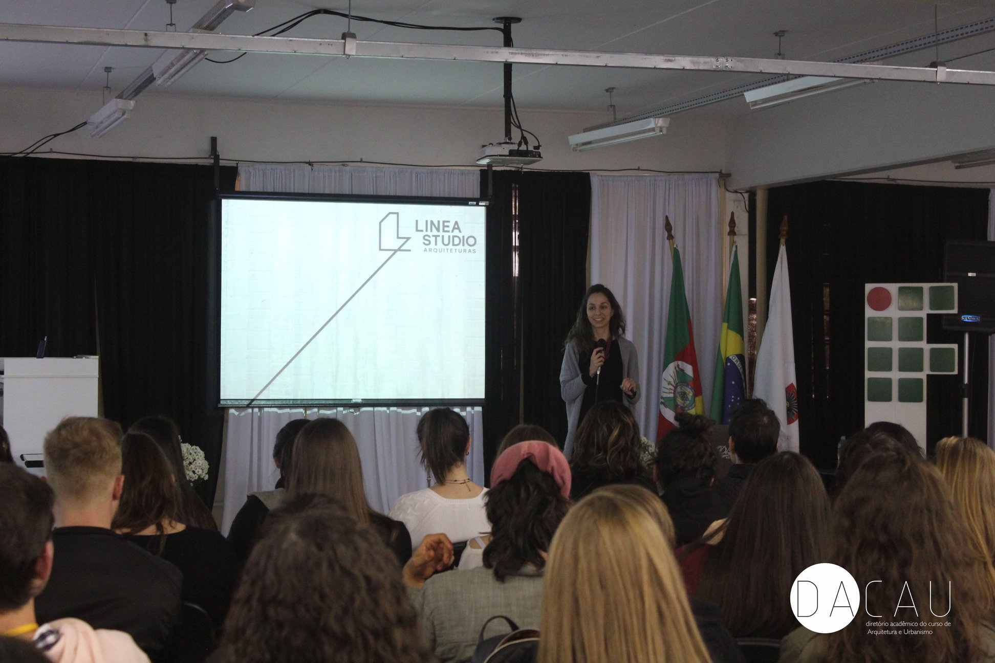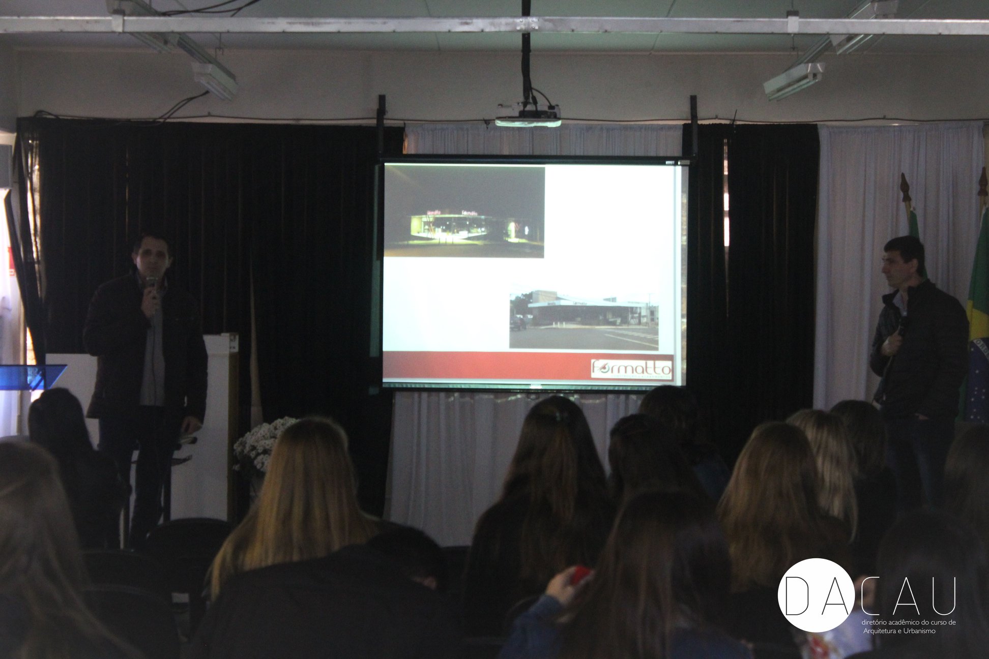 2º dia - As arquitetas Fernanda e Patricia da Prosa Arquitetura, de Santa Rosa, conversam sobre os desafios do ser Arquiteto. À tarde, palestra sobre Arquitetura Container e Sistemas de Construção Seca, com o Lucas Ghiorzi e o Gabriel Tavares, do escritório Ghiorzi Tavares Arquitetura, de Florianópolis.