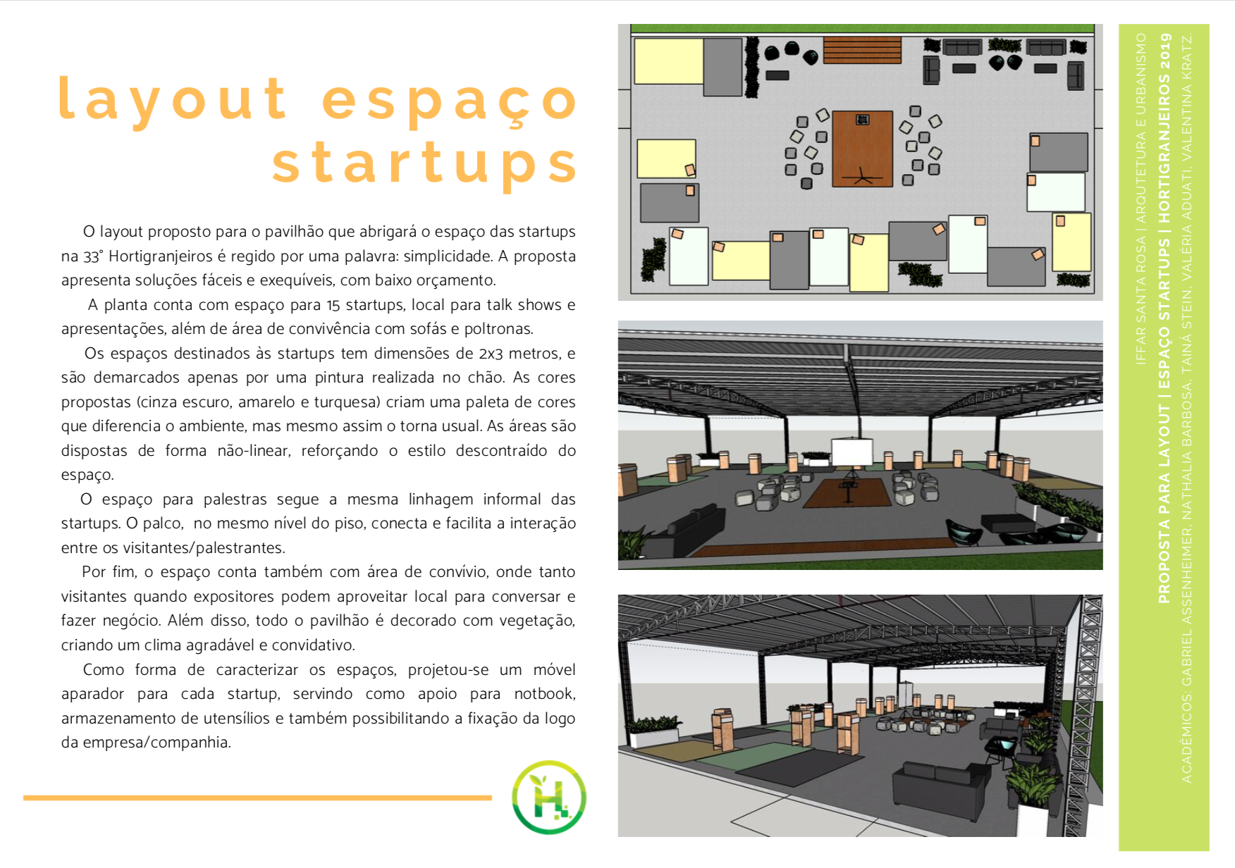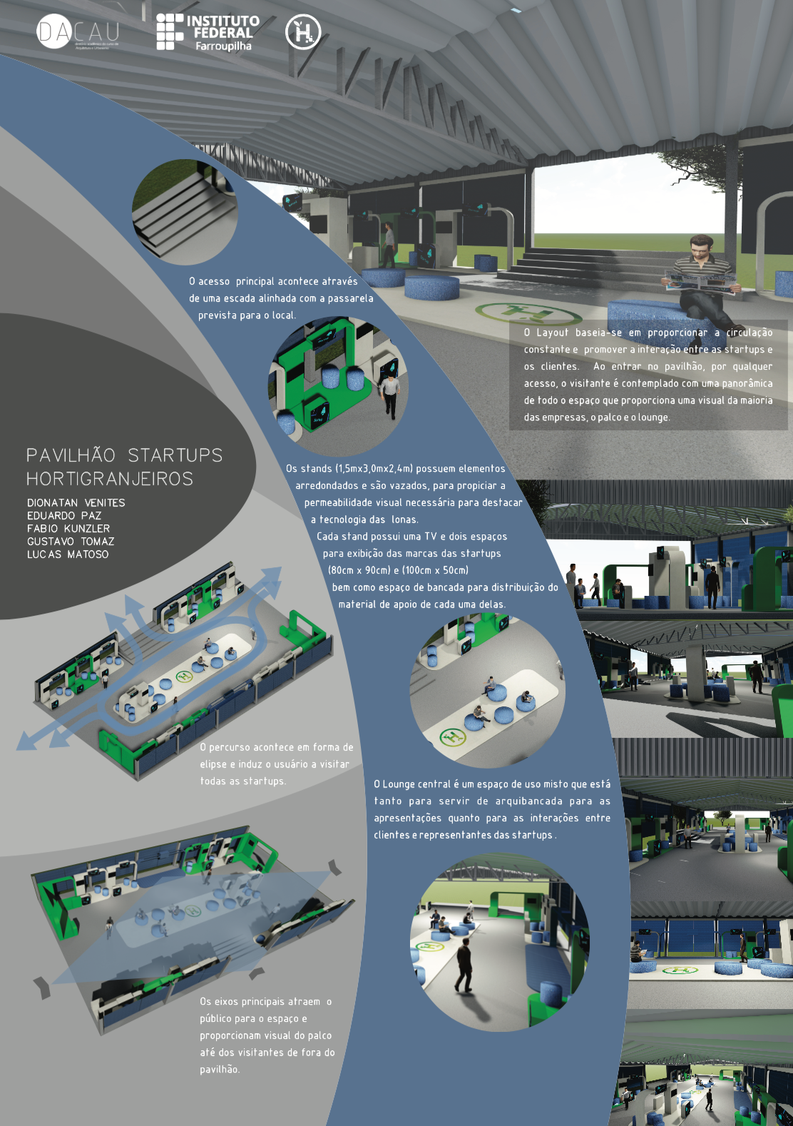 As propostas impressionaram a comissão organizadora pela qualidade de representação e apresentação, além de criatividade e diversidade de ideias. As mesmas foram entregues aos membros da comissão para que, em conjunto, consigam avaliar a viabilidade executiva de cada uma e a solução que melhor atende ao espaço nesse momento. Todas as propostas apresentadas serão expostas ao longo do evento, no Espaço Startups.