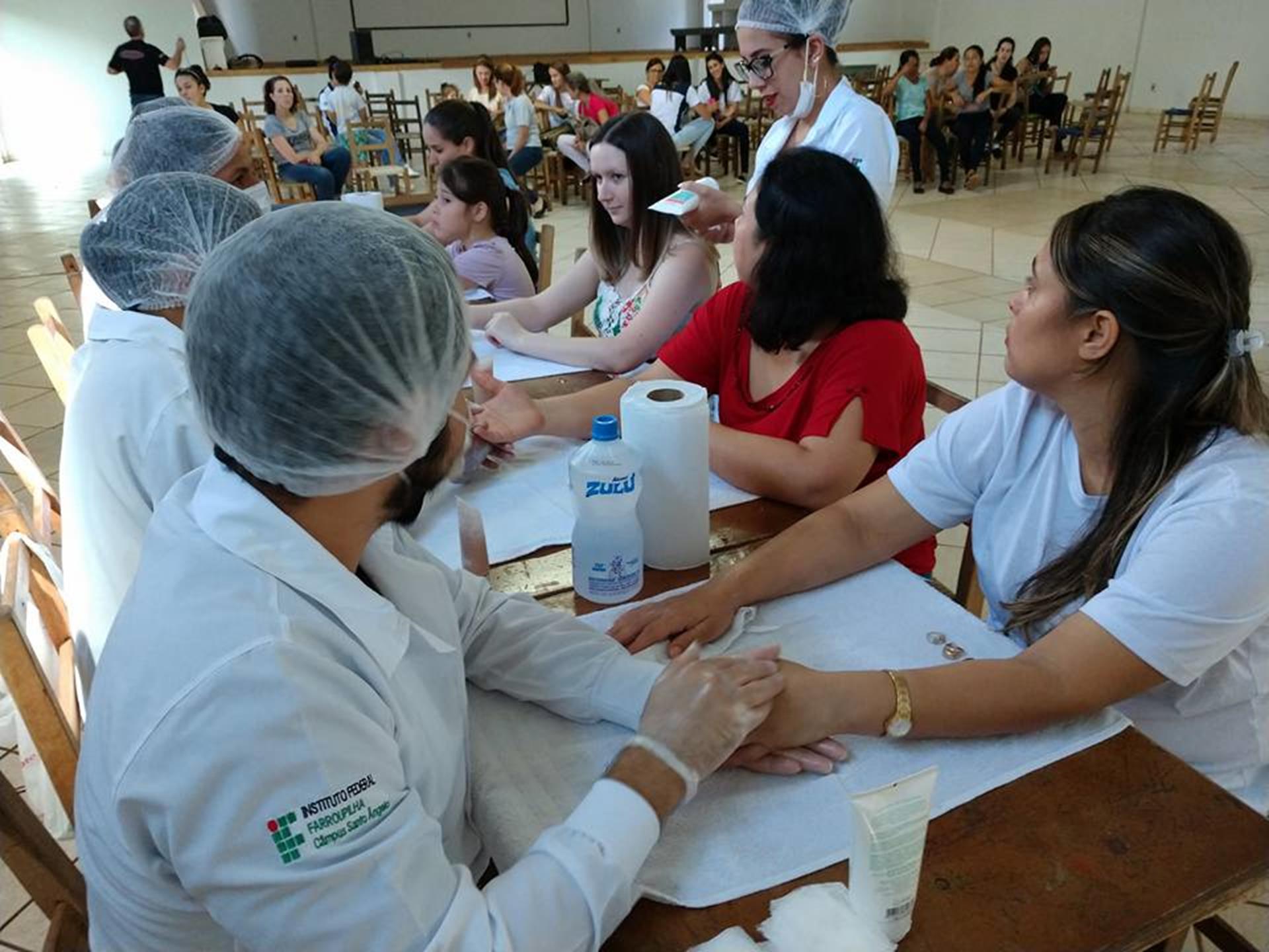 Foram proporcionadas à população diversas atividades, tais como verificação de Pressão Arterial e Glicose, além de orientações em saúde pelo pessoal do Curso Técnico em Enfermagem, orientados pelas professoras Sandra Cardoso e Rita Fernanda.