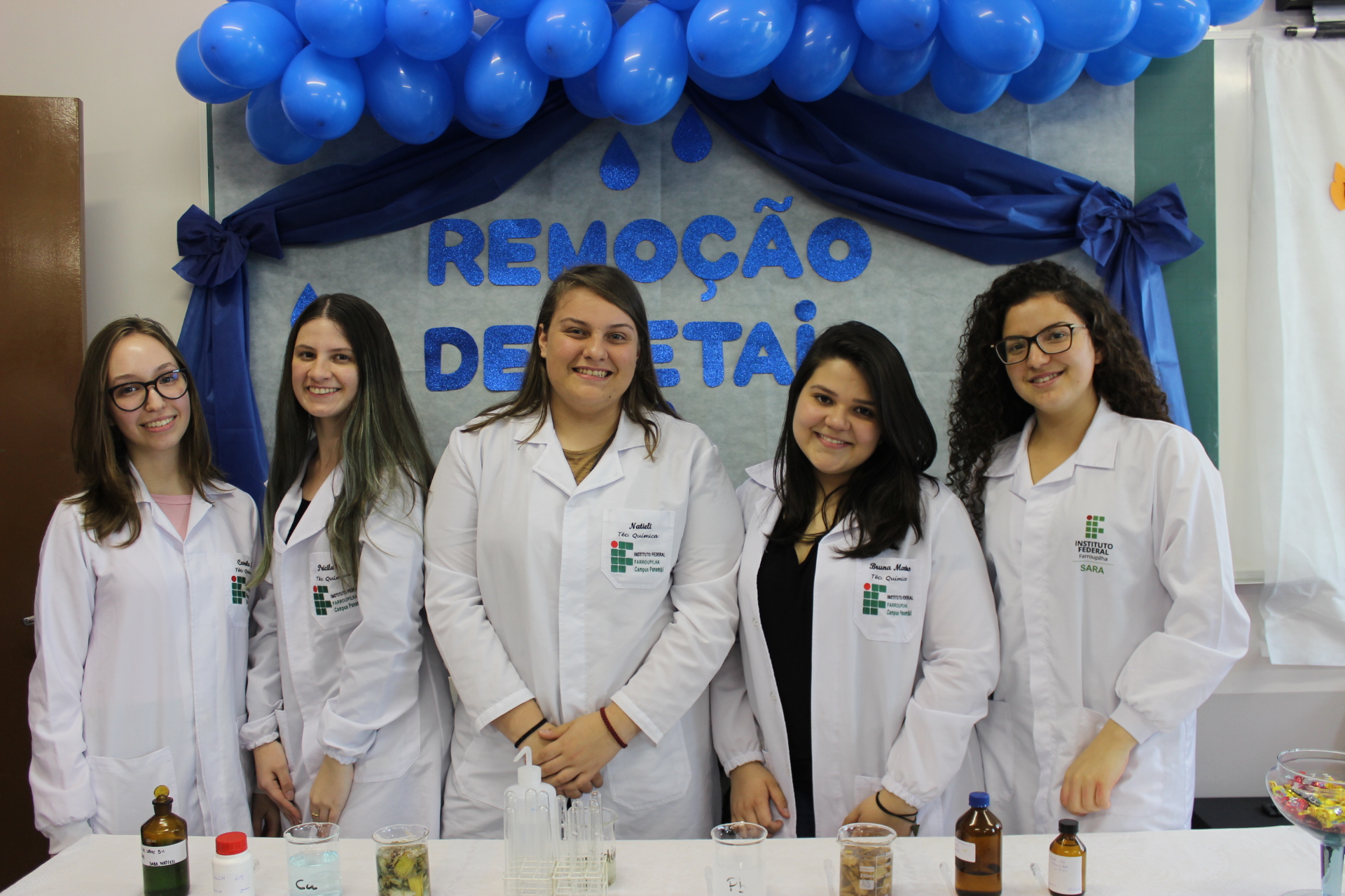 Alunos da química desenvolveram trabalhos a partir do enfoque ambiente e sociedade, apresentando projetos que versaram sobre as diferentes aplicações da química em distintas situações, tais como estudos com alimentos, tratamento e reutilização da água, geração de energia, a química das emoções, etc.