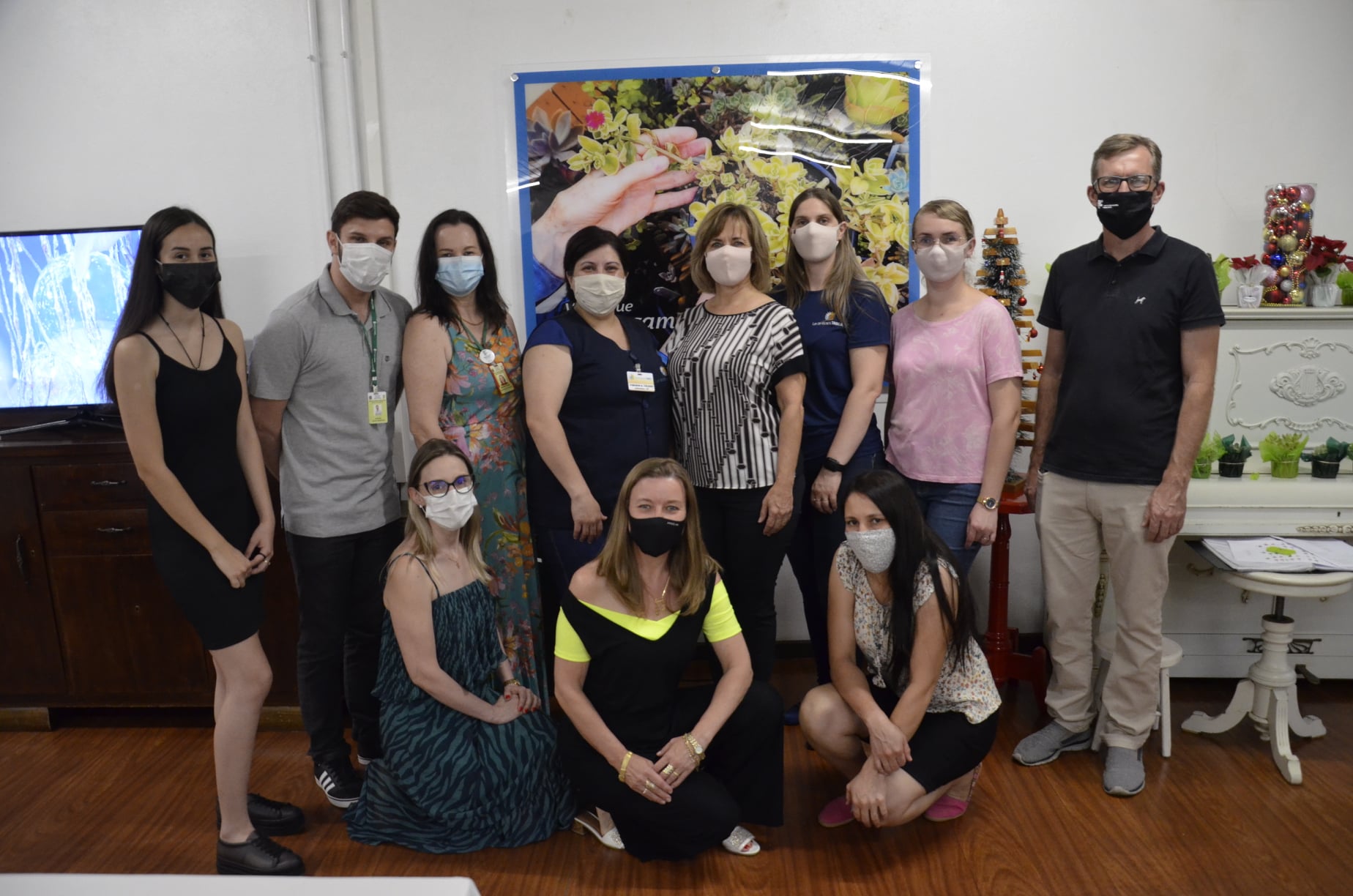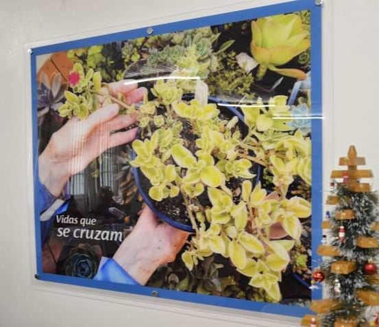 No dia 14 de dezembro a equipe do IFFar realizou o encerramento das atividades no Lar e foi surpreendida por uma linda homenagem. O Lar confeccionou um quadro com a foto de uma das plantas cultivadas no projeto e com o seu lema, “Vidas que se cruzam”, que ficará exposto no salão para relembrar os momentos especiais vividos durante o projeto. A homenagem fez os corações dos participantes transbordarem de emoção.