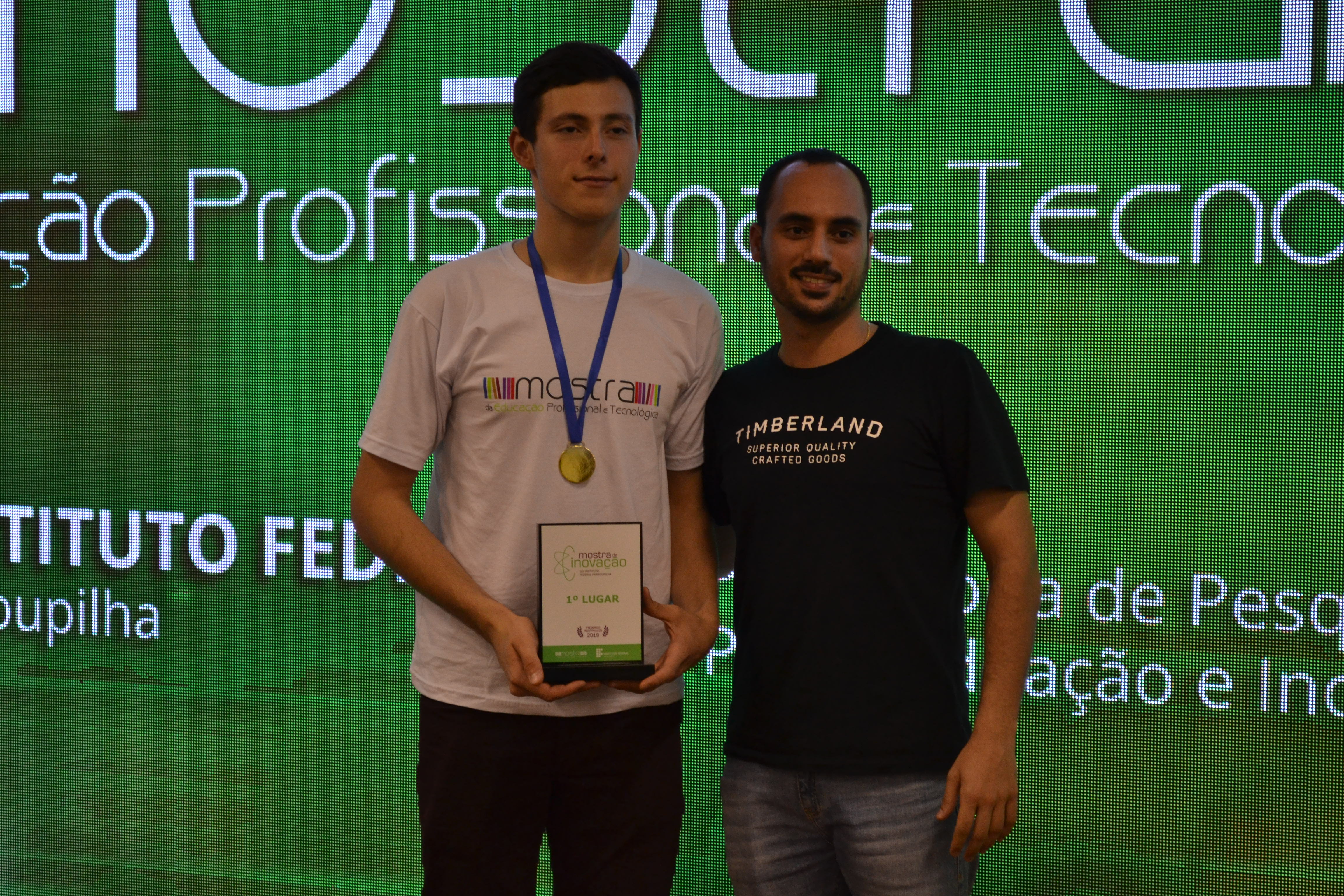 Os alunos Lucas Cargnelutti e Daiane Bermann Corrêa, orientados pelos professores Thaiane Socoloski e Vlads Godói, e colaboração da professora Jéssica Lucion para a gravação dos sons, apresentaram o trabalho intitulado "Protótipo de uma calculadora sonora para usuários com deficiência visual" e receberam o prêmio de 1º lugar na Mostra de Inovação!