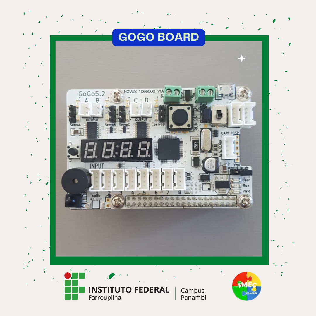 A GoGo Board é uma plataforma de prototipagem de código aberto baseado em hardware e software de fácil utilização. Trata-se, então, de uma placa que é capaz de controlar saídas (ativação de um motor, ligar um LED, controlar cargas, etc.), além de ler entradas (luz ou temperatura em um sensor, um dedo em um botão, etc.) e transformá-las em uma saída, ou seja, é possível a comunicação entre entradas e saídas.