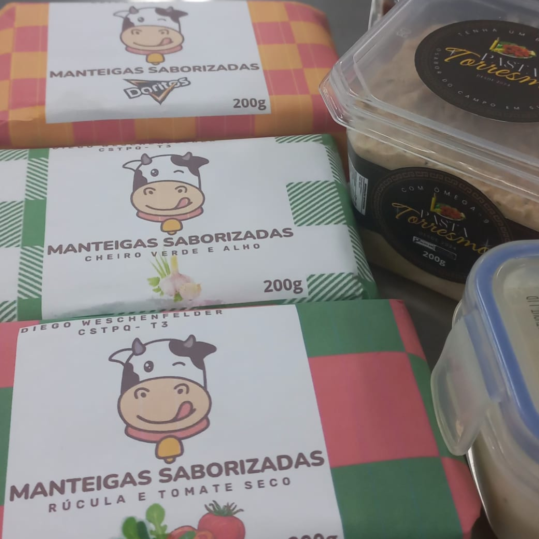- Manteigas saborizadas: Doritos, torresmo, orégano, cheiro verde e tomate seco.