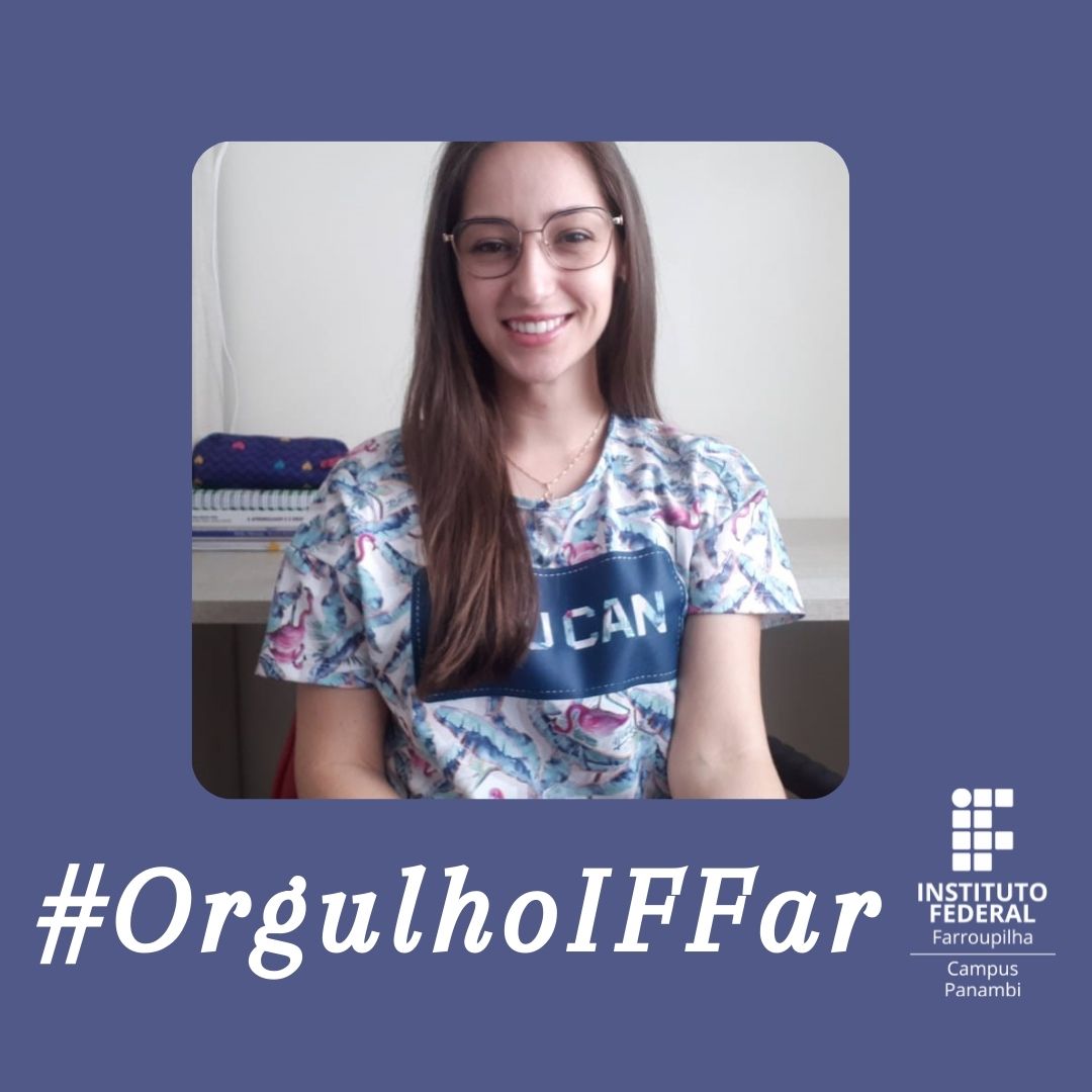 O #OrgulhoIFFar de hoje traz o depoimento da Gabriela Brum de Deus, egressa do Curso Técnico Integrado ao Ensino Médio em Manutenção e Suporte em Informática, do IFFar – Campus Panambi.