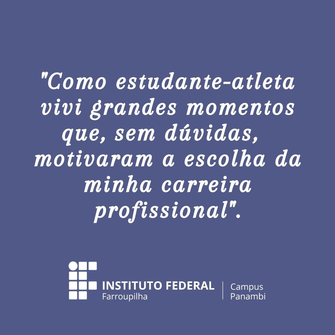 Só tenho a agradecer ao IFFar - Campus Panambi pelo incentivo aos estudos e ao esporte!".