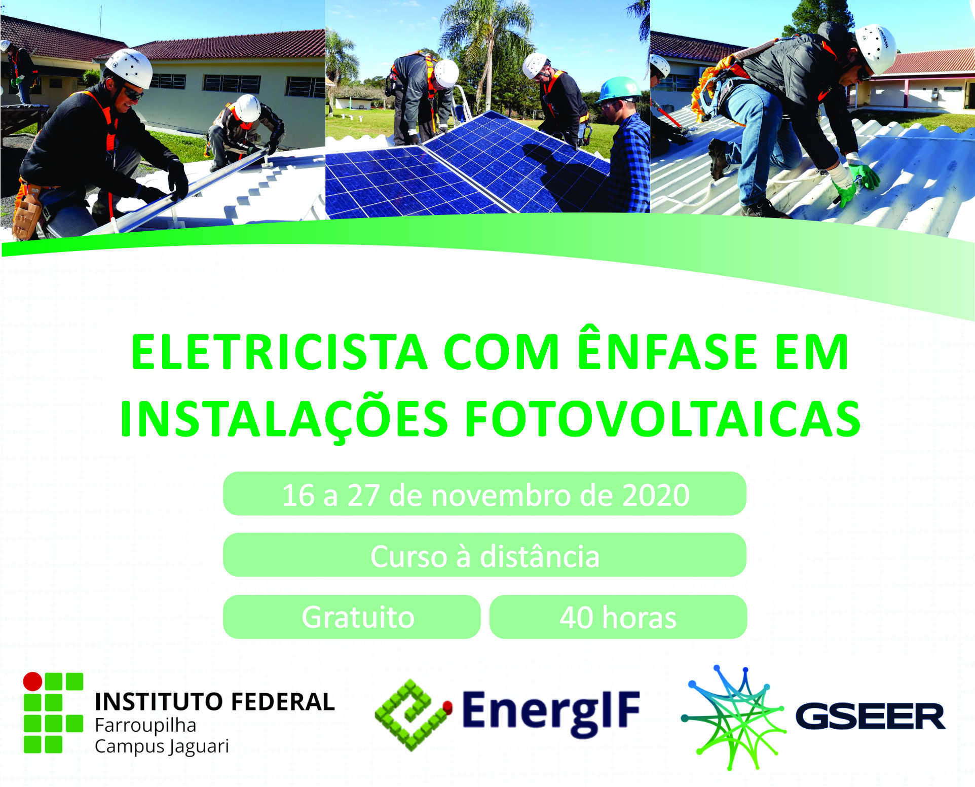 O Instituto Federal Farroupilha – Campus Jaguari ofertará o Curso de ELETRICISTA COM ÊNFASE EM INSTALAÇÕES FOTOVOLTAICAS
