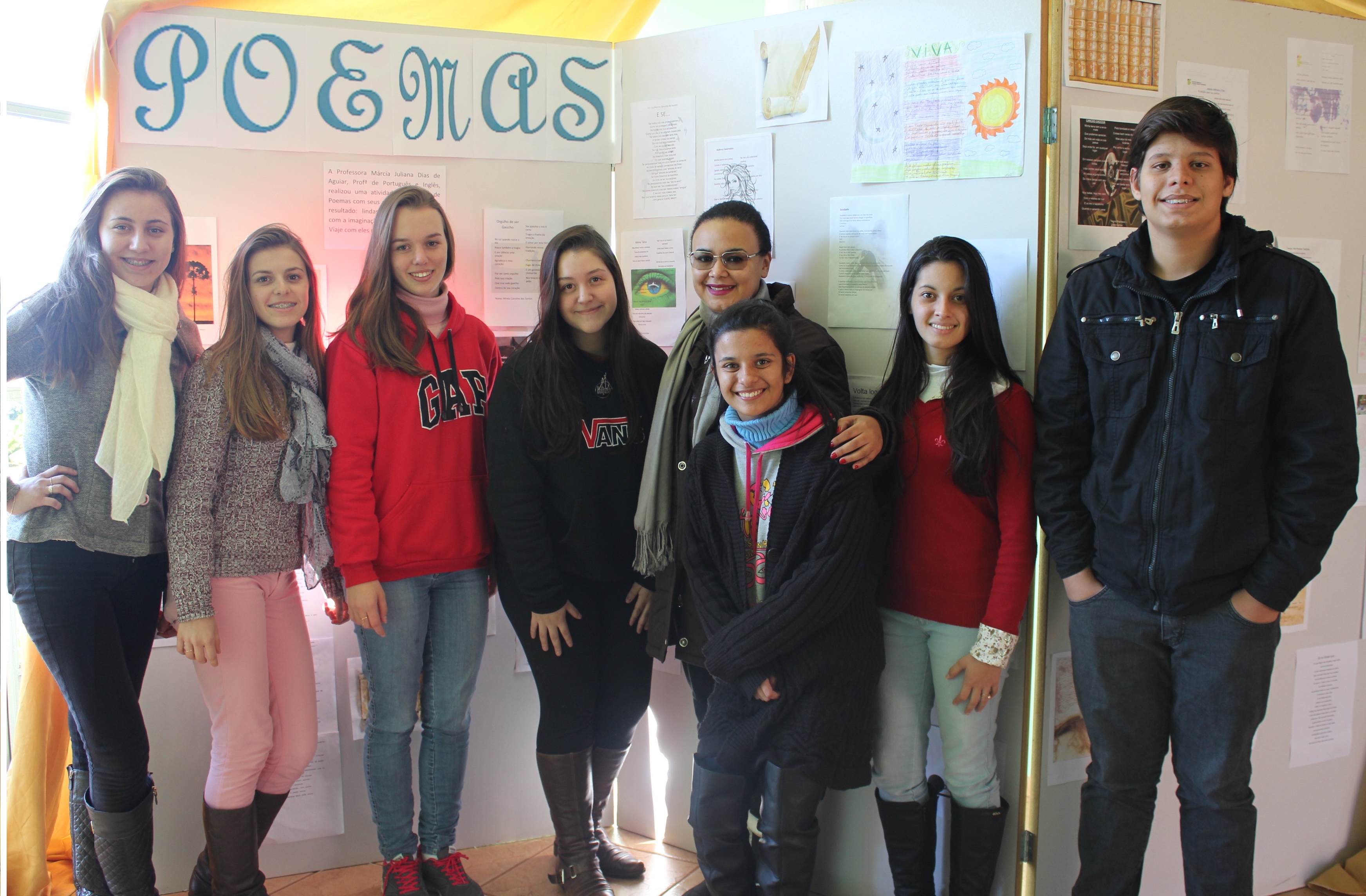 Eis um ótimo exemplo disso: a turma do 1º Alimentos, na introdução à Literatura, teve a oportunidade de produzir poemas com o tema “Literatura: a arte da palavra”. Já a turma do 2º Alimentos, nos estudos do estilo literário Romantismo, foram instigados a produzir um poema intertextual da Canção do Exílio, de Gonçalves Dias. Ao tomar conhecimento dos poemas que os alunos haviam feito, sob a coordenação da Professora de Português e Inglês, Marcia Aguiar, a Professora de Artes, Janaina Feller decidiu lançar um desafio aos alunos: transformar os seus poemas em representações teatrais.