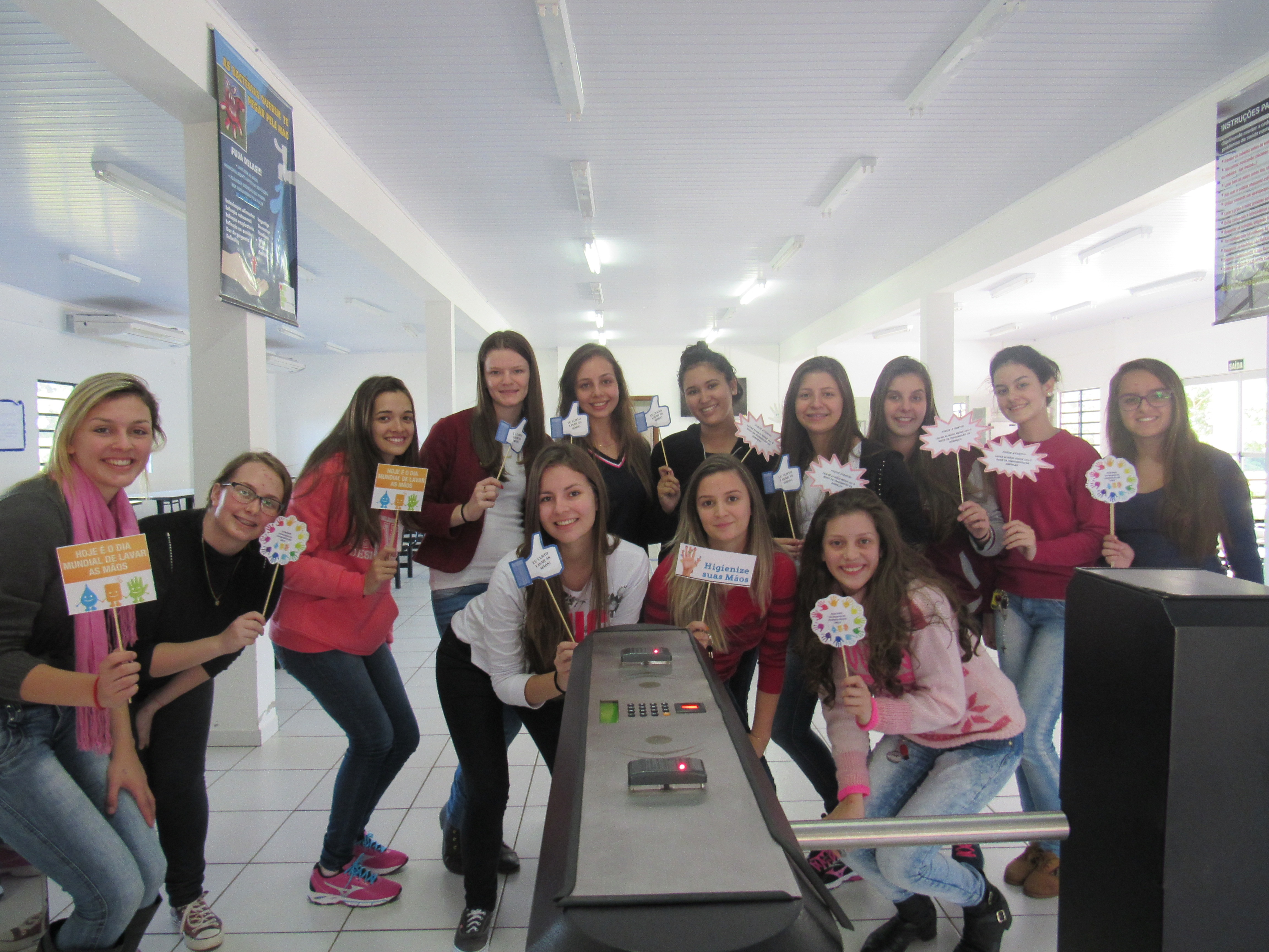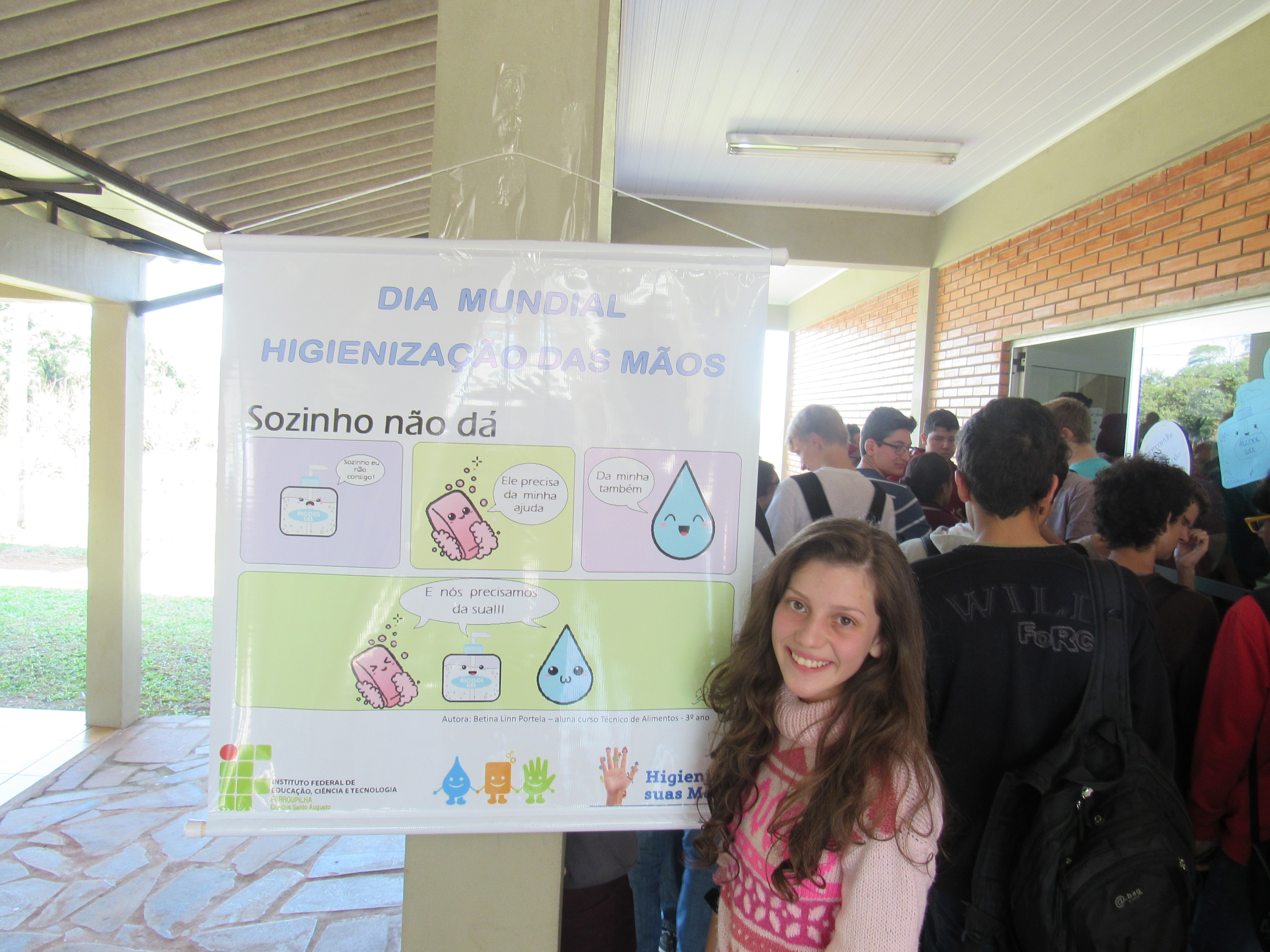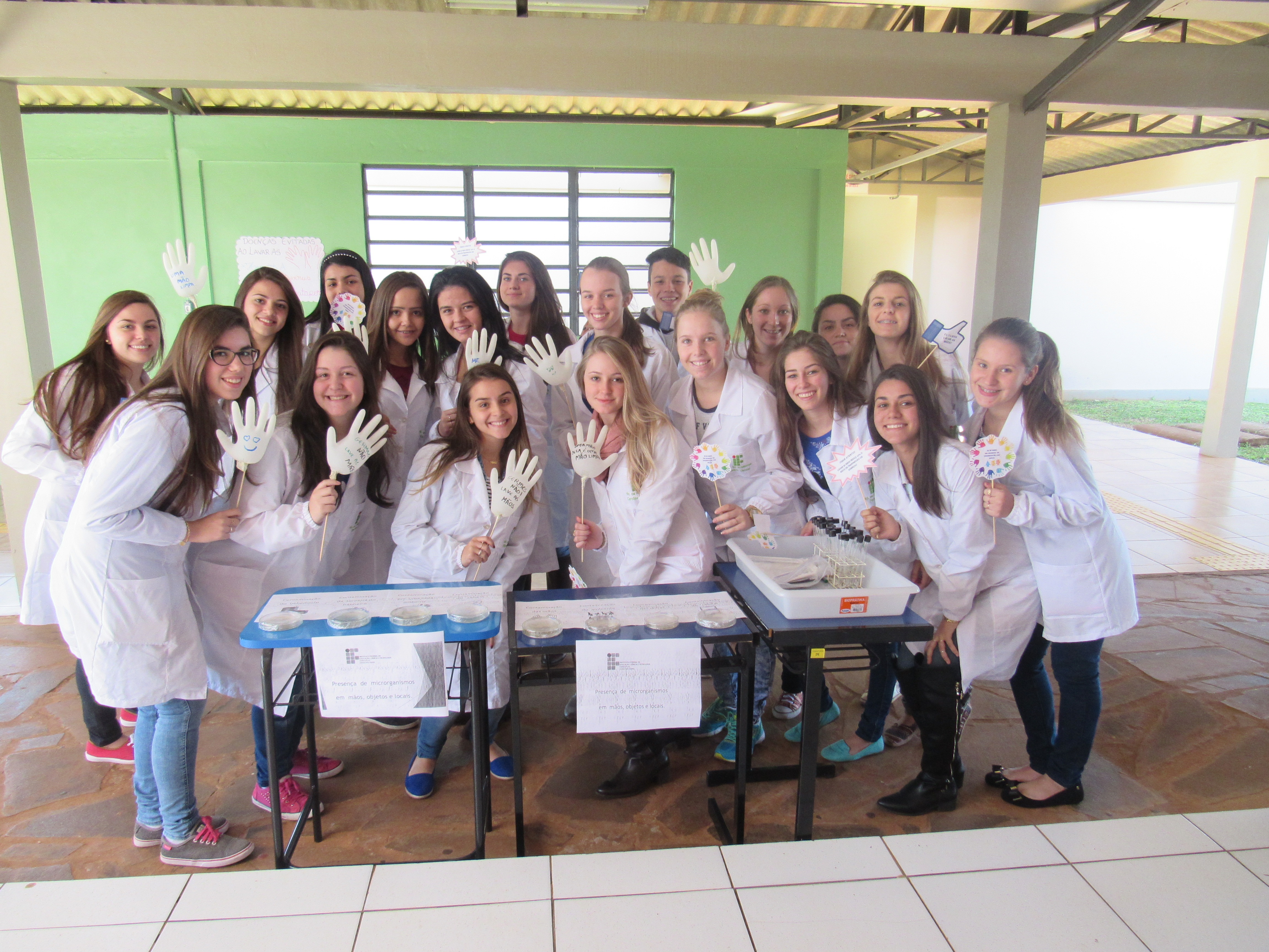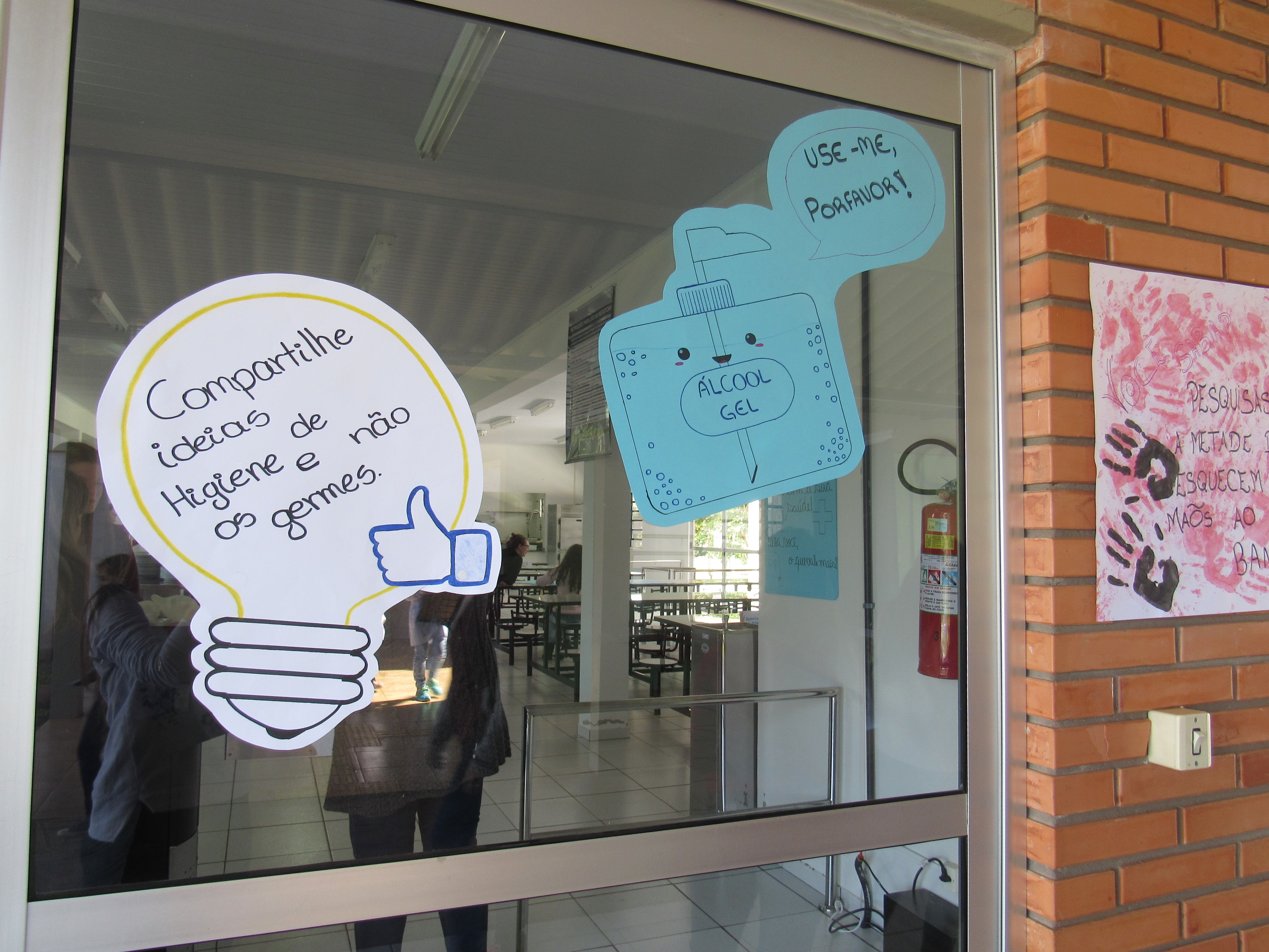 Dia 5 de maio é o Dia Mundial da Higienização das mãos, e os alunos das turmas do 3º e 2º anos do curso técnico em alimentos fizeram uma atividade na entrada do refeitório para reforçar esta prática simples e pouco executada no nosso dia a dia. Eles confeccionaram cartazes falando da importância da higienização das mãos, e frases informativas. A turma do 2º ano apresentou placas com contaminações microbiológicas que estão presentes, entre outros lugares, nas mãos, celular, notas de dinheiro, cabelo, torneira de banheiro e bebedouro de água.