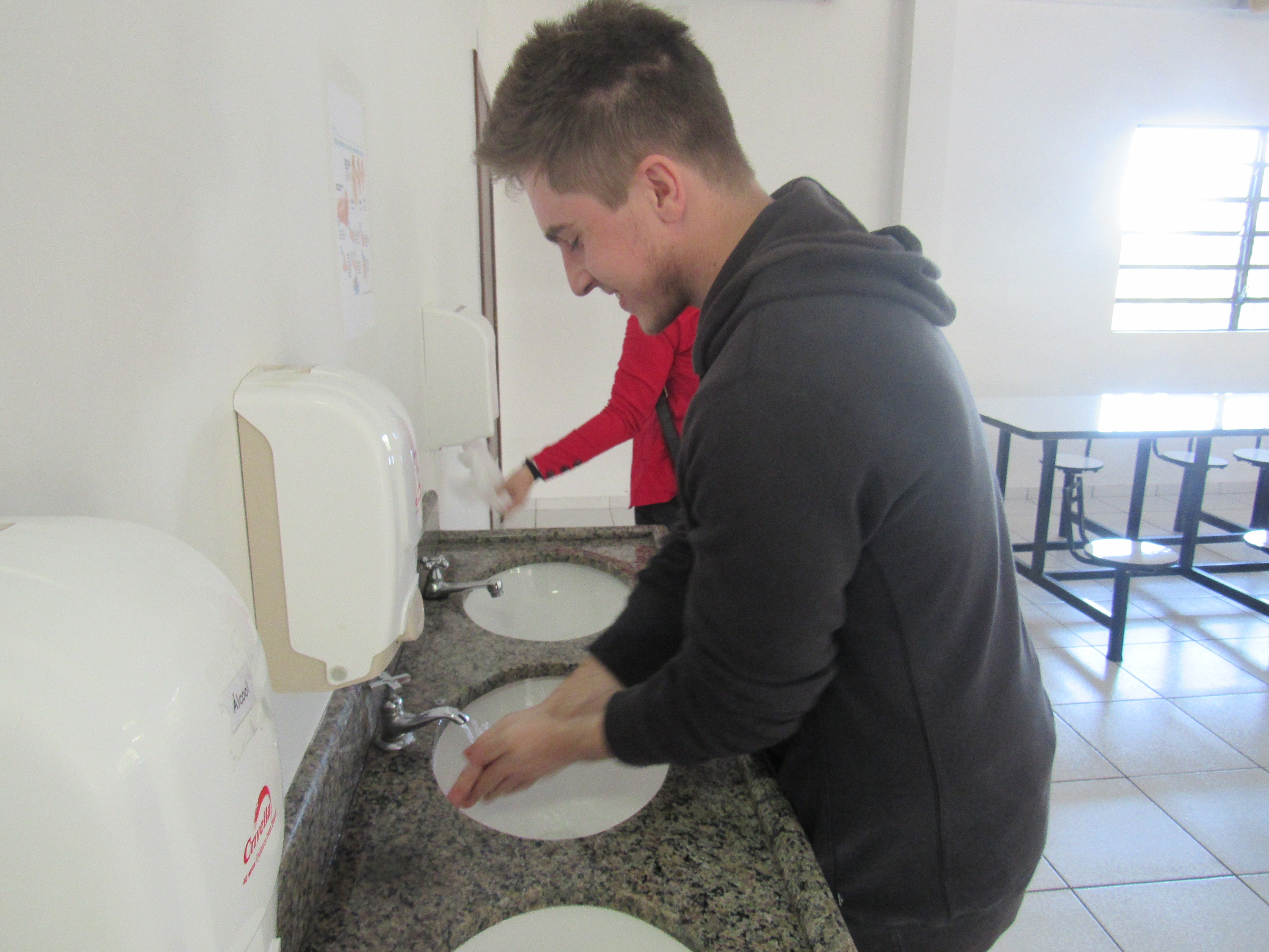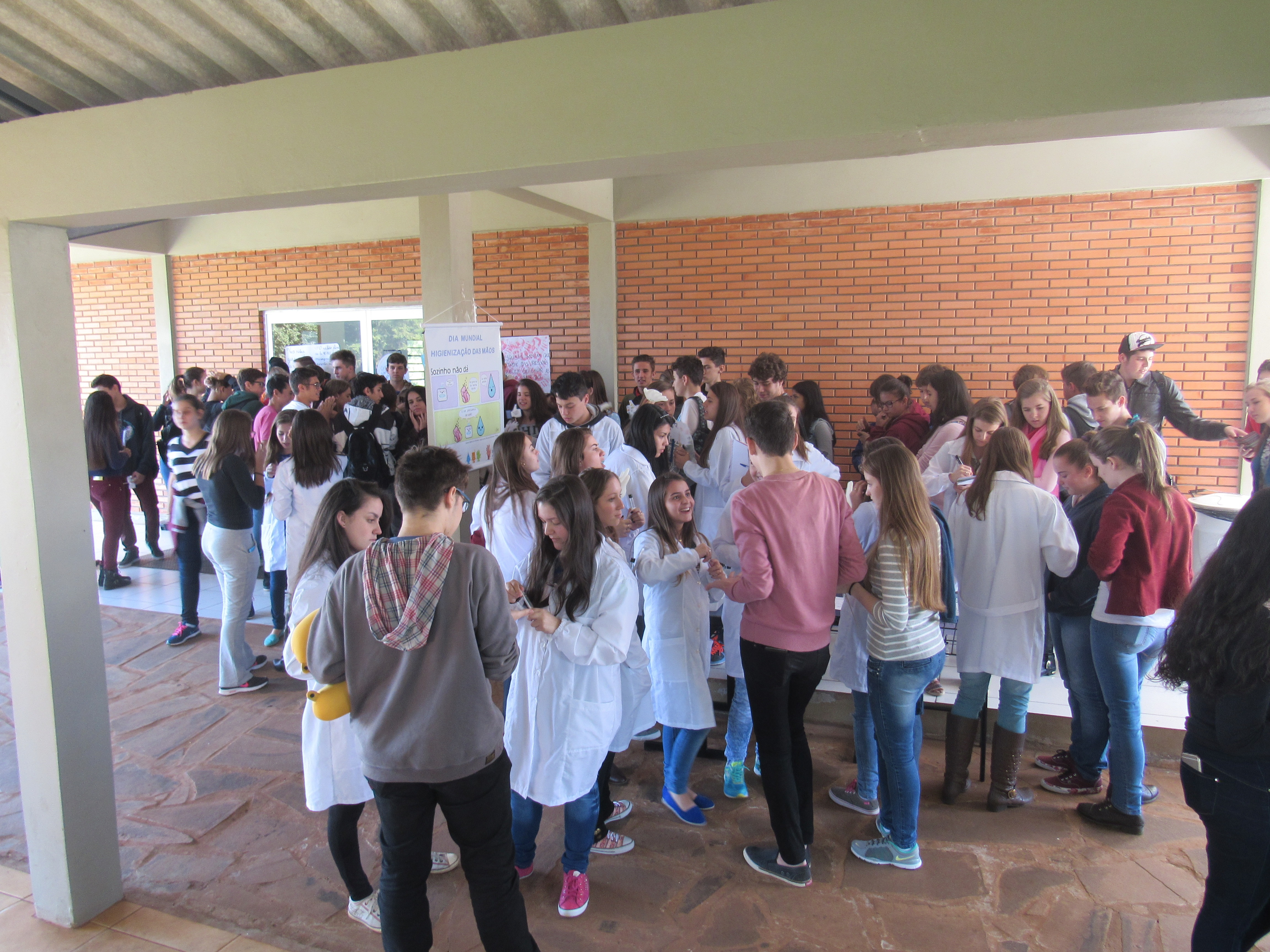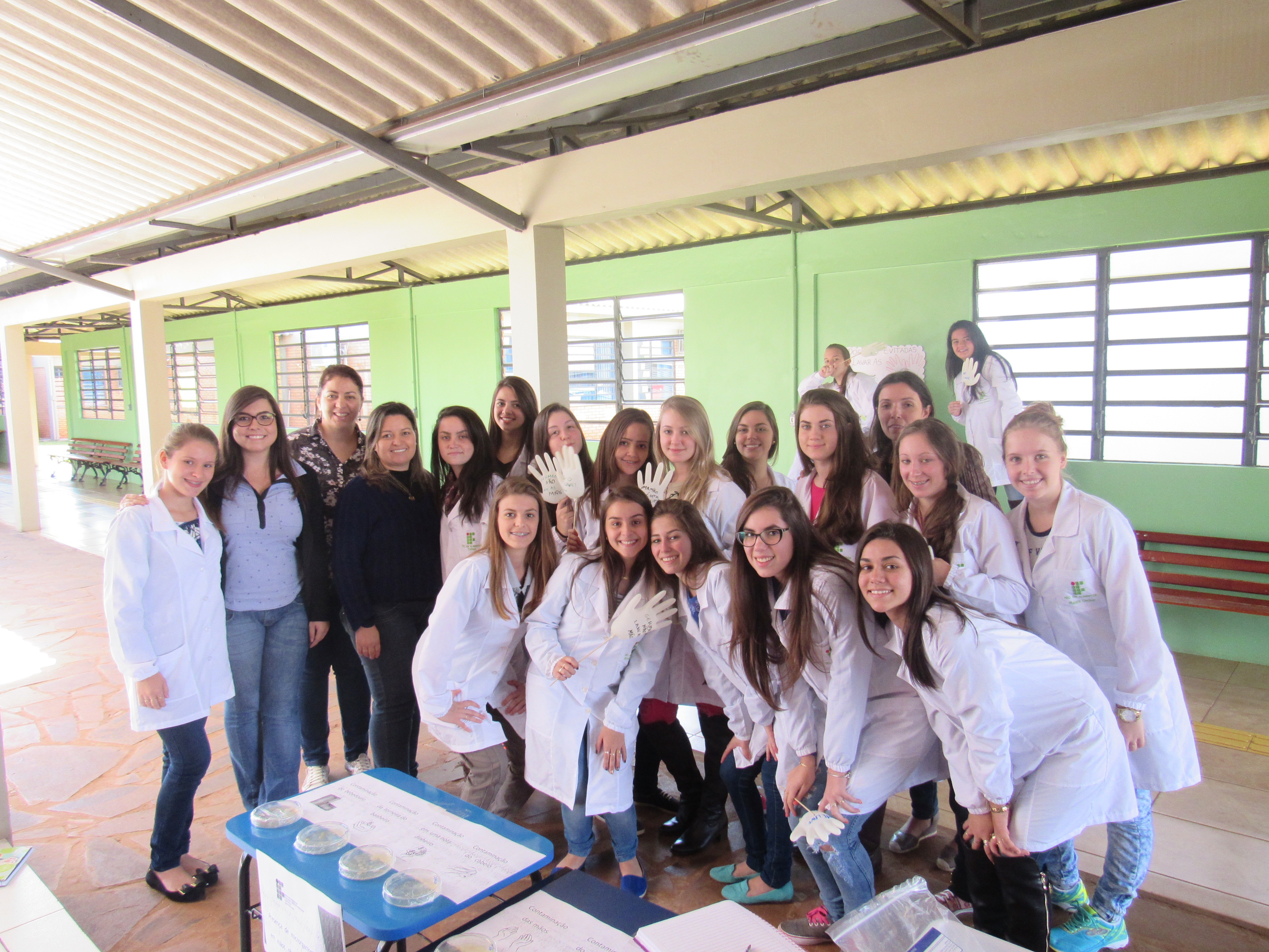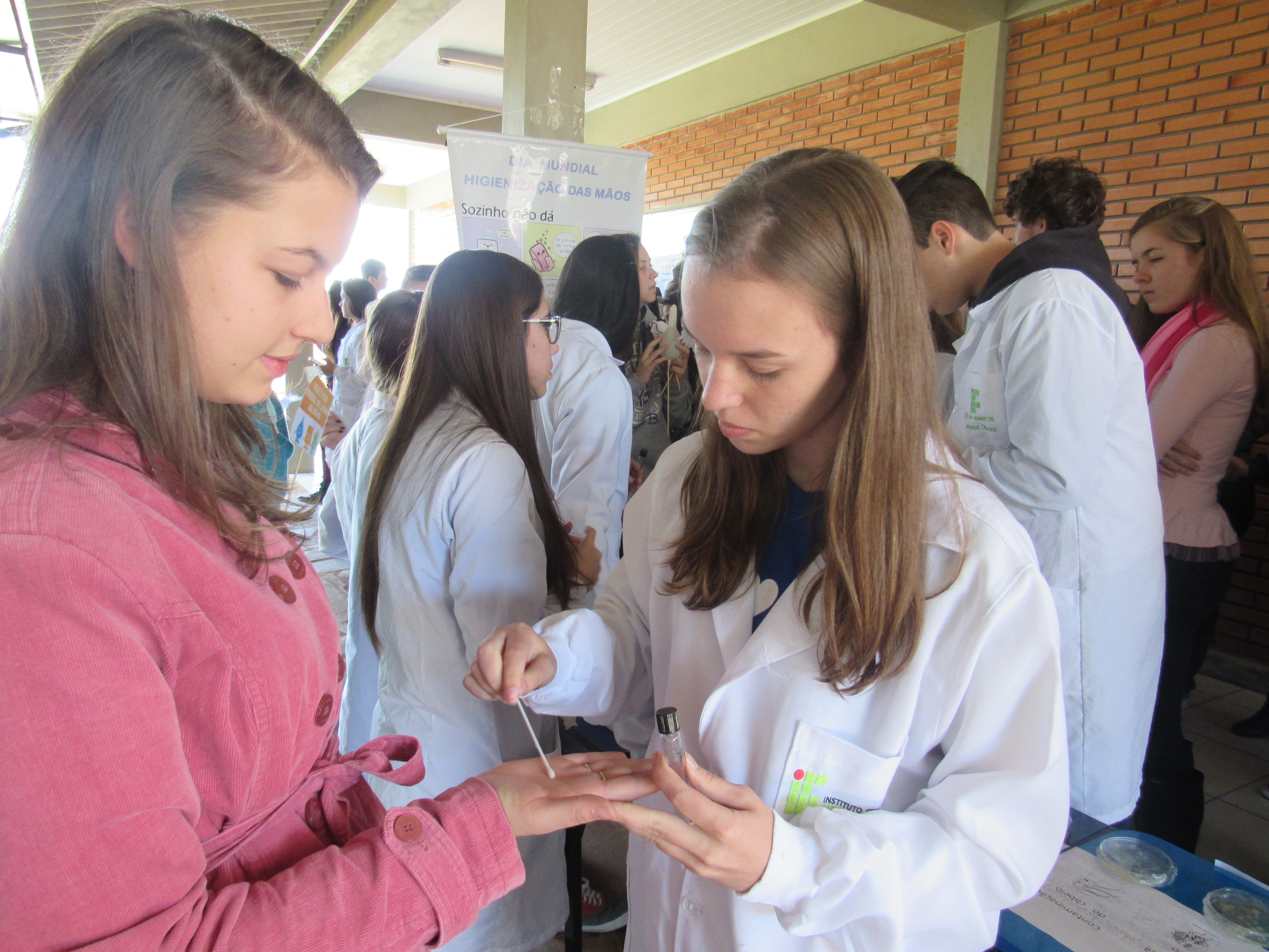 Dia 5 de maio é o Dia Mundial da Higienização das mãos, e os alunos das turmas do 3º e 2º anos do curso técnico em alimentos fizeram uma atividade na entrada do refeitório para reforçar esta prática simples e pouco executada no nosso dia a dia. Eles confeccionaram cartazes falando da importância da higienização das mãos, e frases informativas. A turma do 2º ano apresentou placas com contaminações microbiológicas que estão presentes, entre outros lugares, nas mãos, celular, notas de dinheiro, cabelo, torneira de banheiro e bebedouro de água.