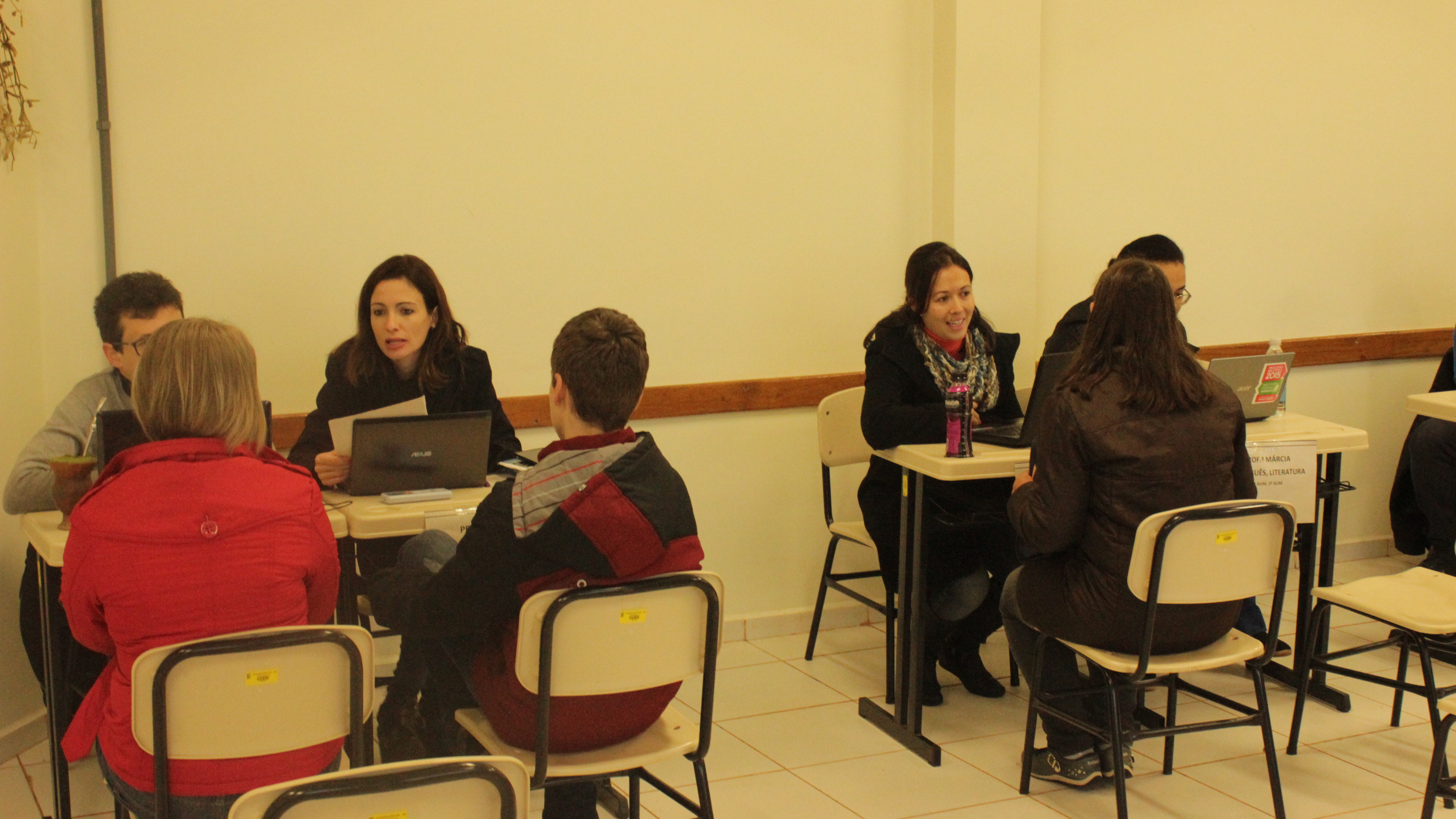 Os pais, ou responsáveis, eram recebidos pelos regentes das turmas que faziam uma rápida interação e, na sequência, conversavam individualmente com todos os professores, entre outros assuntos, sobre o comprometimento, a frequência e o aprendizado de seus filhos.