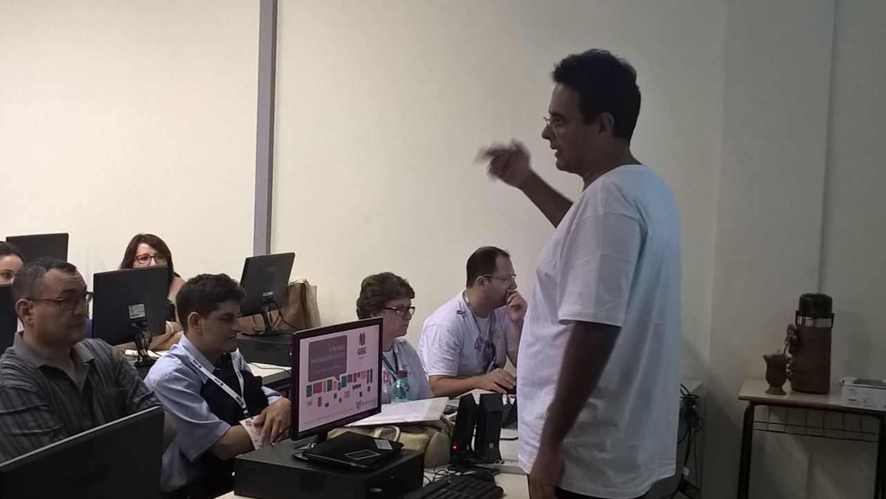 Com o tema “A liberdade digital de aprender”, o seminário reuniu participantes de diversos lugares do país. O Professor Gelson André Schneider, do Instituto Federal do Tocantins, por exemplo, além de participar do evento, aproveitou para conhecer o curso de Licenciatura em Computação do Campus Santo Augusto, através de seus professores. Na oportunidade, ele foi presenteado com duas publicações do eixo, e convidado a participar das discussões sobre a temática das tecnologias na educação no próprio Campus. Segundo Gelson, “a participação no SENID é uma excelente oportunidade para a troca de experiências entre os professores de licenciaturas em computação, tendo em vista que o IFTO e o IFFarroupilha ofertam o mesmo curso”.