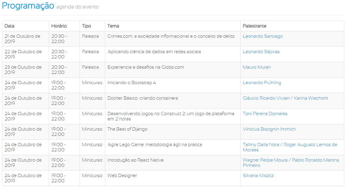 O evento que é coordenado pelo professor André Fiorin (IFFar-FW) e Solange L. Pertile (UFSM-FW) foi realizado entre os dias 21 a 24 de outubro de 2019. Neste ano, em sua 10ª edição, o EATI recebeu estudantes, pesquisadores e profissionais da área de Tecnologia da Informação proveniente de 42 cidades diferentes, sendo 220 inscritos para o evento.
