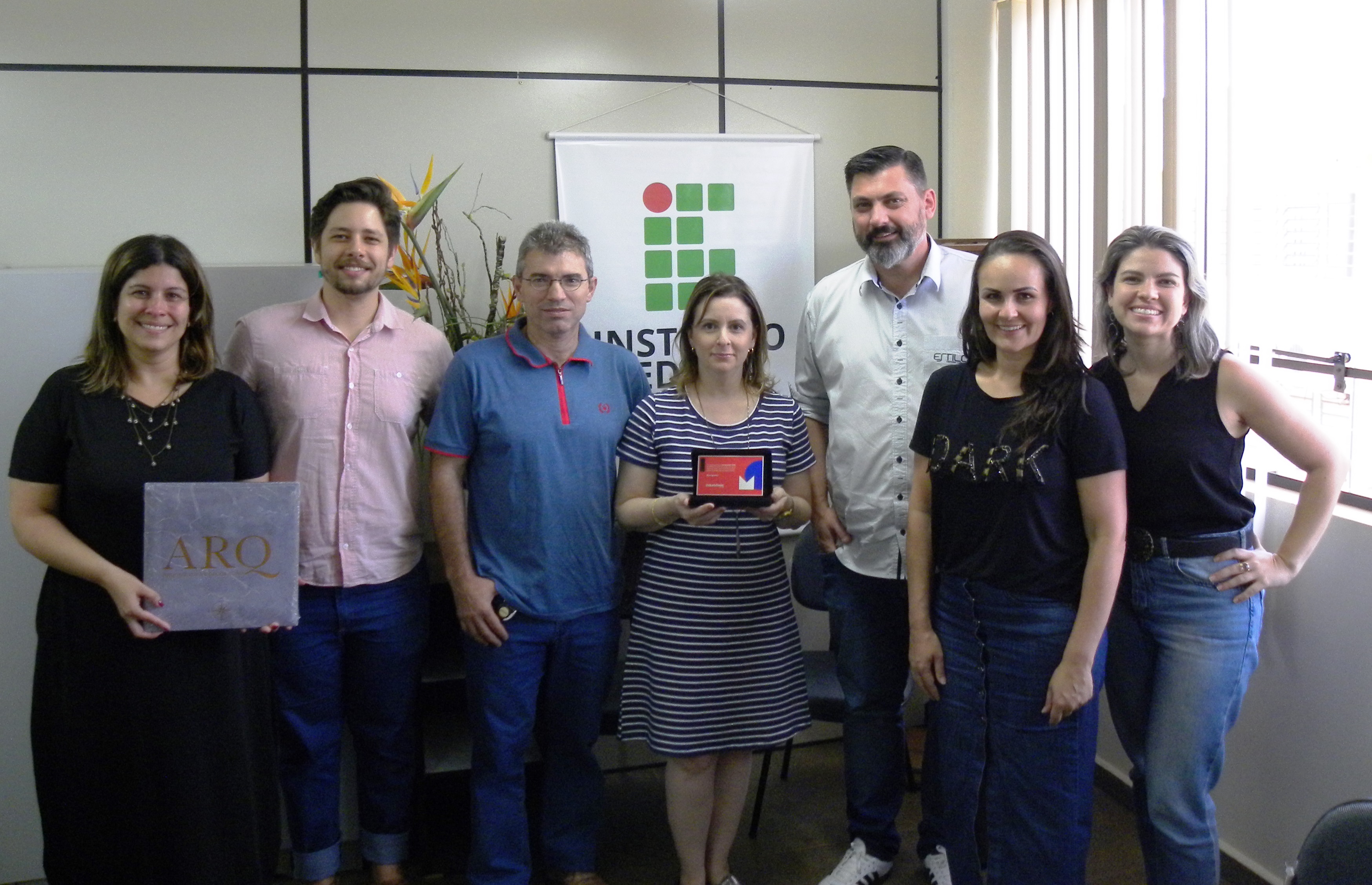 Além da placa de homenagem entregue à diretora Renata Rotta, na presença da coordenadora do curso de Arquitetura e Urbanismo, Fernanda Conrad Rigo, e dos professores Valter Senger, Juliano Coimbra e Manuela Ilha Silva, eles presentearam o campus com um exemplar do Anuário 2020 ARQ Arquitetura e Decoração. A obra foi doada à Biblioteca do Campus.