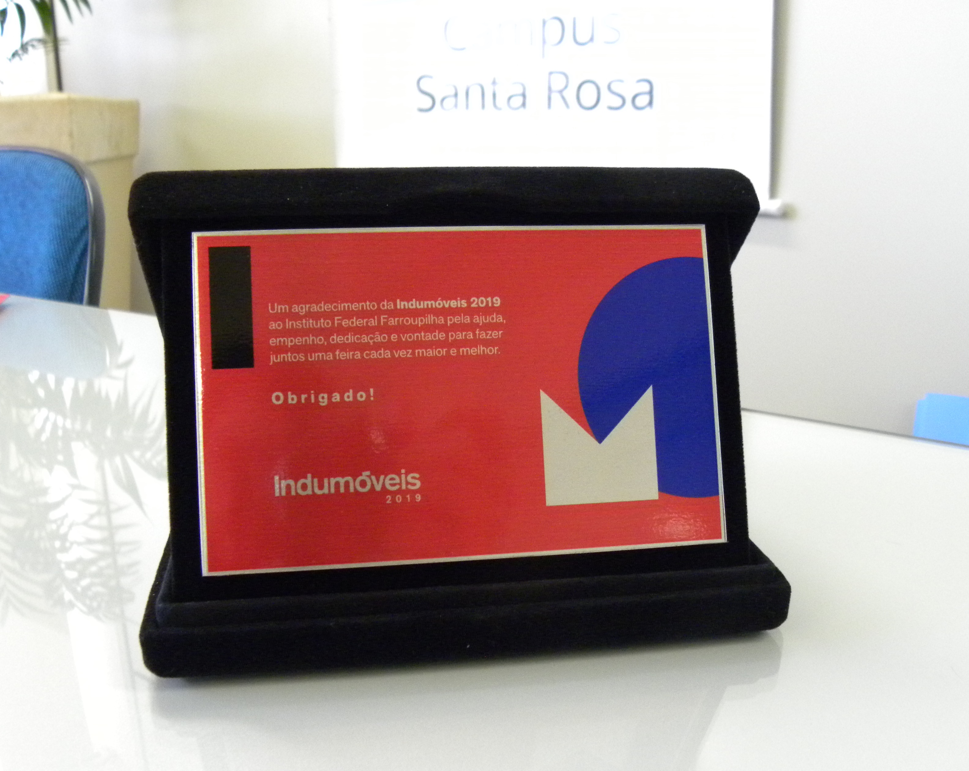 Na tarde de quarta-feira (18), o presidente da Indumóveis, Tito Feix, e a arquiteta Luciana Locatelli, estiveram no IFFar Campus Santa Rosa para entregar uma homenagem aos acadêmicos e professores dos cursos técnicos e superiores que participaram da Indumóveis 2019. Segundo o presidente Tito Feix, o agradecimento formal é um modo de reconhecer a presença importante que o IFFar teve em diversos espaços da feira, como o Concurso de Design e o trabalho voluntário dos alunos na Mostra Arq & Design. O encontro serviu para fortalecer a parceria entre o IFFar e a Indumóveis para a próxima edição da feira, programada para o período de 28 de maio a 06 de junho de 2021.