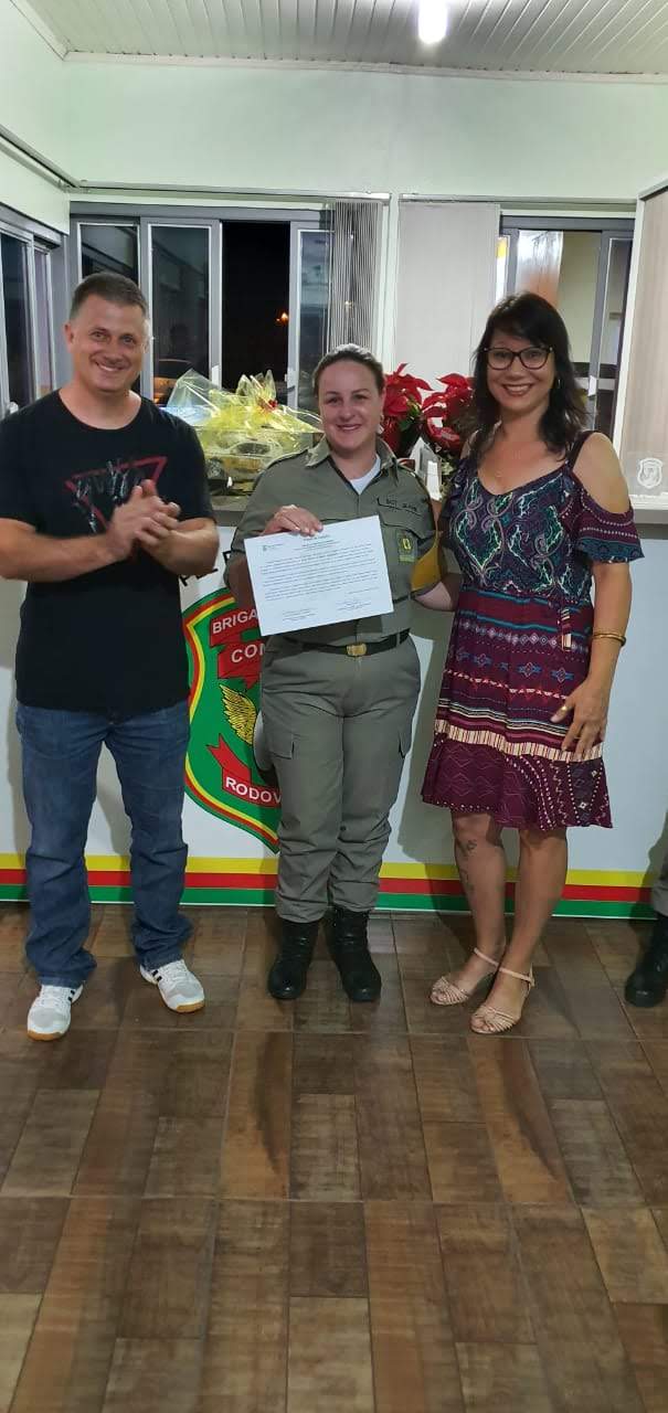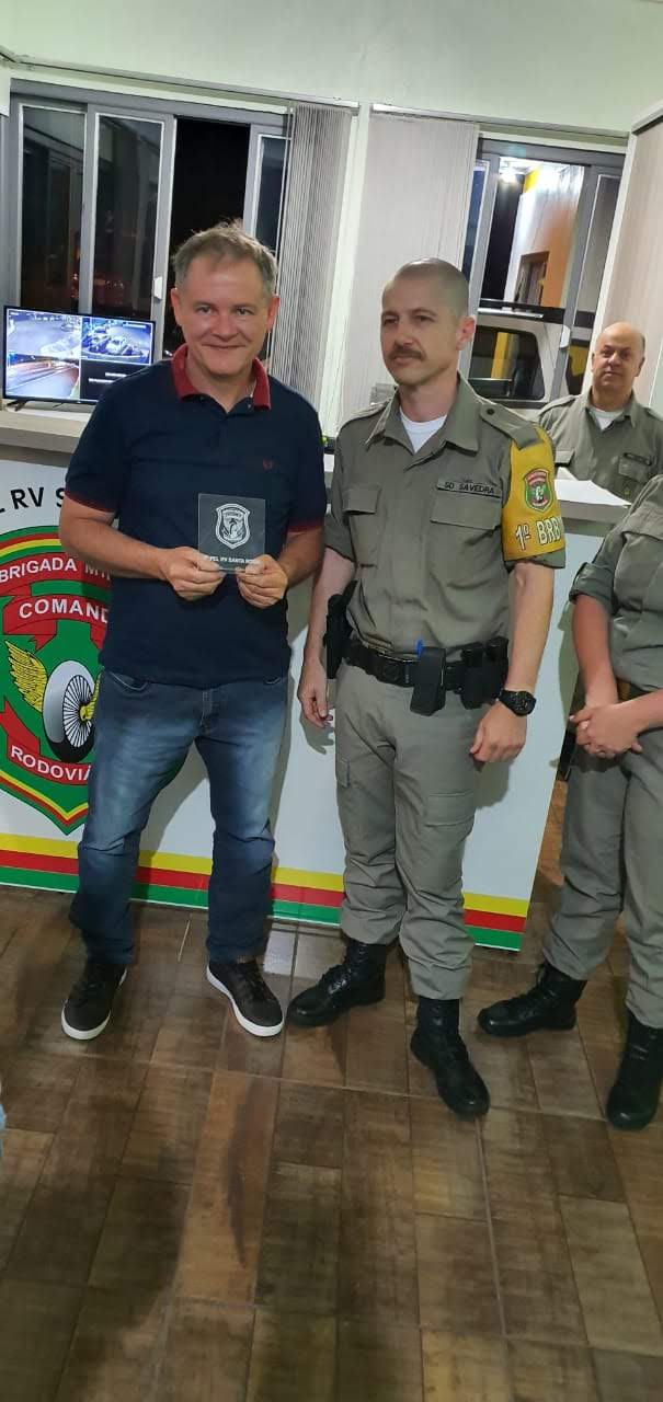 Na ocasião, os representantes do Batalhão Rodoviário receberam o Termo de Doação do projeto. O evento contou com a presença da diretora-geral, Renata Rotta; do coordenador do curso, professor Juliano Moreira Coimbra; dos professores Lucas Tescke e Silvie Jobim; do laboratorista, Pedro Galina e dos alunos do 4° semestre do curso Técnico em Móveis Subsequente. Como mimo, a diretora Renata Rotta recebeu uma réplica da viatura da Polícia Rodoviária com adesivo personalizado ao IFFar - Campus Santa Rosa.