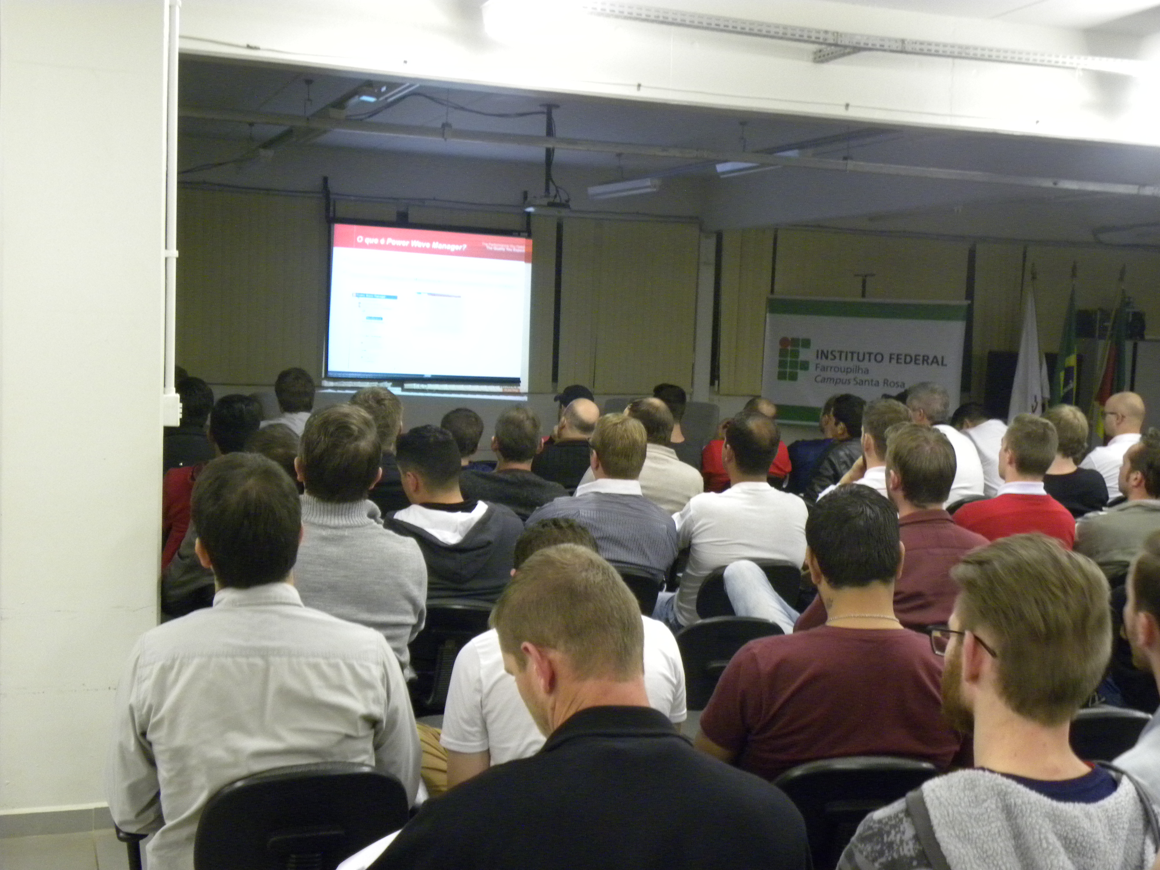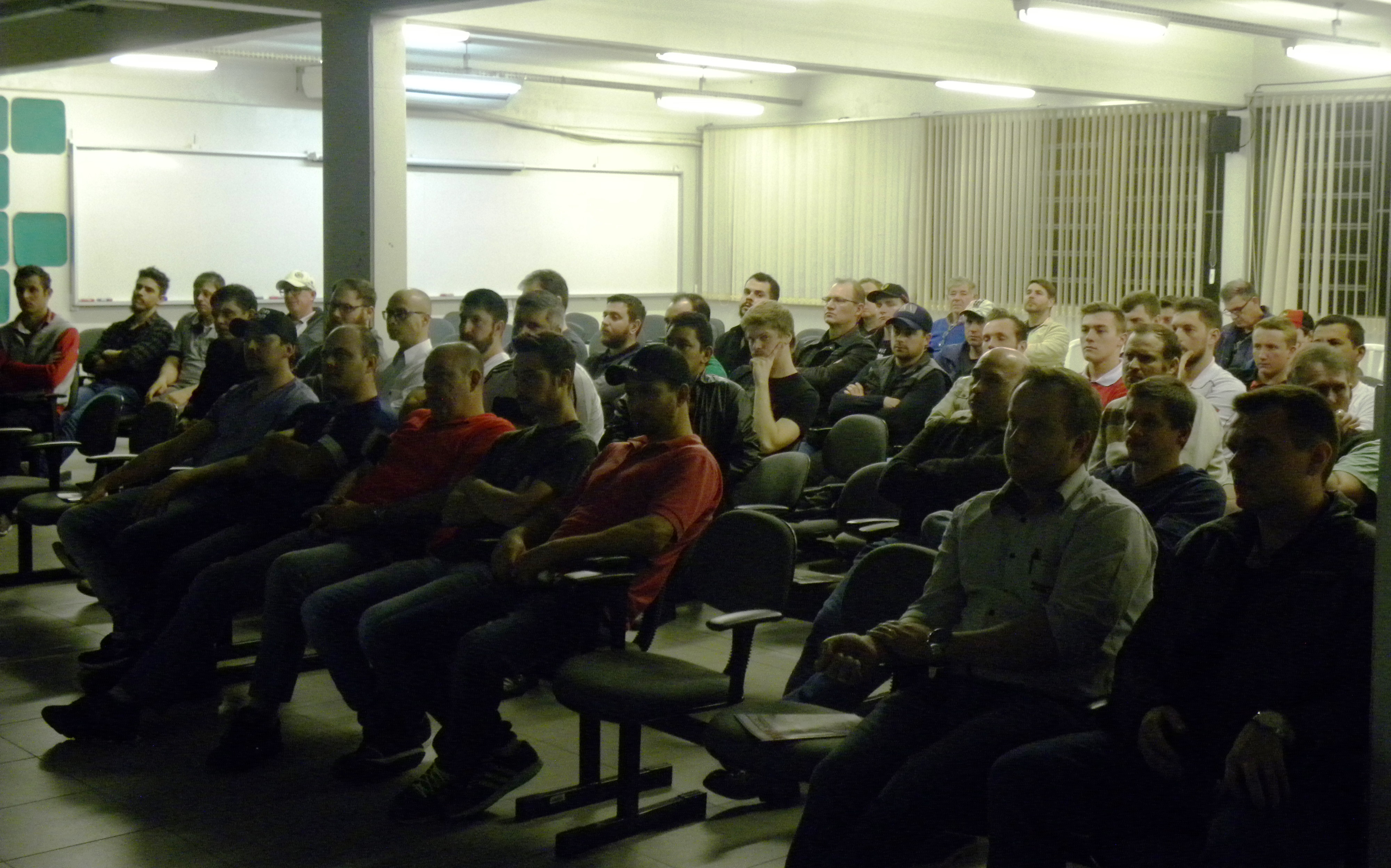 No auditório, aconteceu uma das palestras mais esperadas da MEPT, a "Solda voltada para a indústria 4.0", com o engenheiro da Lincoln Eletric, André Lohmann. Ele falou sobre automação, soldagem robotizada e produtividade para profissionais do setor metalmecânico da região e os alunos do curso Técnico em Eletromecânica.