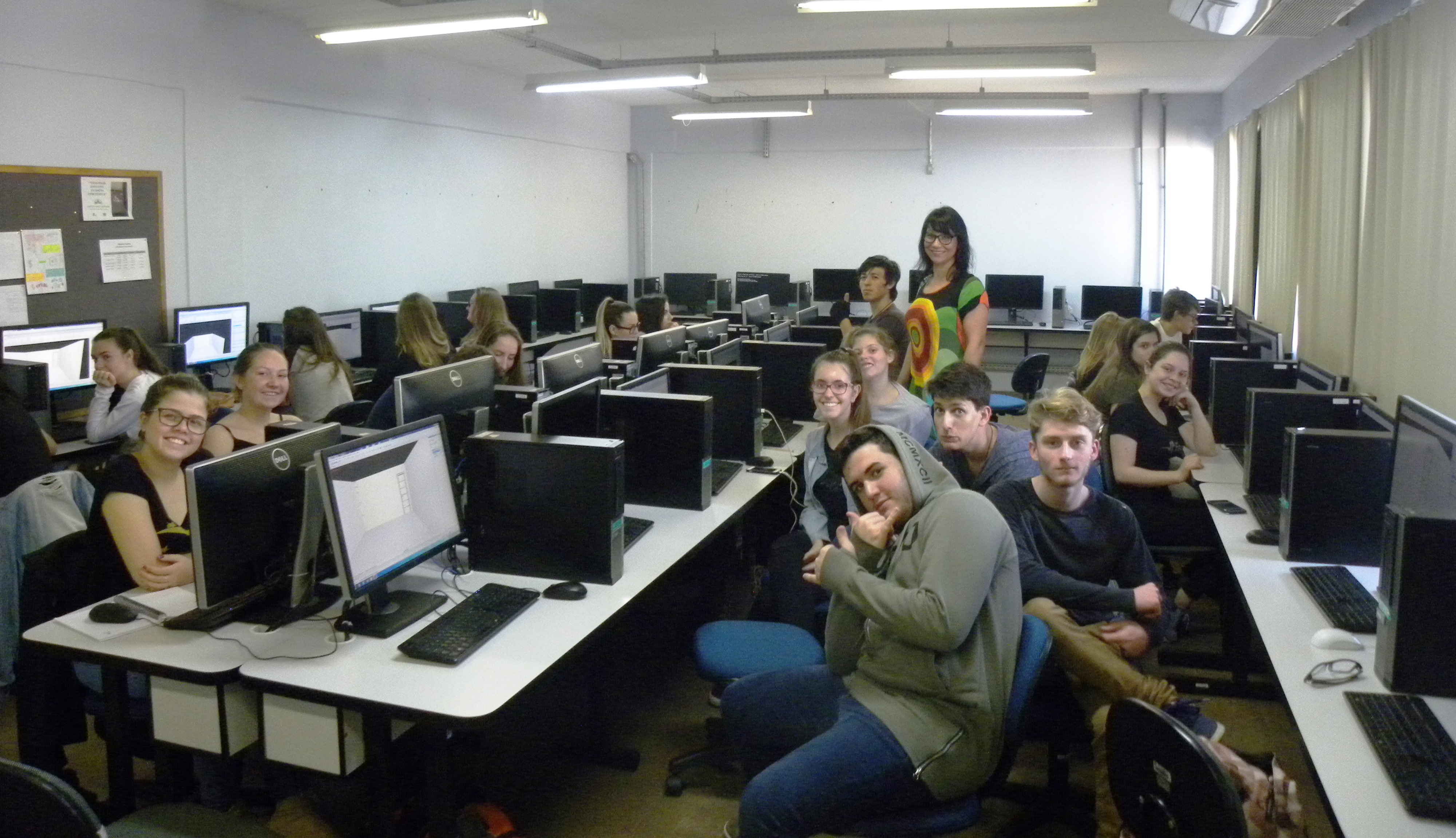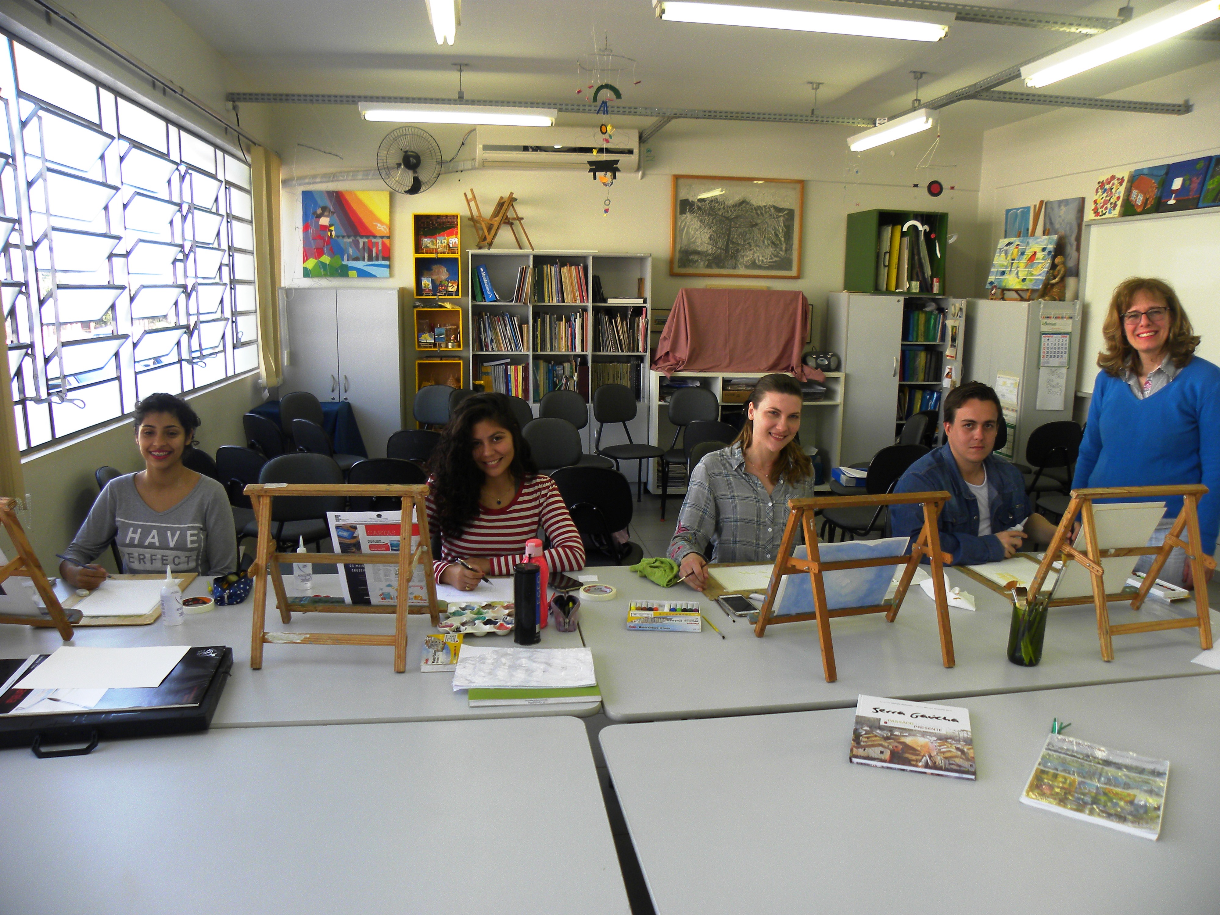 A oficina de Aquarela, ministrada pela professora Cornelia Kudiess, aconteceu no laboratório de Artes, enquanto a professora Silvie Jobim coordenava a oficina de "Introdução ao Promob" no Laboratório de Informática.
