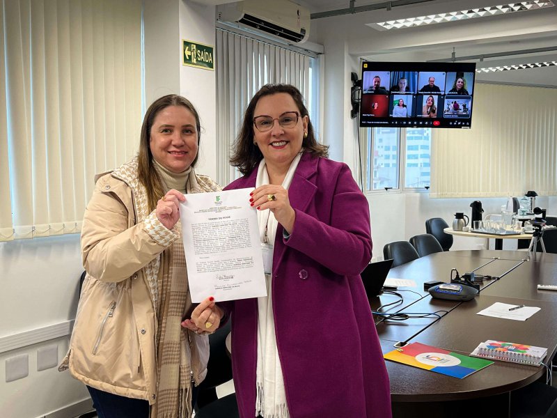 Janiele de Matos Corrêa, empossada como Técnica em Agropecuária, ao lado da reitora do IFFar, professora Nídia Heringer.
