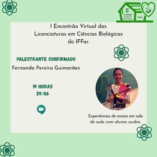 Segunda, 29/06, 19h - Experiências de ensino em sala de aula com alunos surdos. Palestrante: Fernanda Pereira Guimarães