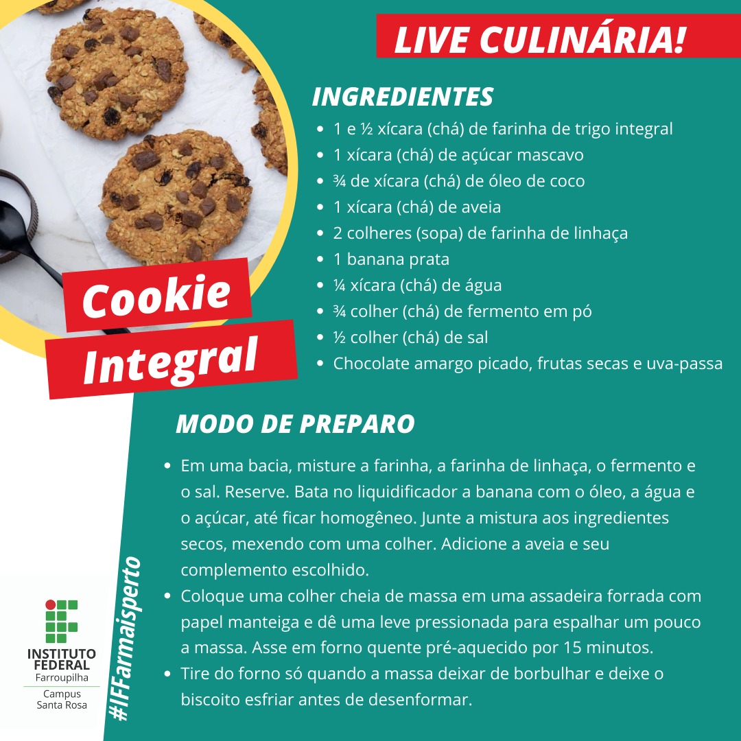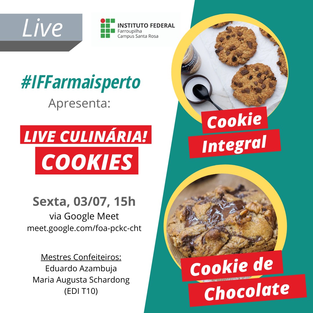 Sexta, 03/07, 15h - Live Culinária dos Alunos: Cookies! Com os Mestres Confeiteiros: Eduardo Azambuja e Maria Augusta Schardong. Turma EDI T10.