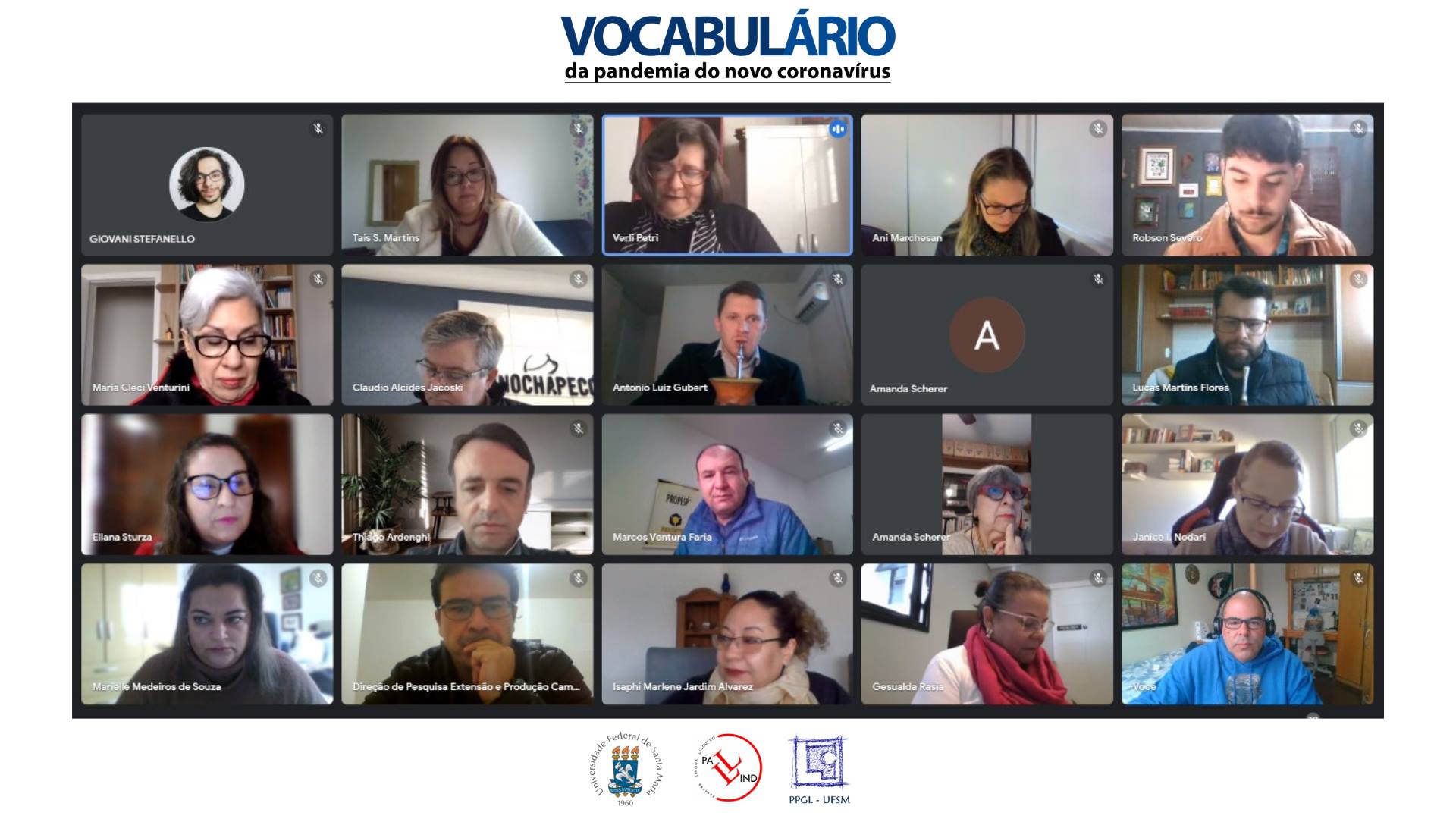 O “Vocabulário” é parte do projeto intitulado “A história das palavras e a dicionarização: ditos e não-ditos em tempos de pandemia no Brasil do século XXI” (CNPq-PQ2), coordenado pela Profa. Dra. Verli Petri (UFSM), contando com 10 instituições parceiras (IFFAR Jaguari/RS e IFSC Xanxerê/SC, PUC-MINAS/RS, UFFS/SC, UFPR/PR, UNICENTRO/PR, UNIPAMPA Bagé/RS, UNOCHAPECO/SC, URI Santiago/RS), e 26 pesquisadores (membros do Grupo PALLIND).