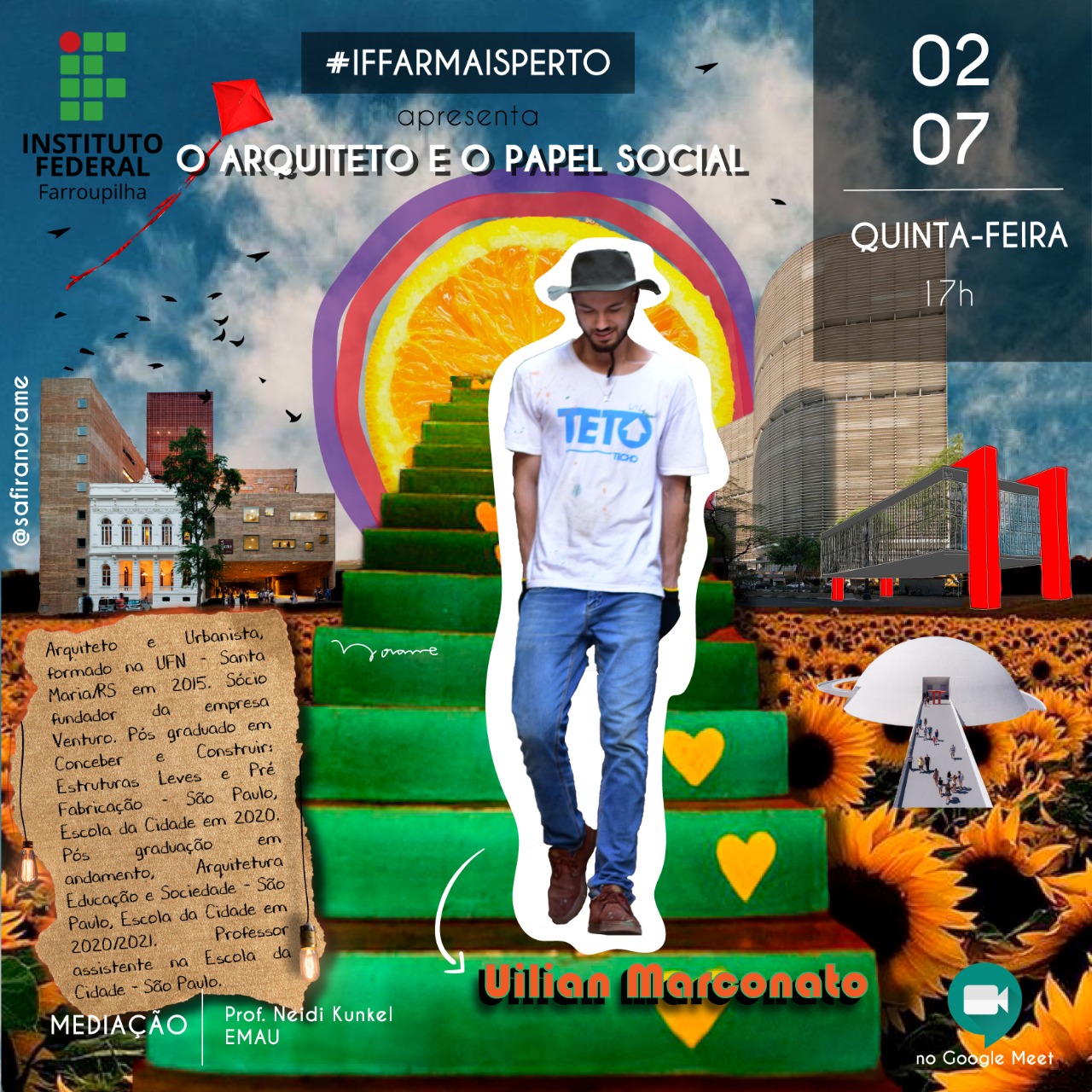 Quinta, 02/07 - 17h – O Arquiteto e o Papel Social com Uilian Marconato - Meet - https://meet.google.com/zrq-xfqt-mno