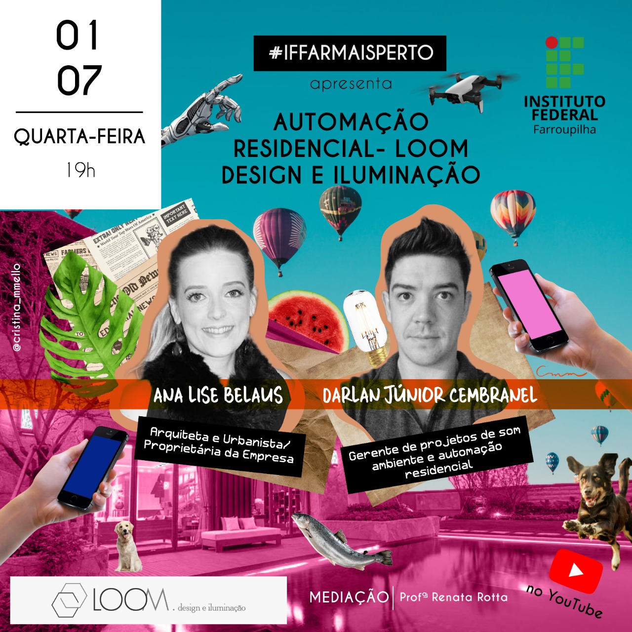 Quarta, 01/07 - 19h – Automação Residencial com Ana Lise Belaus e Darlan Júnior Cembranel, da Loom Design e Iluminação - Youtube IFFar Campus Santa Rosa