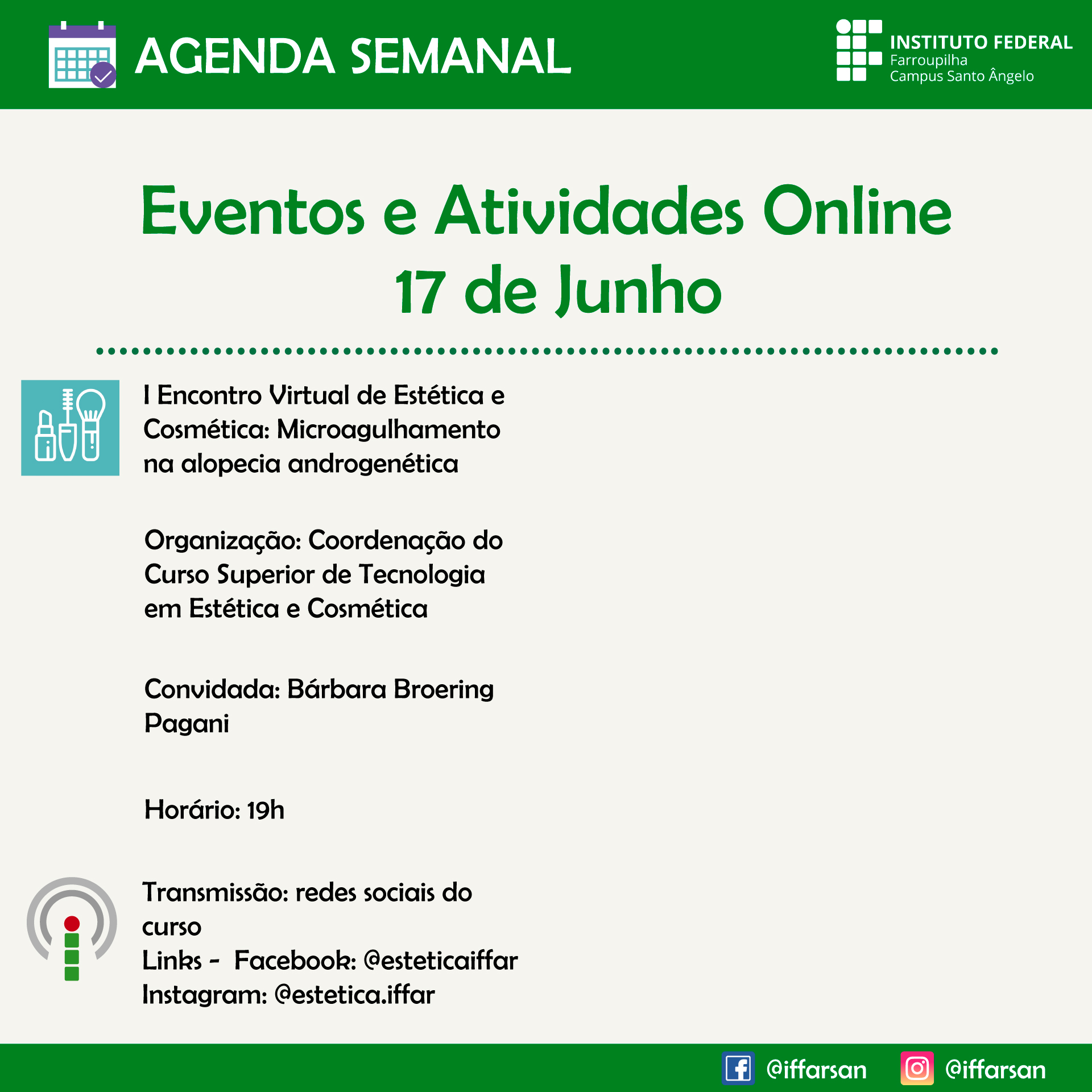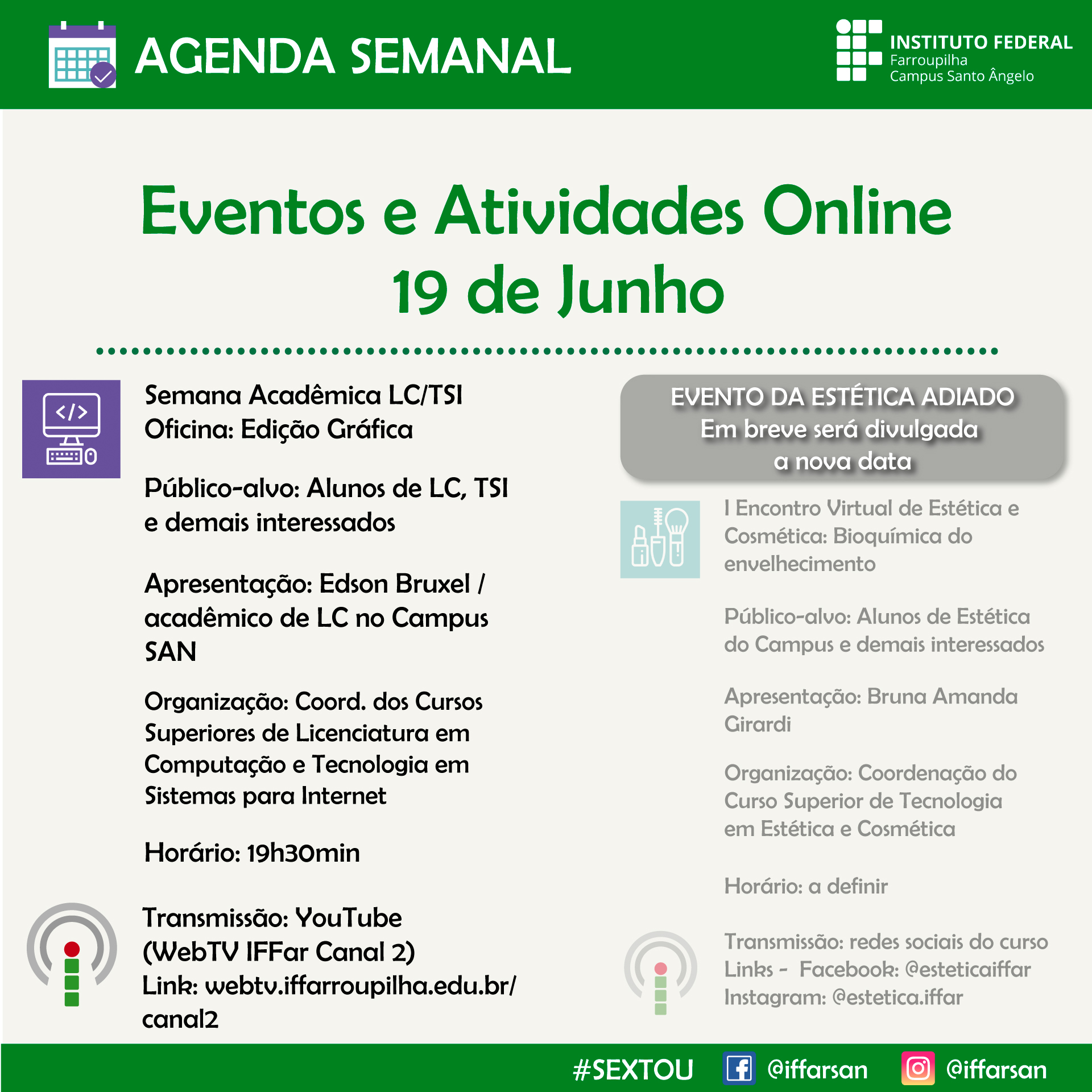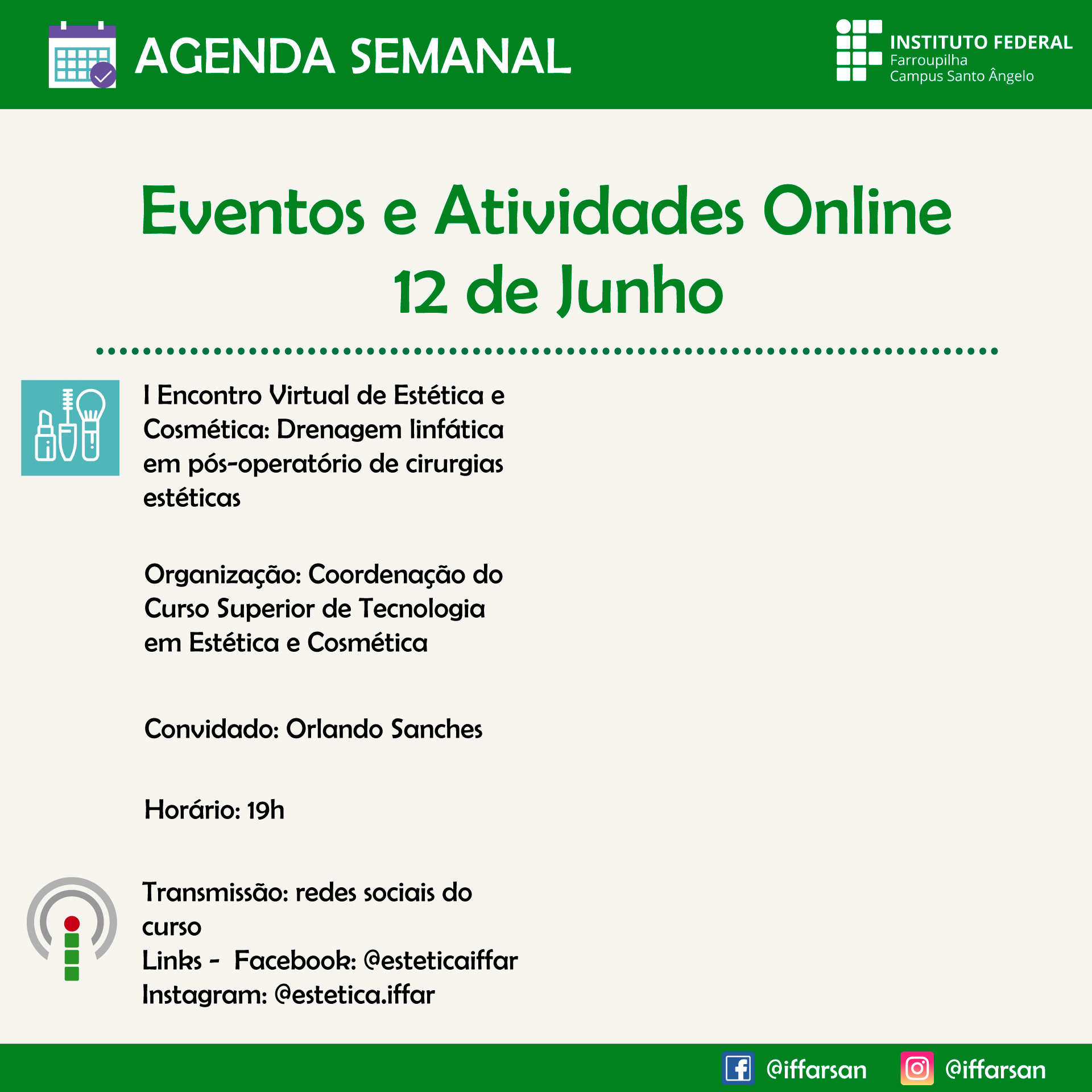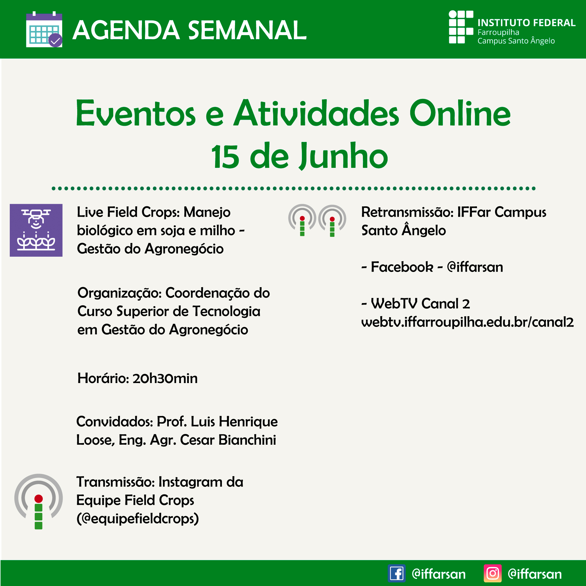 Fique por dentro da programação por meio do nosso site e redes sociais no Facebook e Instagram (@iffarsan).