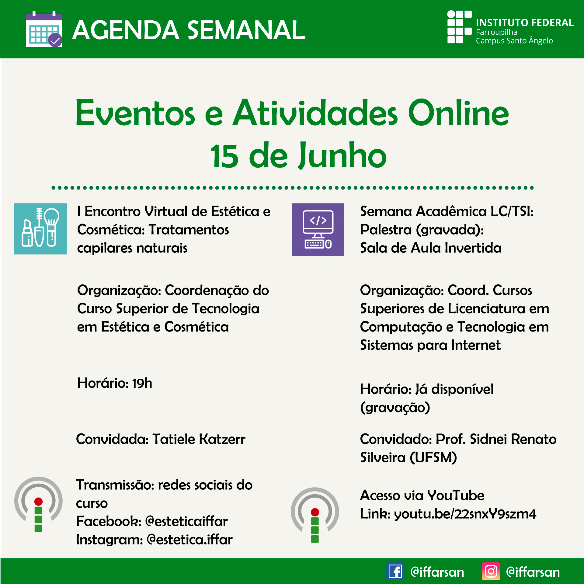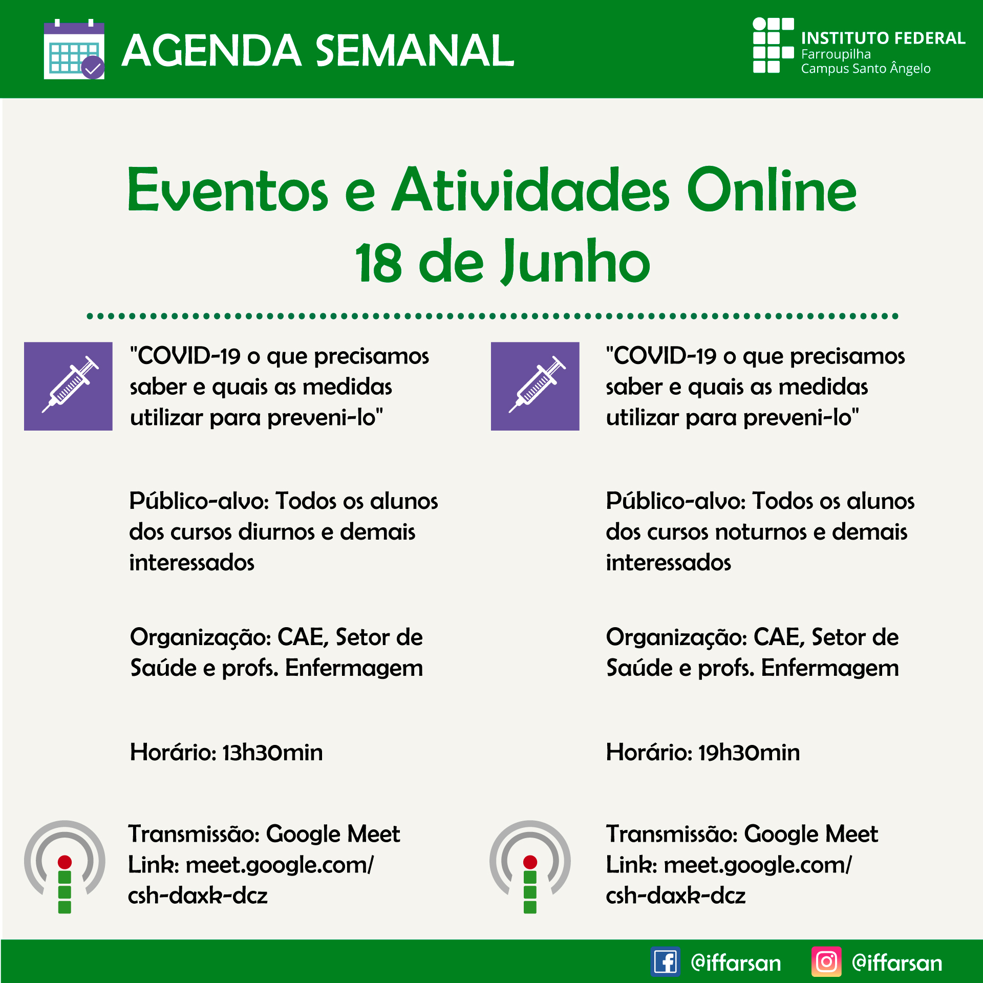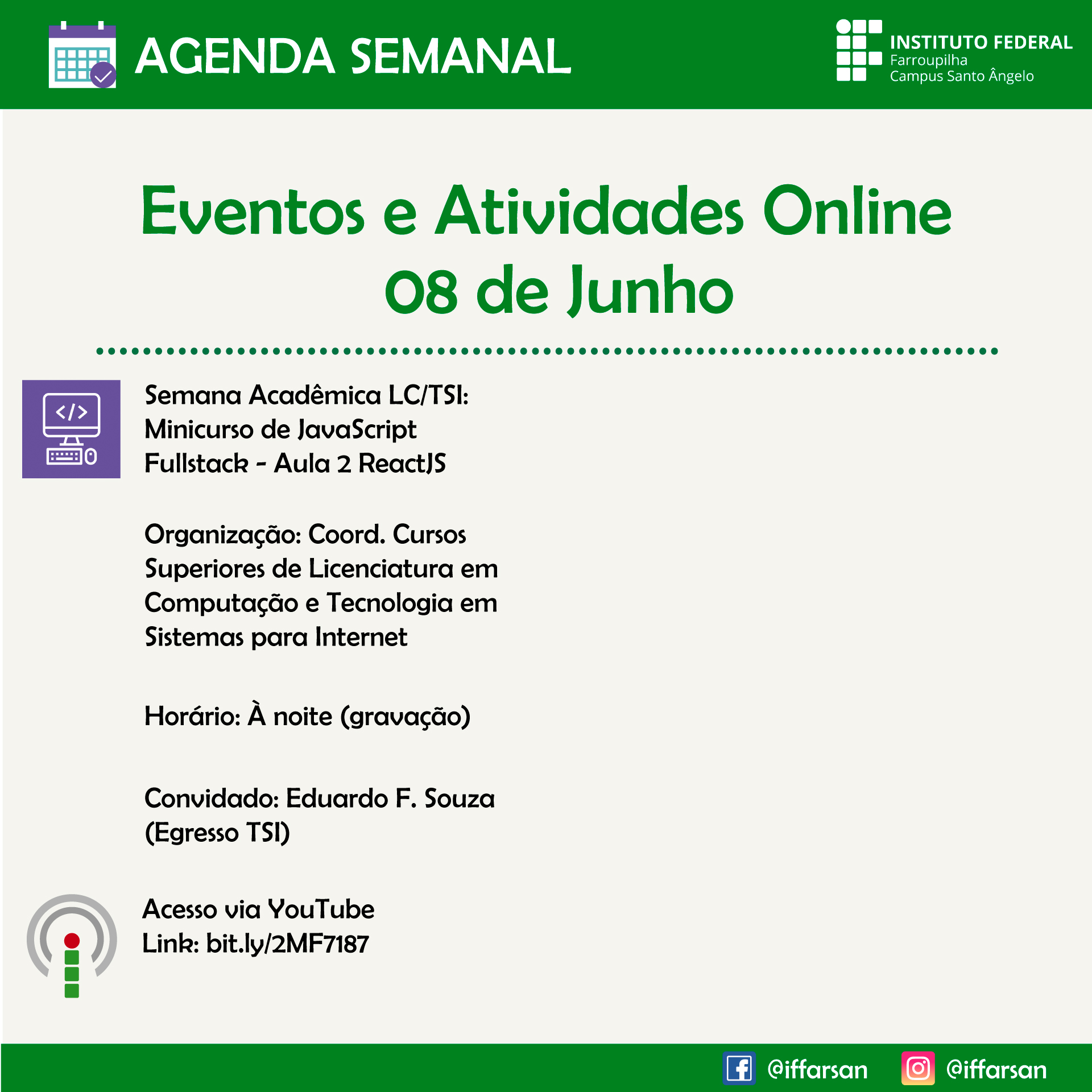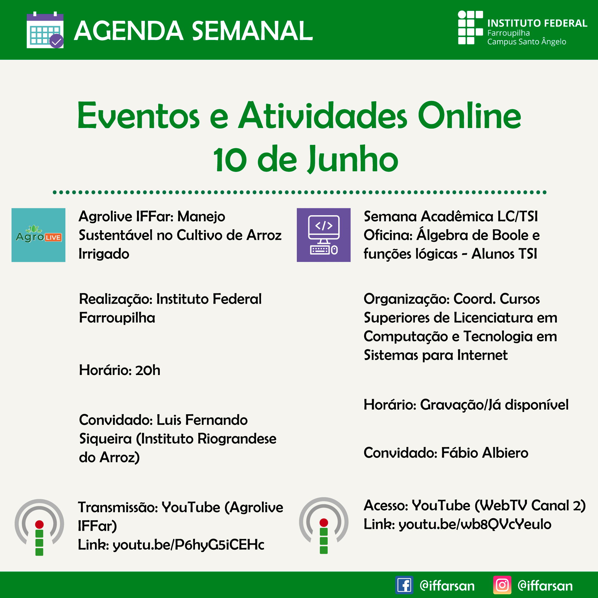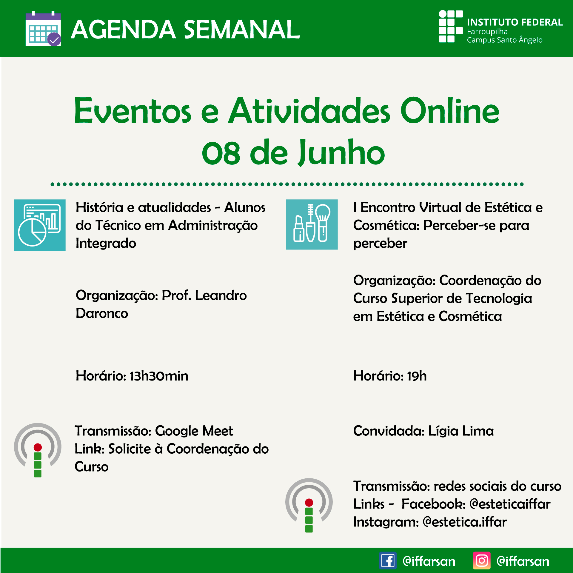 Fique por dentro da programação por meio do nosso site e redes sociais no Facebook e Instagram (@iffarsan).