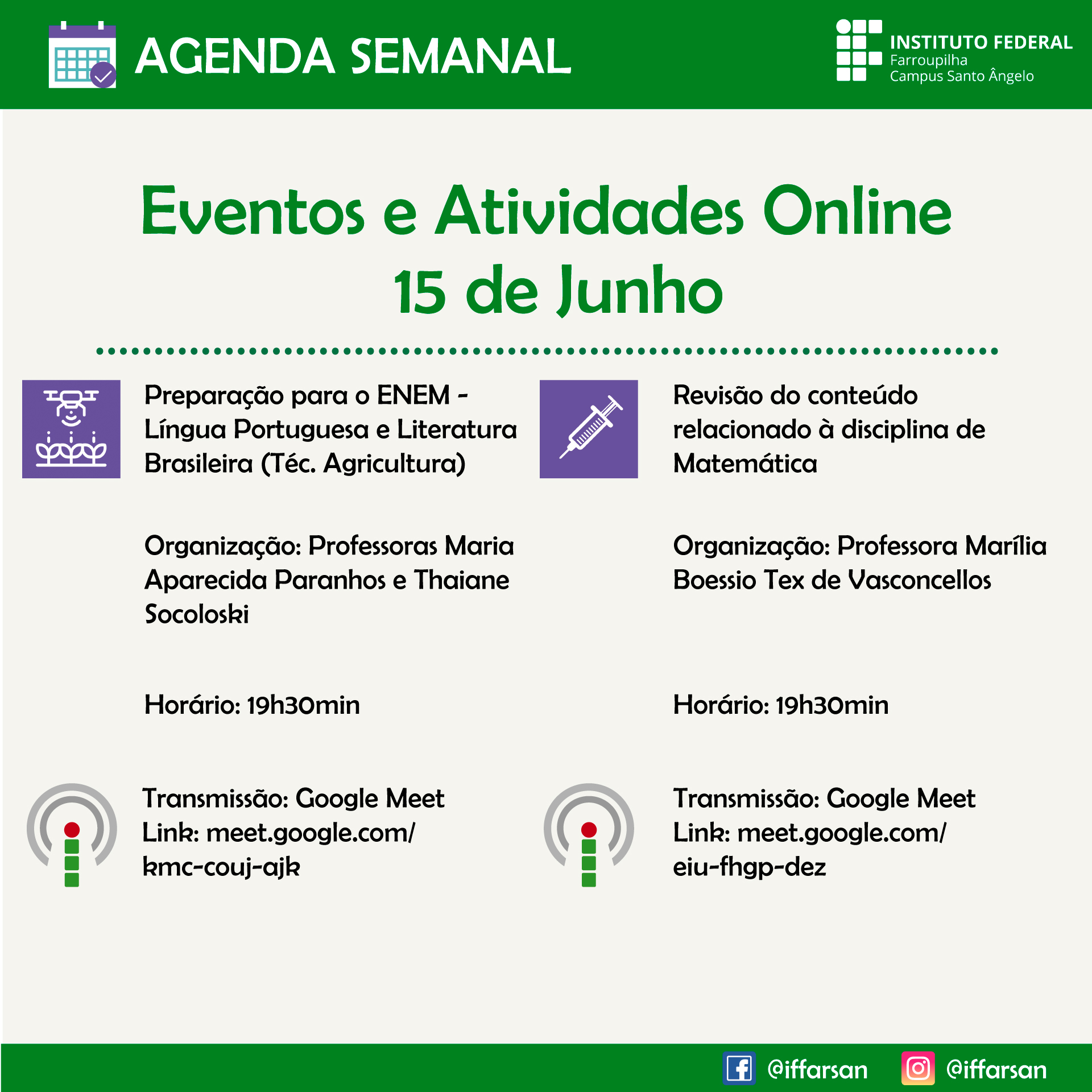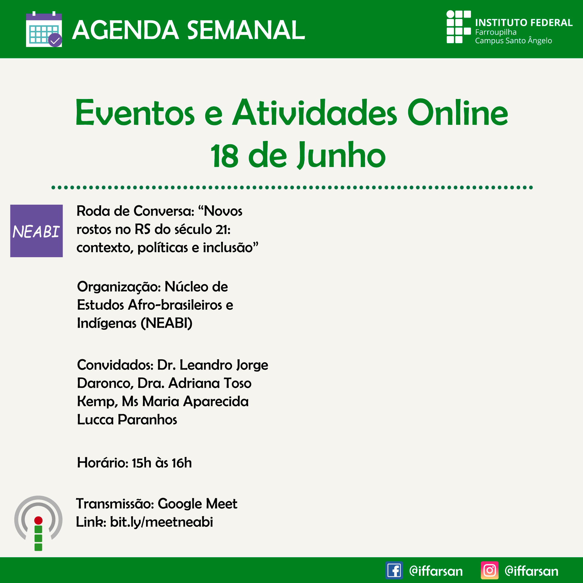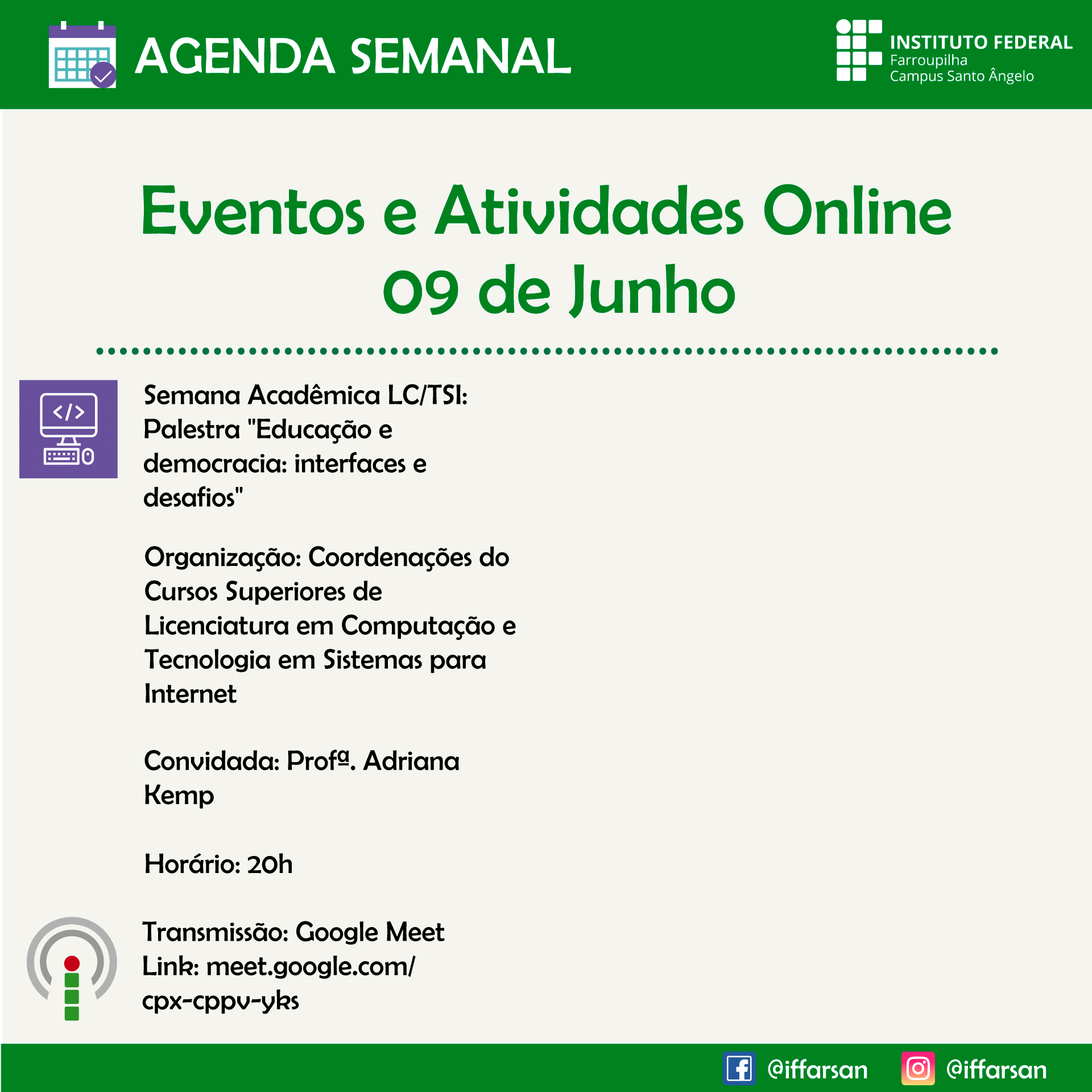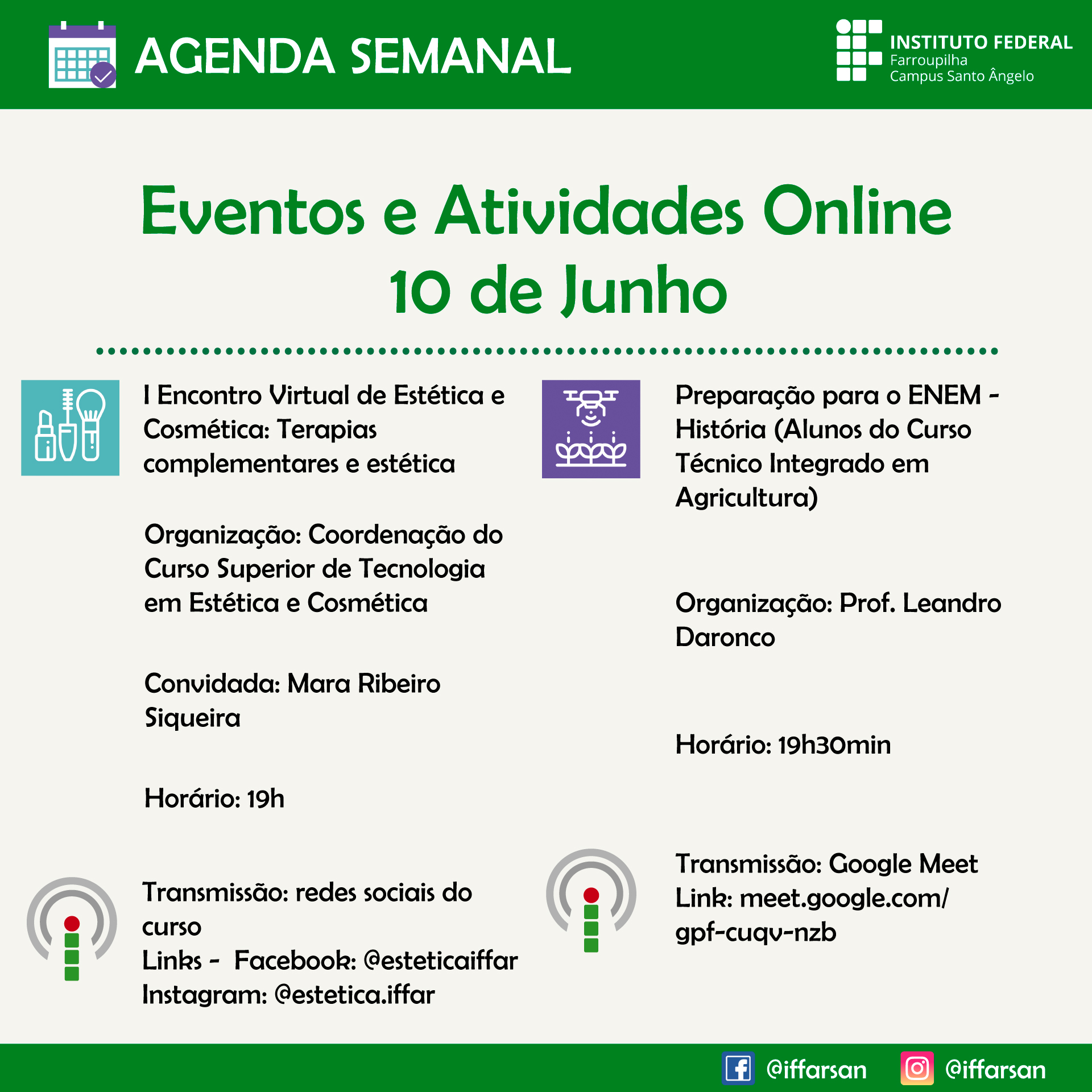 Fique por dentro da programação por meio do nosso site e redes sociais no Facebook e Instagram (@iffarsan).