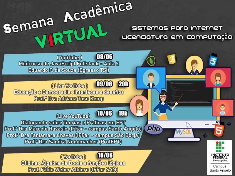 Conforme definição das coordenações de curso, algumas dessas atividades poderão contabilizar como Atividades Complementares. Você pode conferir no arquivo abaixo a programação completa para os meses de maio e junho de 2020. Acompanhe a divulgação das nossas ações pelo site e pelas redes sociais, pois as mesmas podem sofrer alterações. Para maiores informações, contate as coordenações de curso.