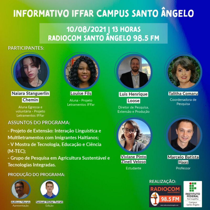 Nesta terça-feira (10/08) às 13h, acompanhe AO VIVO o Informativo do IFFar SAN no seu rádio (98.5 FM), celular ou computador, através da RADIOCOM Santo Ângelo.