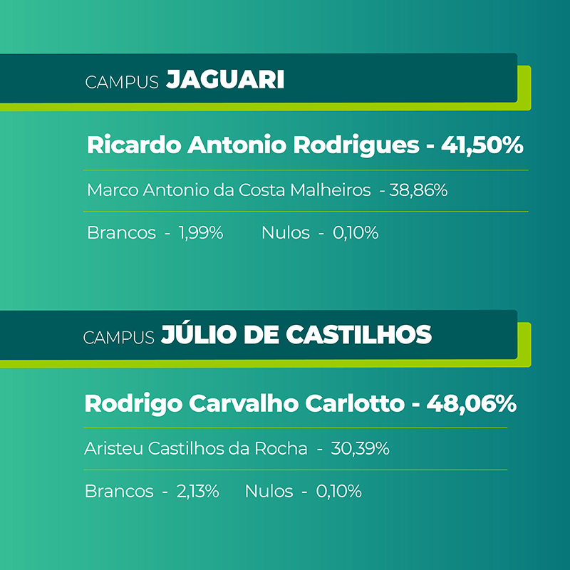 No campus Jaguari, o Diretor-Geral eleito foi o professor Ricardo Antonio Rodrigues.