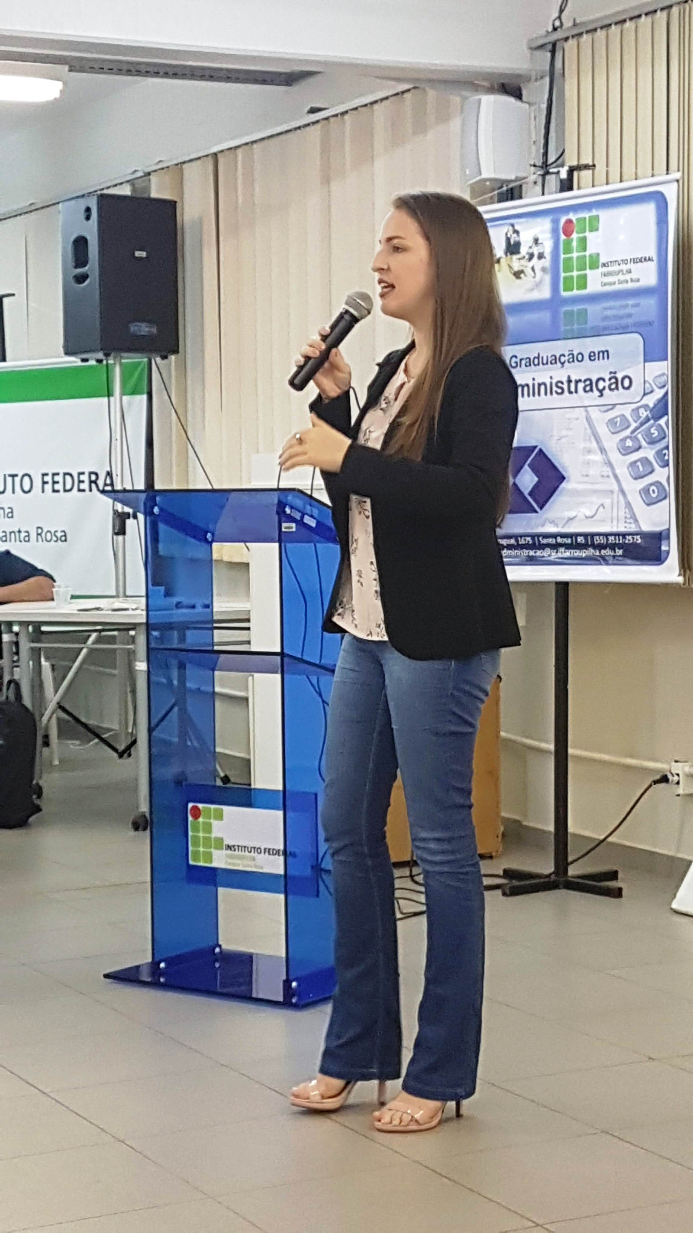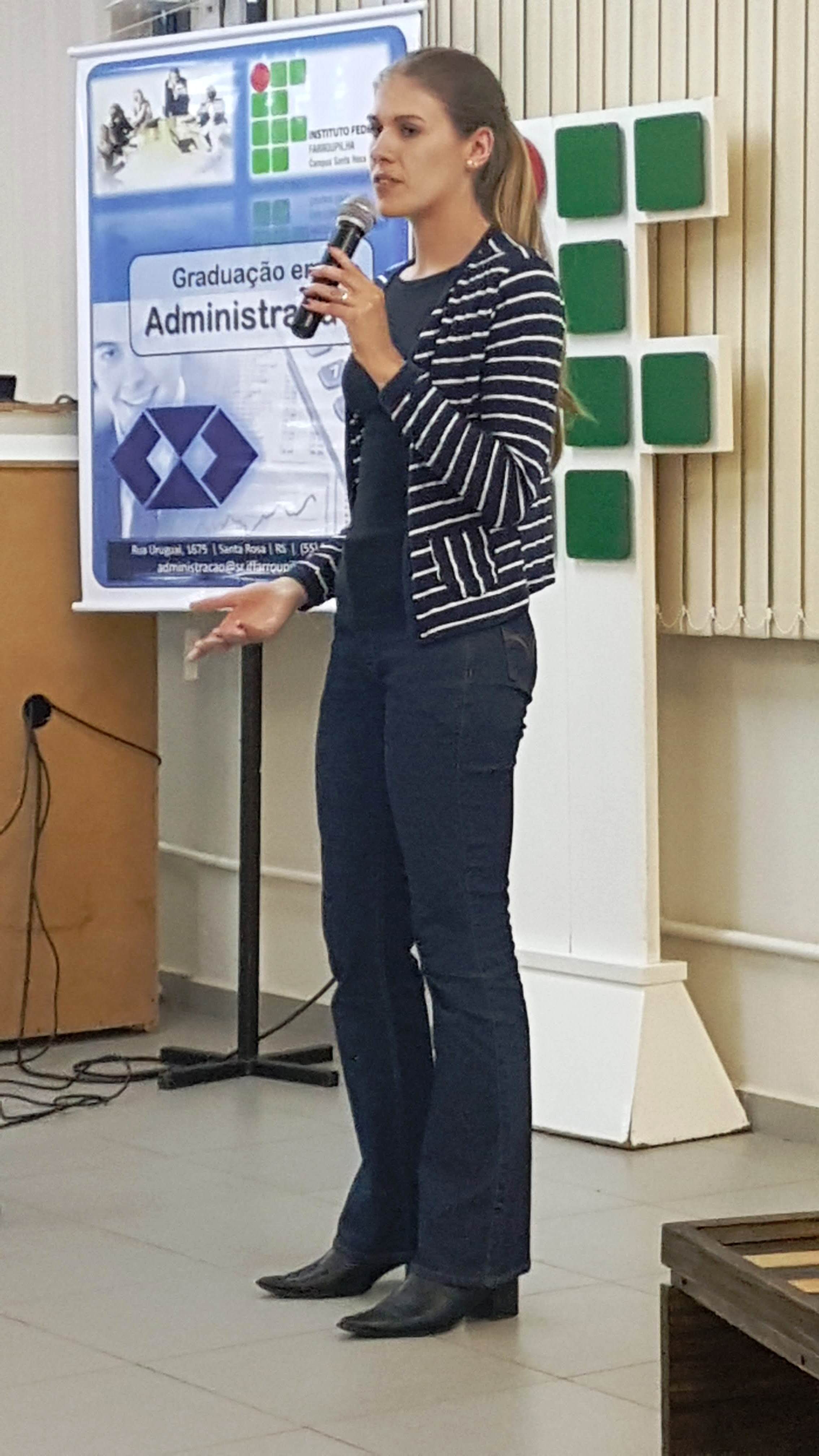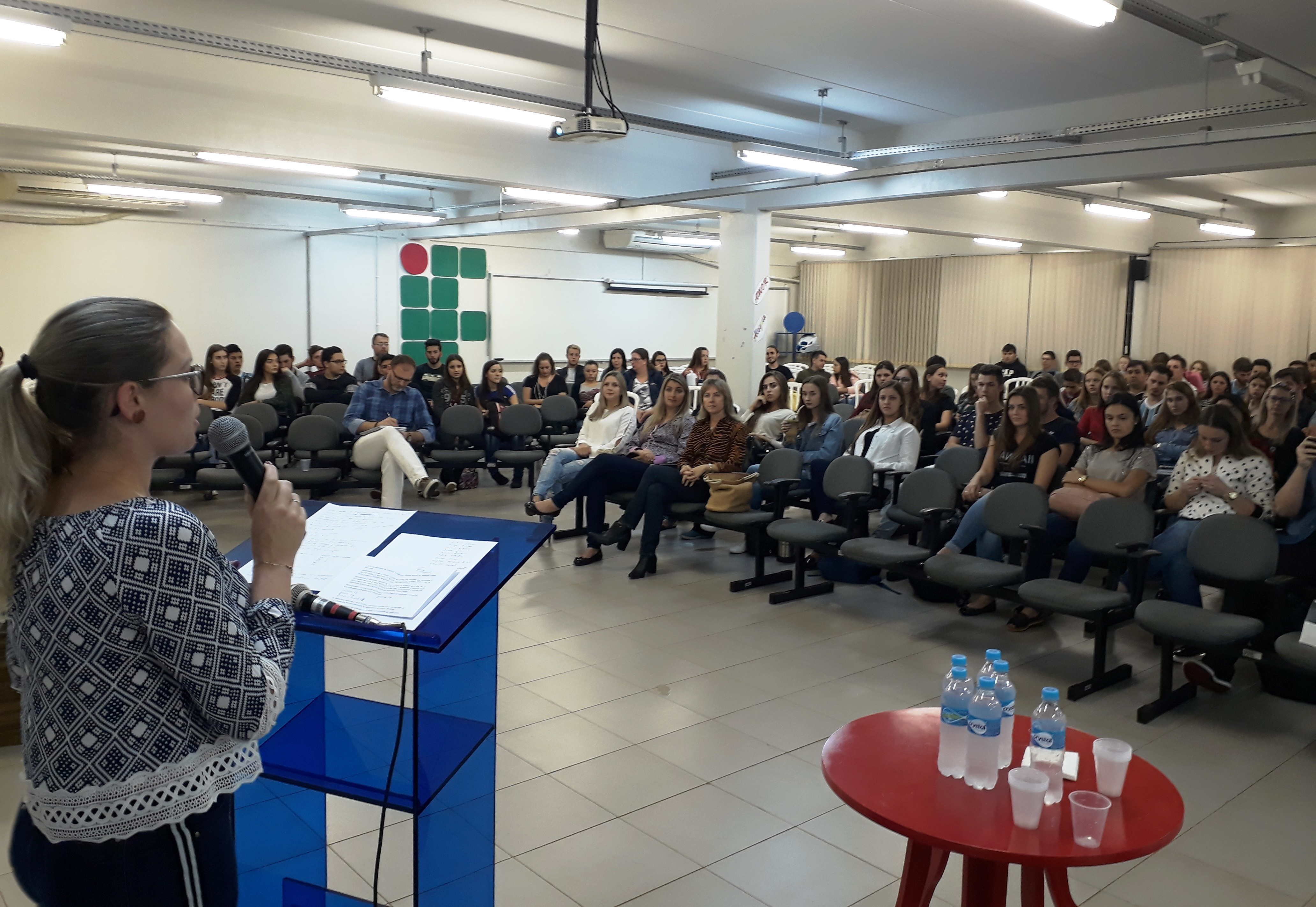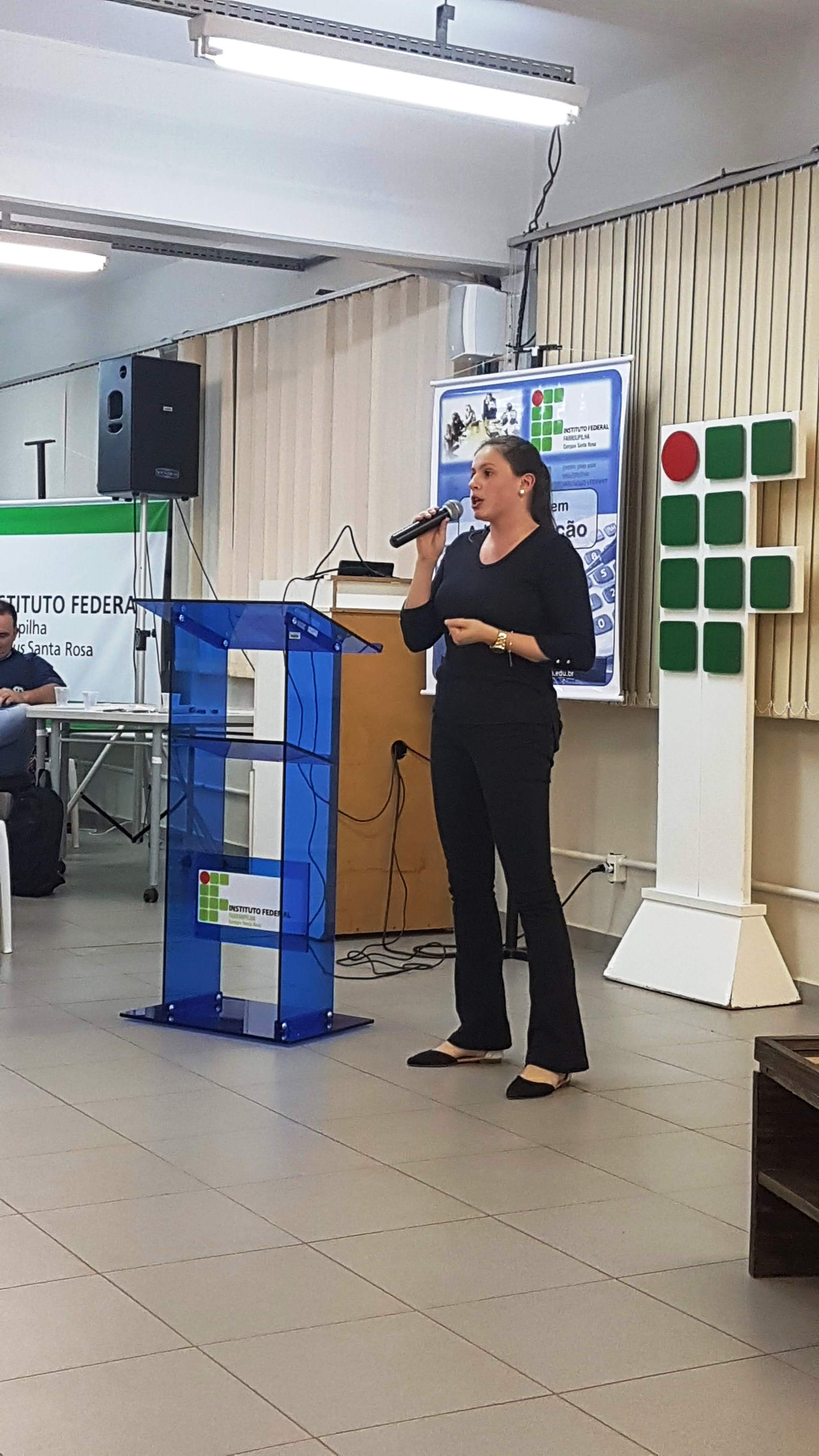 Foi realizada na quinta-feira à noite, dia 07 de março, no auditório do IFFar Campus Santa Rosa, a aula inaugural do Curso Superior Tecnologia em Alimentos. A aula inaugural contou com a presença da diretora de Ensino, Analice Marchezan, da coordenadora do curso, professora Paula Abentroth Klaic, e docentes do curso, que deram as boas-vindas aos calouros da primeira turma. Logo após, a diretora de Inovação e Prospecção da empresa Certifee Consultoria, Valesca Bicca Vieira, palestrou sobre o tema “Segurança em Alimentos”. A empresária Valesca, que é graduada em Química Industrial de Alimentos, relatou aos alunos um pouco de sua trajetória profissional. Os alunos do curso Técnico em Alimentos também participaram do evento.