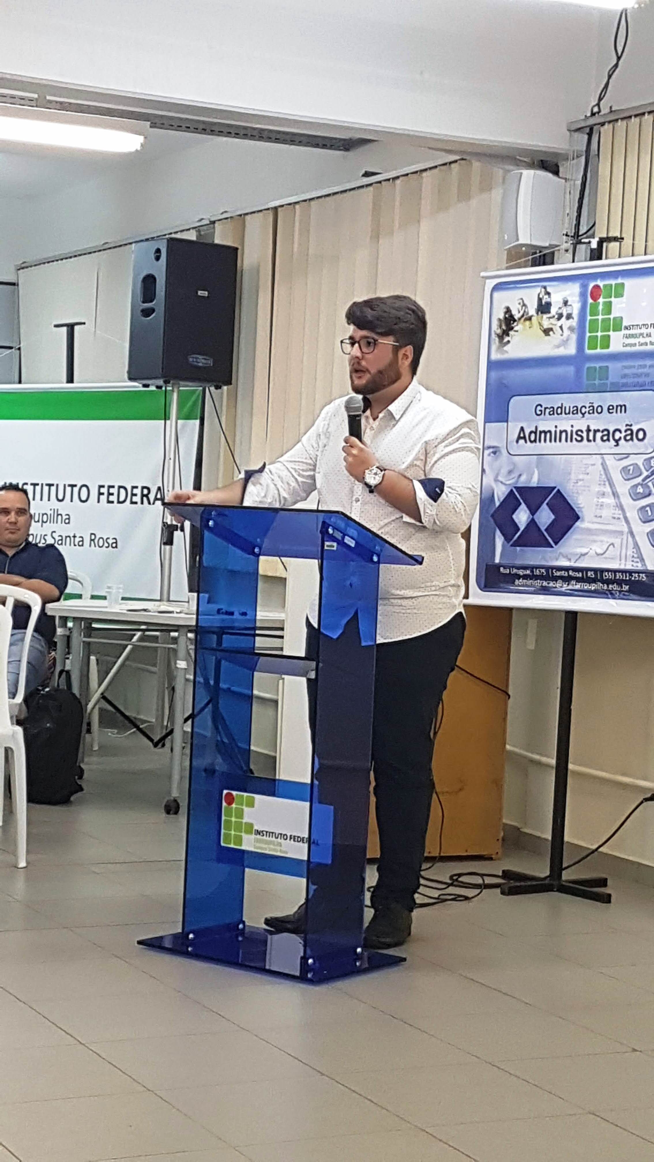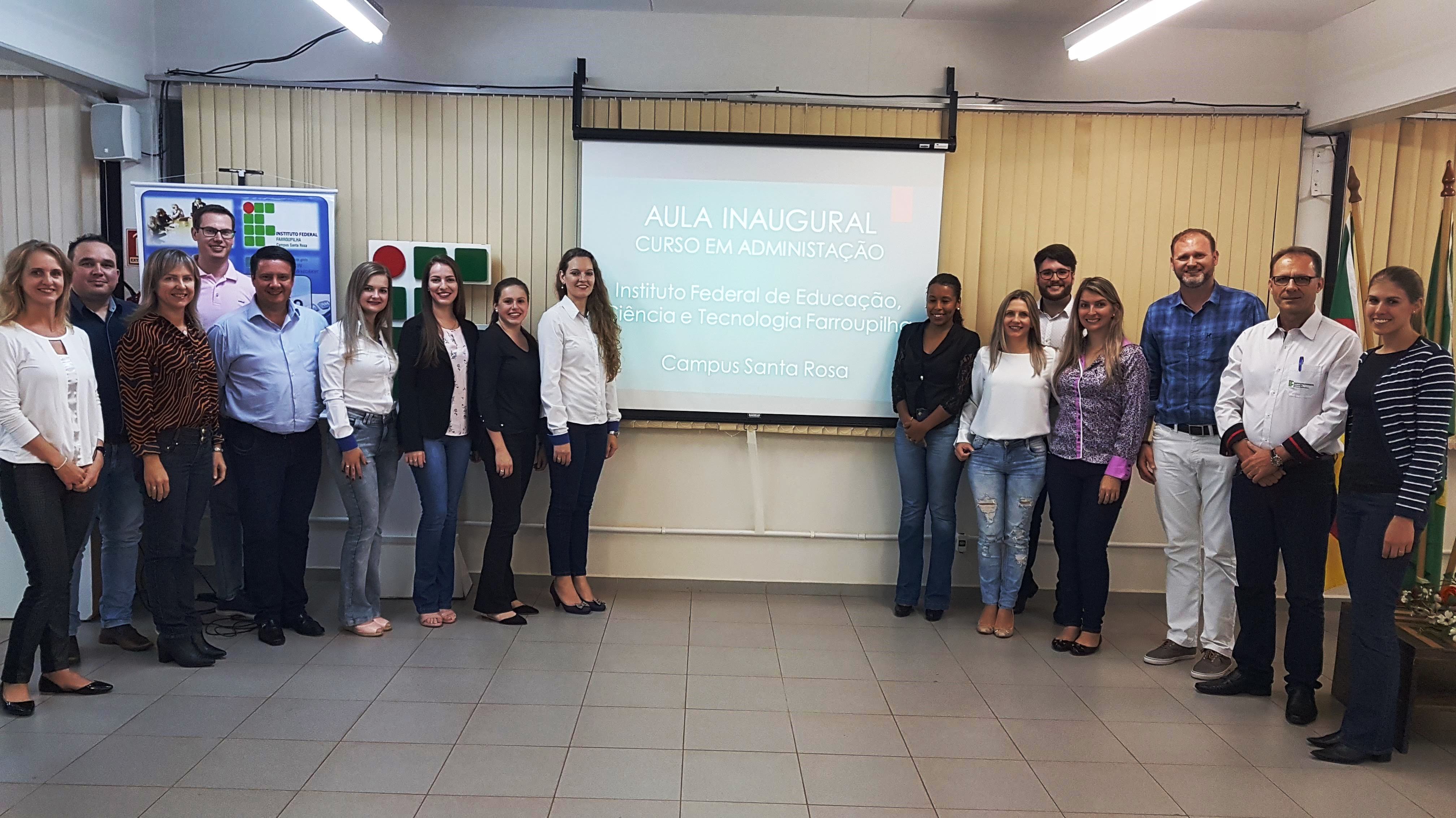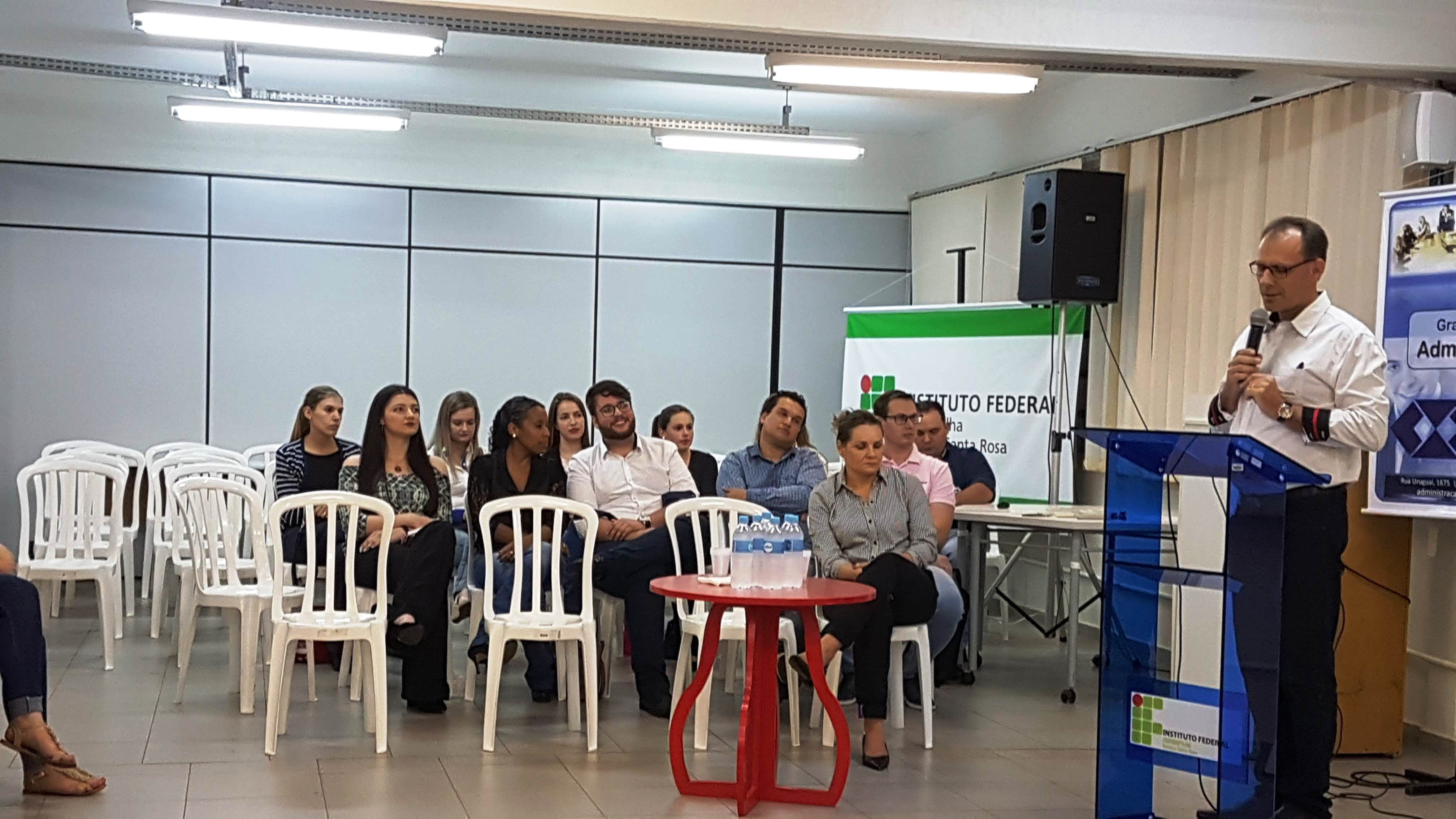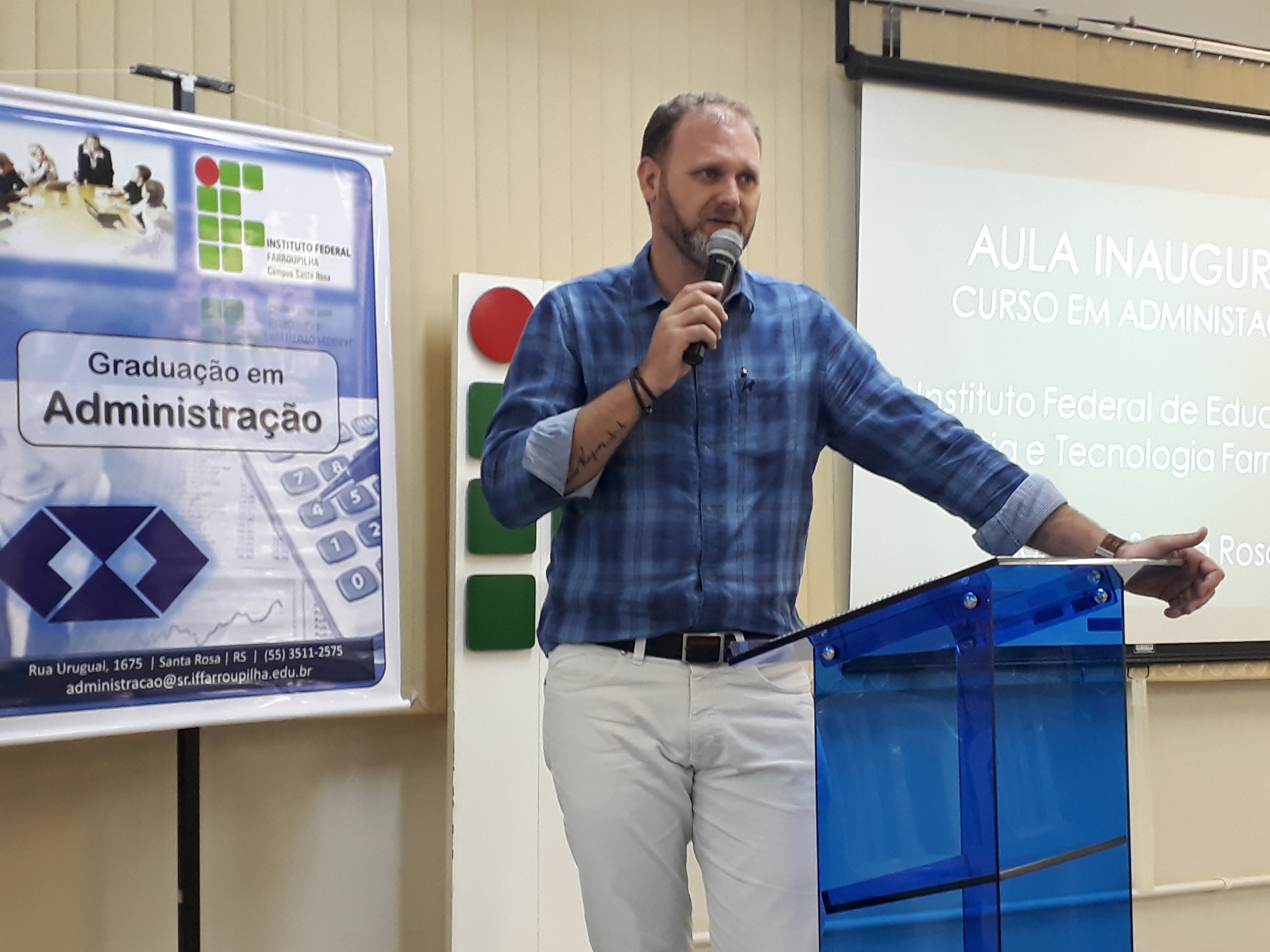 A coordenação do curso de Administração do IFFar - Campus Santa Rosa, juntamente com os coordenadores dos cursos Técnico em Vendas Proeja e Pós-Graduação em Gestão e Negócios, promoveu, na noite do dia 20 de março, a aula inaugural do primeiro semestre de 2019, com evento realizado no auditório. O Prof. Dr. Claudio Hofler, coordenador do curso de Administração, fez a abertura do evento, dando as boas-vindas aos novos acadêmicos.