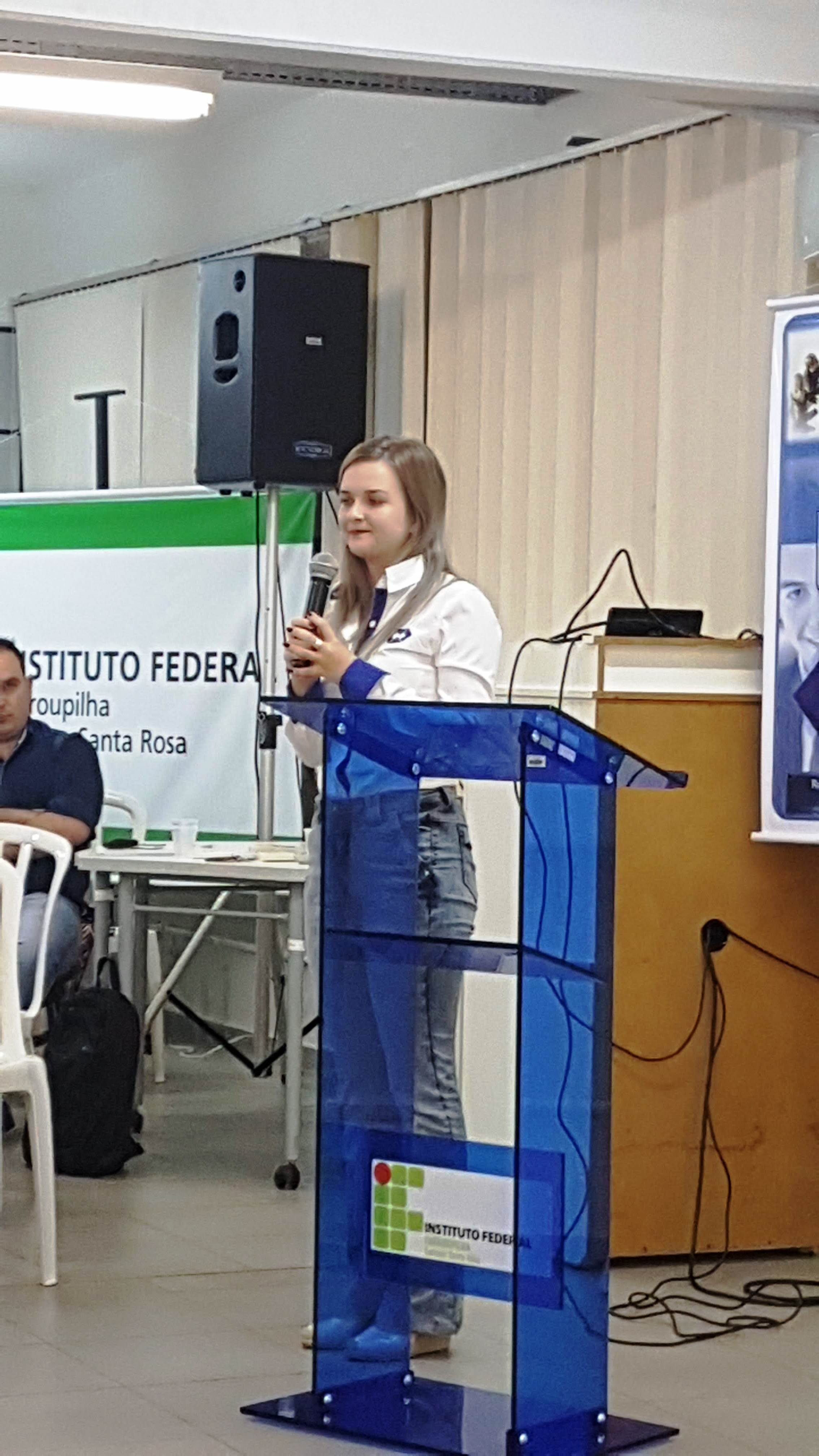 A diretora-geral, Renata Rotta, e o professor Rodrigo Magnus Soder, coordenador do Núcleo de Inovação Tecnológica do IFFar – Campus Santa Rosa (NIT), participaram do evento.