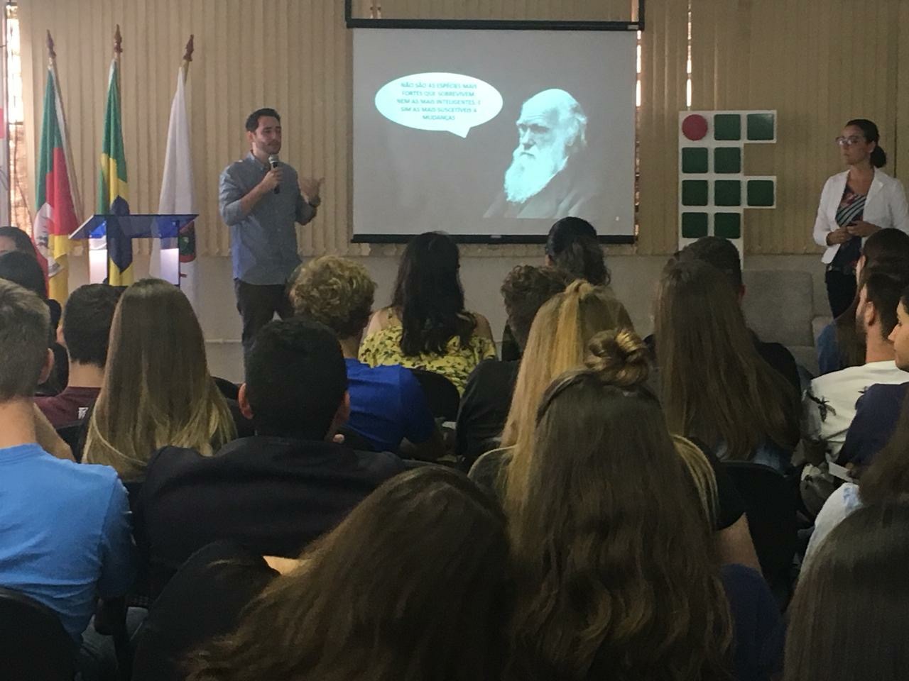 Os alunos presenciaram os depoimentos dos egressos: Aline Dias, Cheila Szast, Jovani Patias, Thiago Bieger, Júnia Bordin, Sophia Artus Dias, Sandro Silva, Fábio Schaefer, Fábio Scherer, Sendi Lauer, Raqueli Kreutz e Carla Eberhardt Cerutti.