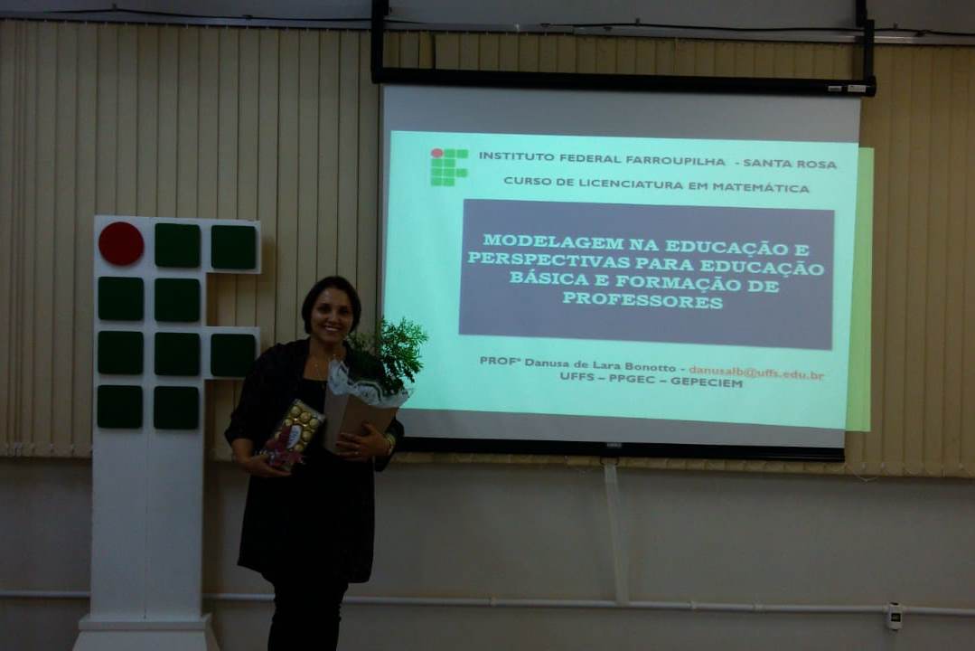 Na quinta-feira, dia 21 de março, o curso Licenciatura em Matemática do IFFar Campus Santa Rosa teve a oportunidade de receber a professora Doutora Danusa de Lara Bonotto, da Universidade Federal Fronteira Sul Campus Cerro Largo (UFFS), para a aula inaugural. Na ocasião, ela compartilhou com os licenciandos e professores a sua experiência com Modelagem Matemática no ensino. Segundo a coordenadora do curso, professora Lucilaine Goin Abitante, a palestra proporcionou uma noite de muito aprendizado e reflexões sobre a profissão docente.