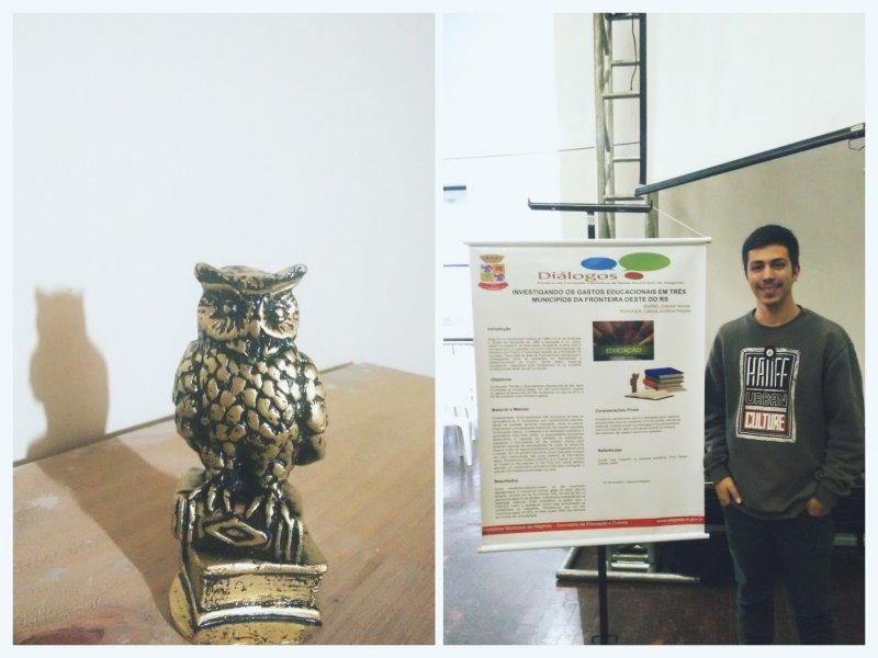 O trabalho "Analisando os Gastos Educacionais em três municípios da fronteira oeste do RS", de autoria do acadêmico do curso de Ciências Biológicas do IF Farroupilha Campus Alegrete, Ederson Nunes Bueno, bolsista Capes, com orientação da Prof.ª Dr.ª Calinca Jordânia Pergher, destacou-se com o mérito científico na modalidade pôster.